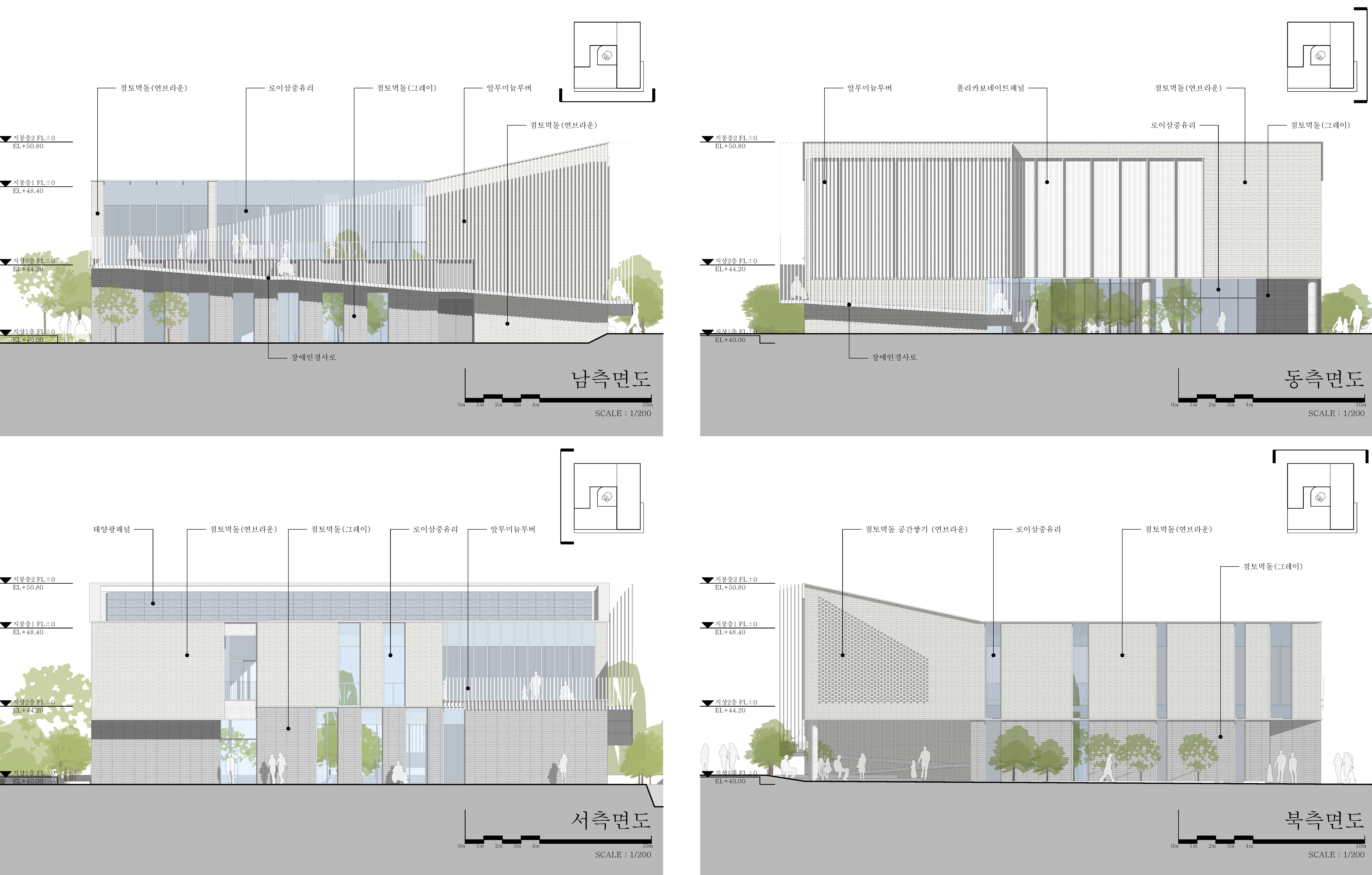 외부마감: 점토벽돌, 폴리카보네이트, 로이삼중유리, 알루미늄루버