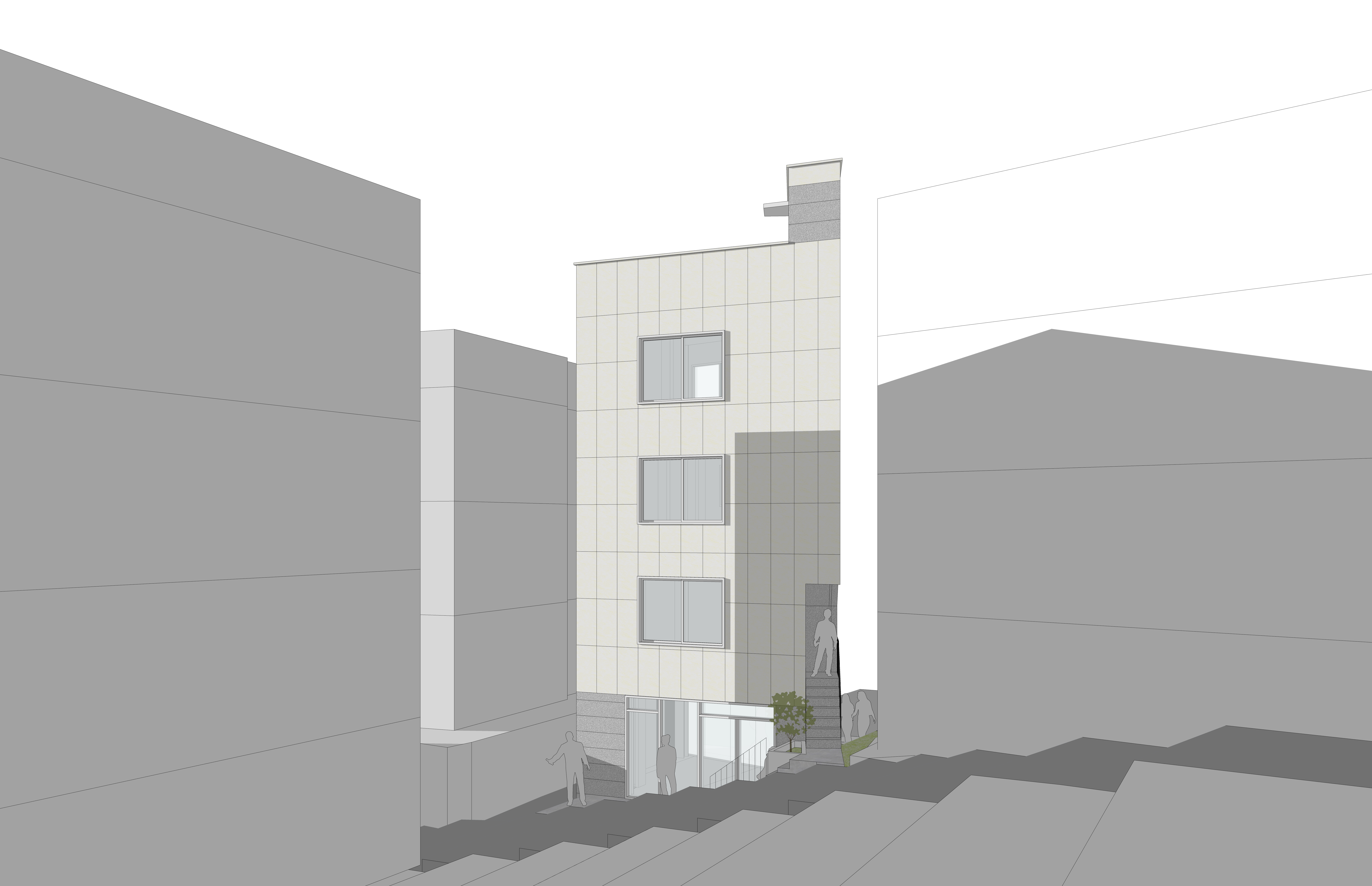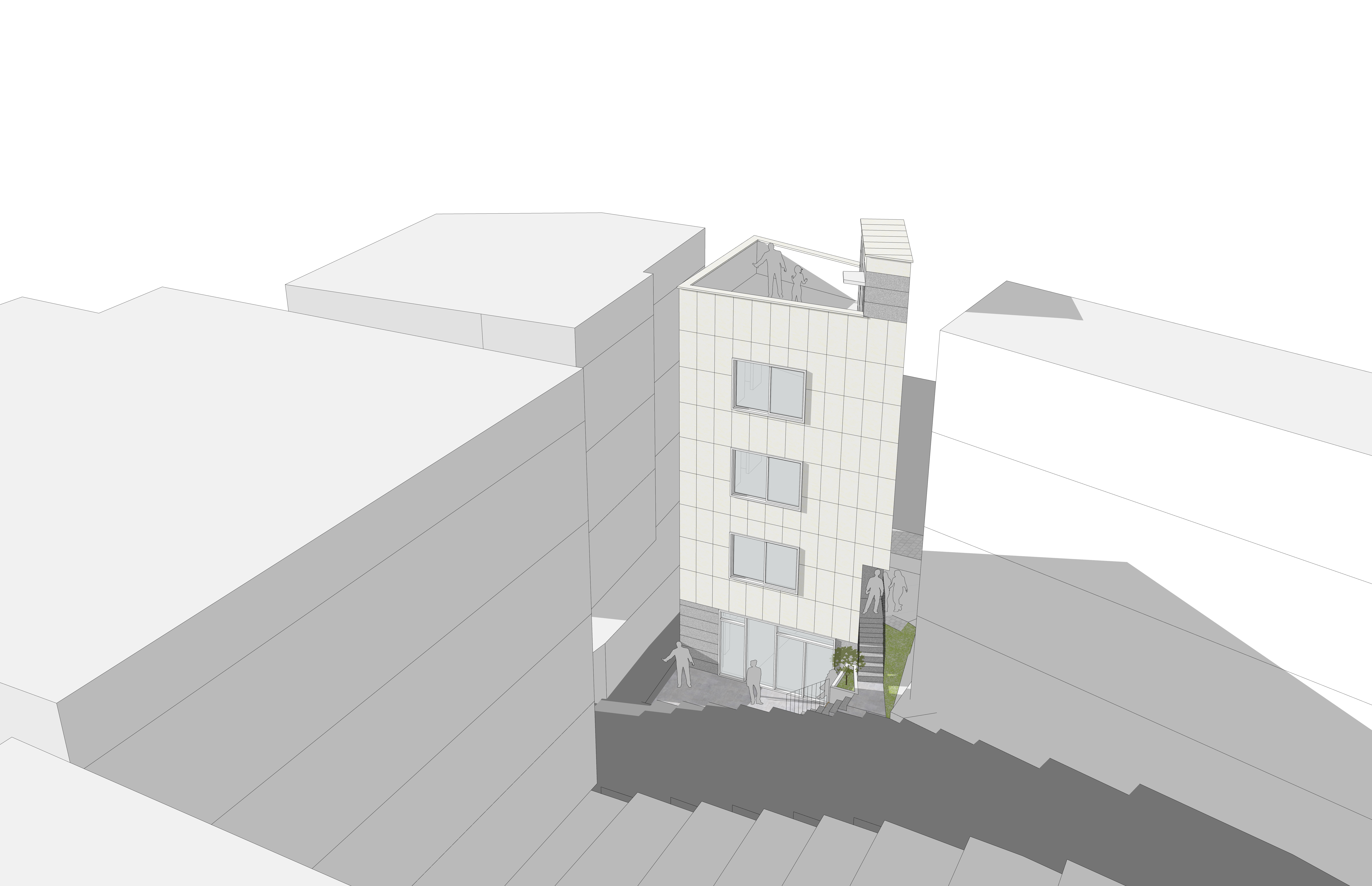 대지 내에 최대로 확보할 수 있는 건축면적이 8평 안팎이다 보니, 근생 건물의 가장 중요한 1층의 매장 면적을 최대로 확보하는 것이 관건이었다.