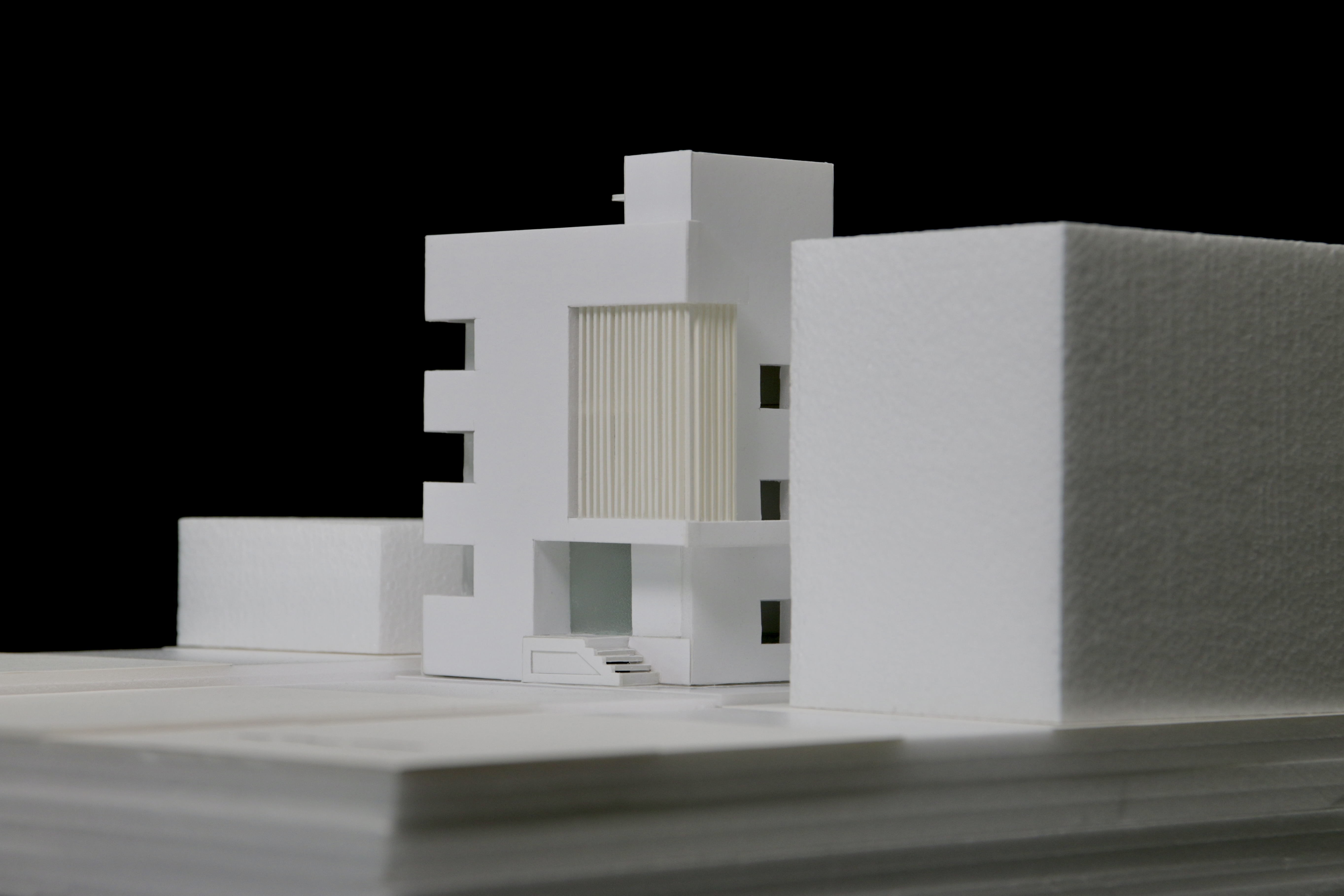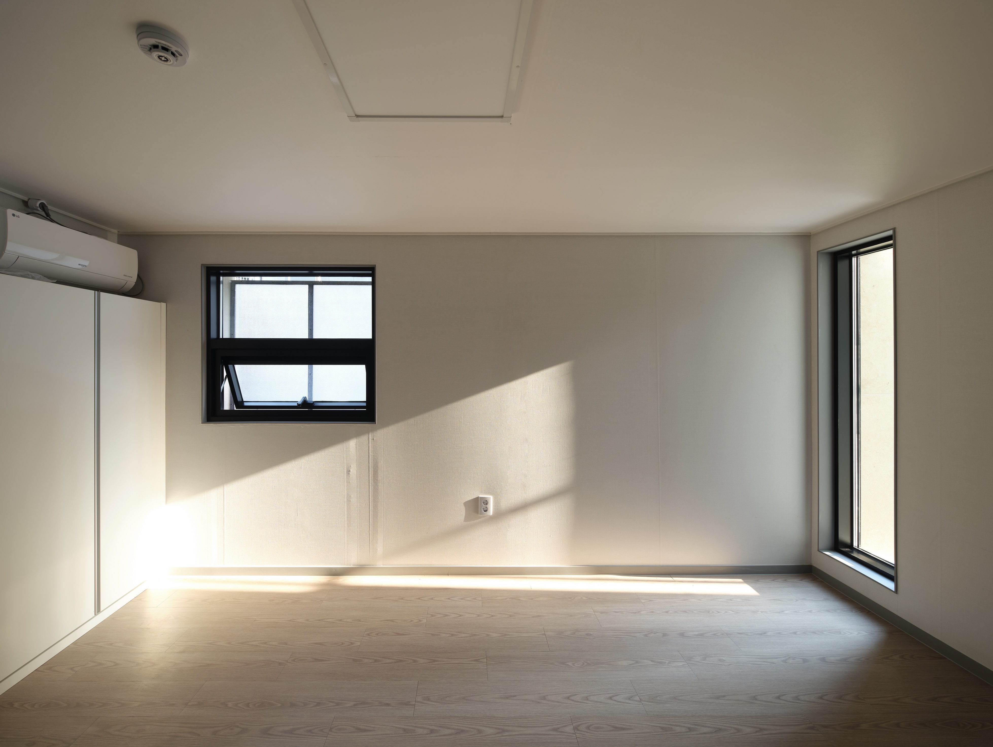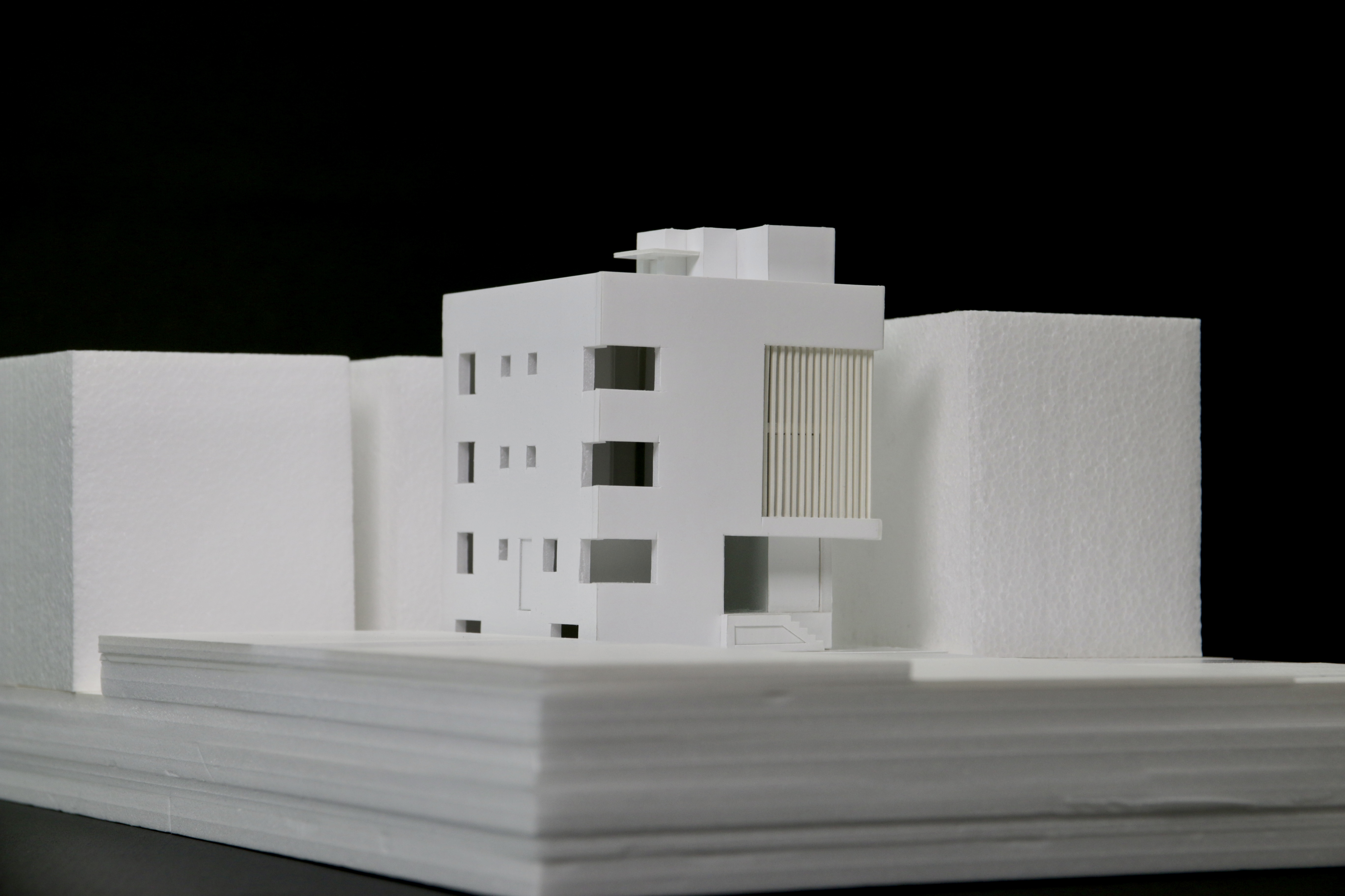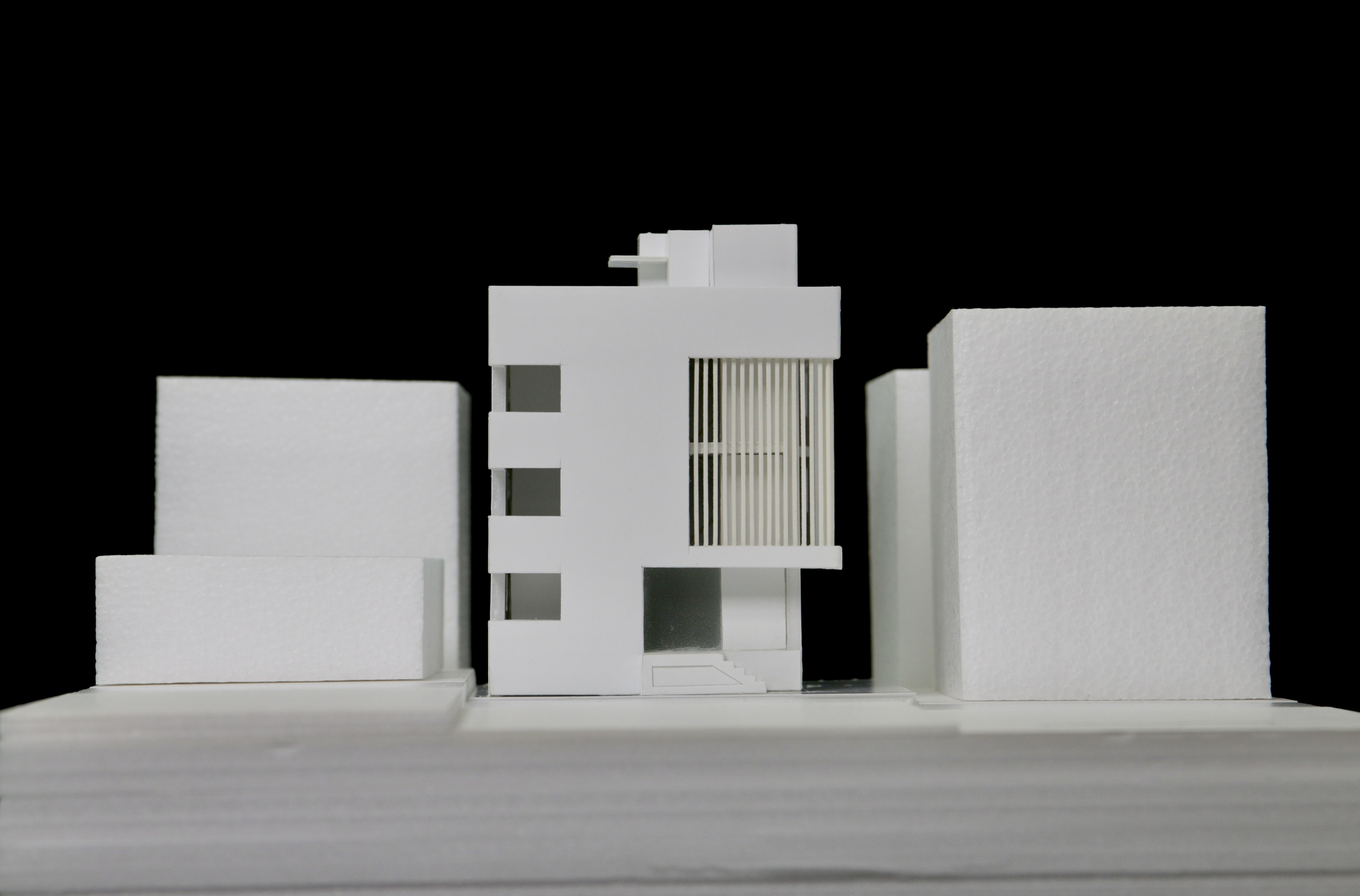전면부에 목재루버를 입면요소로 활용한 발코니를 구성했다. 휴게 및 실외기 설치 등이 가능한 중성적인 외부공간으로 작은 원룸건물의 협소한 공용부를 확장시킨다.