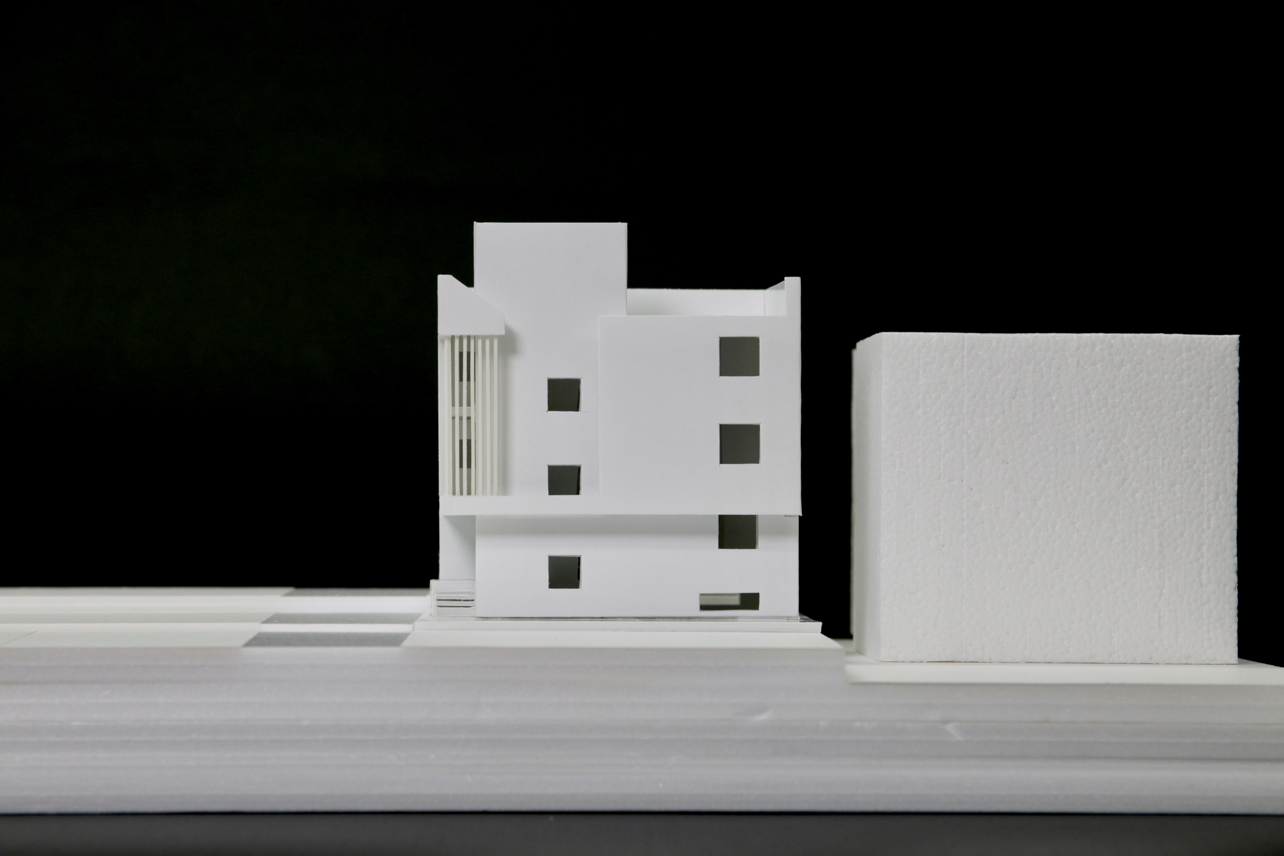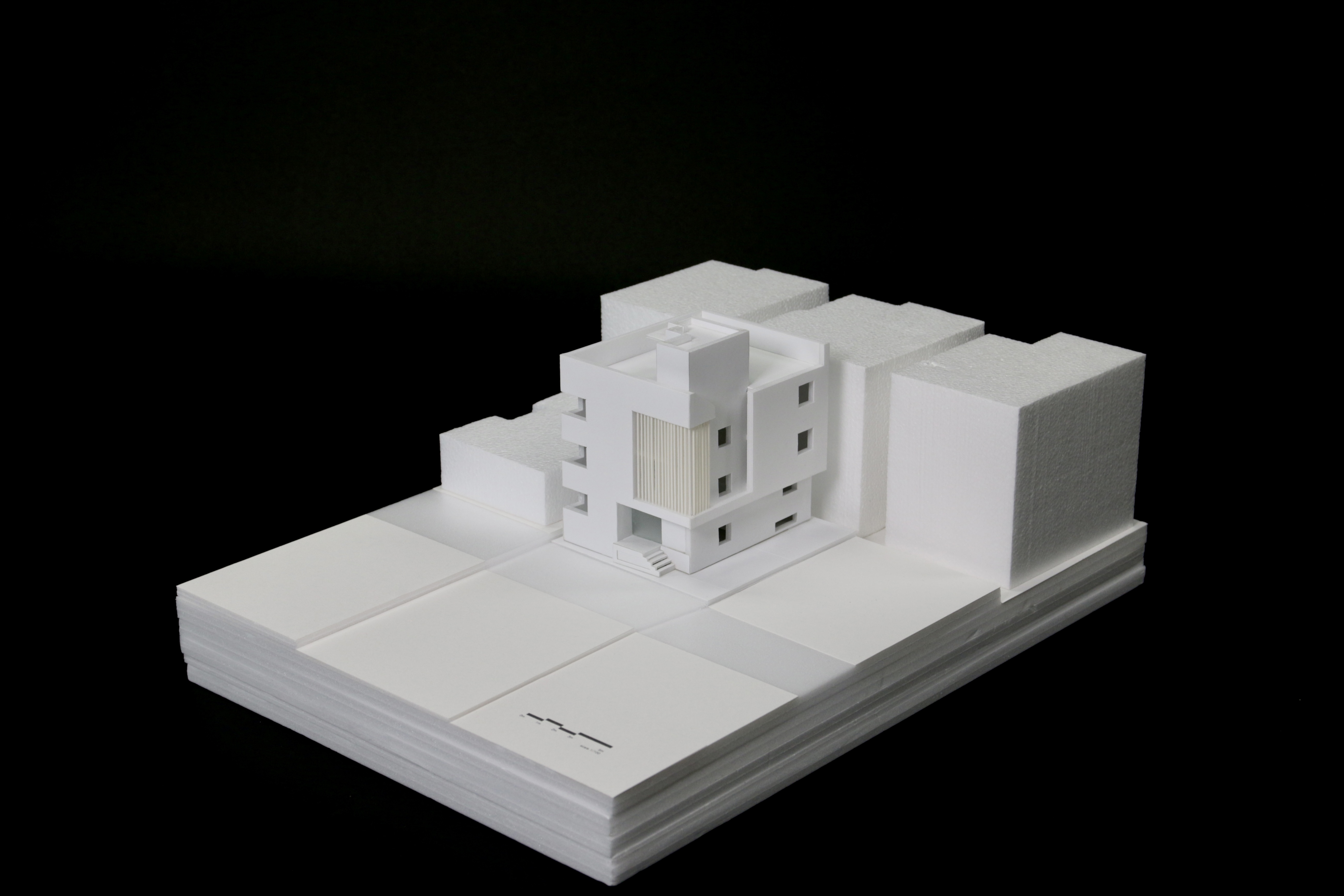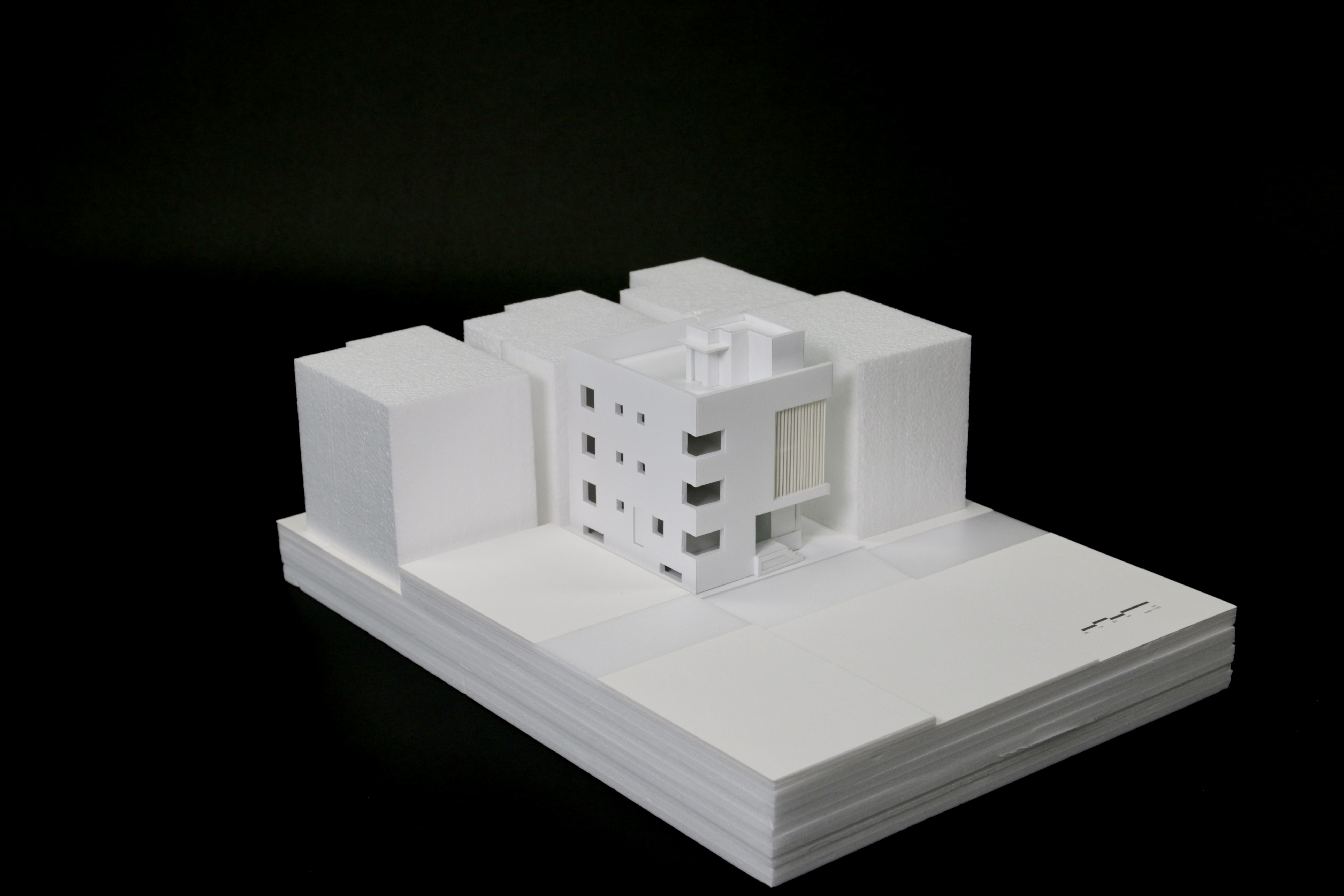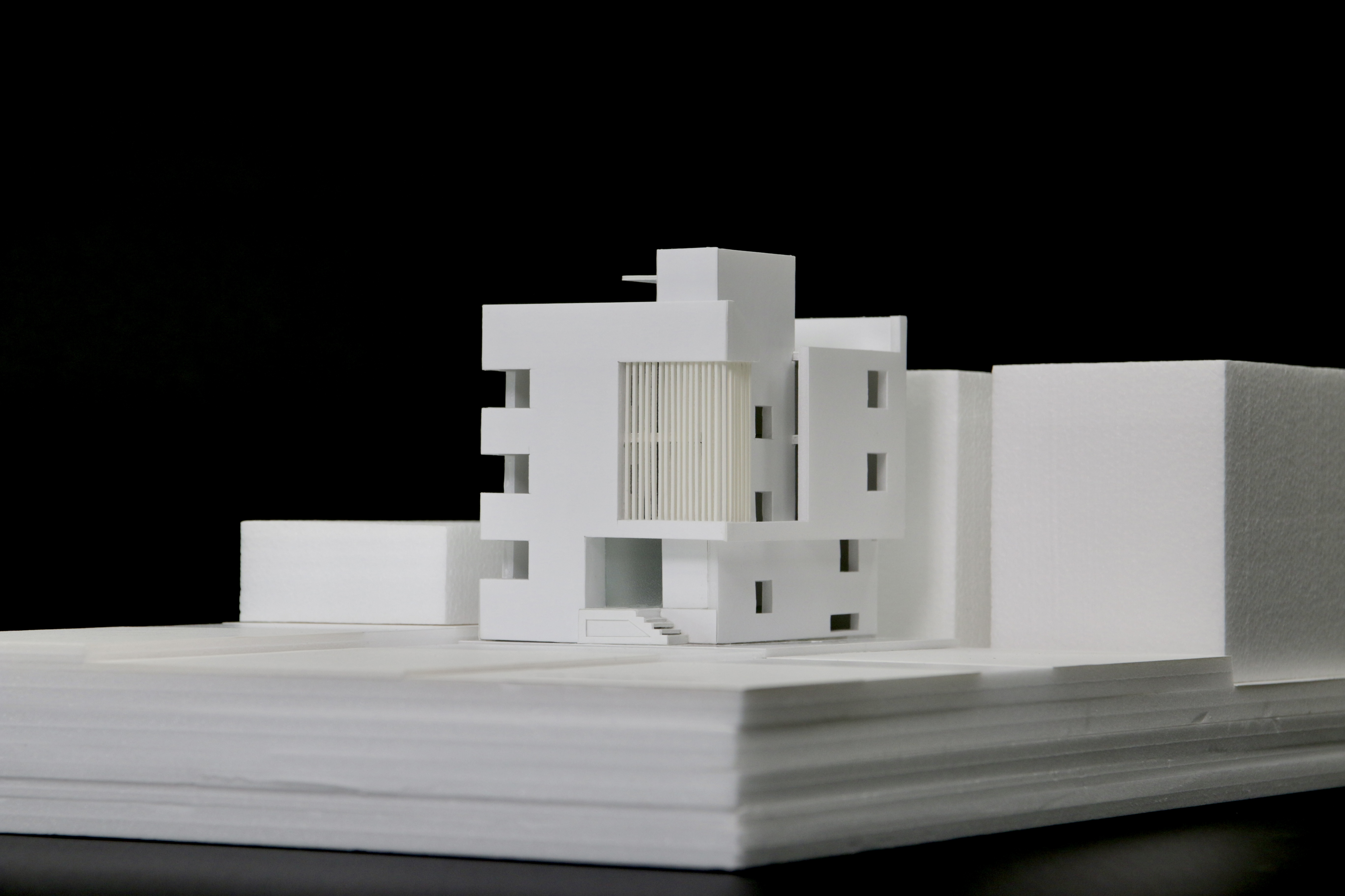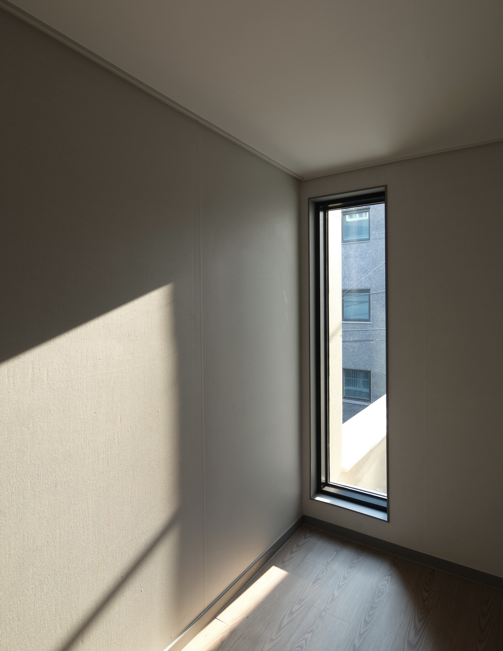 대지 남측 낮은 건물 쪽으로 방들을 배치하고 북쪽으로 코어를 구성하여, 향과 조망을 고려하였다.