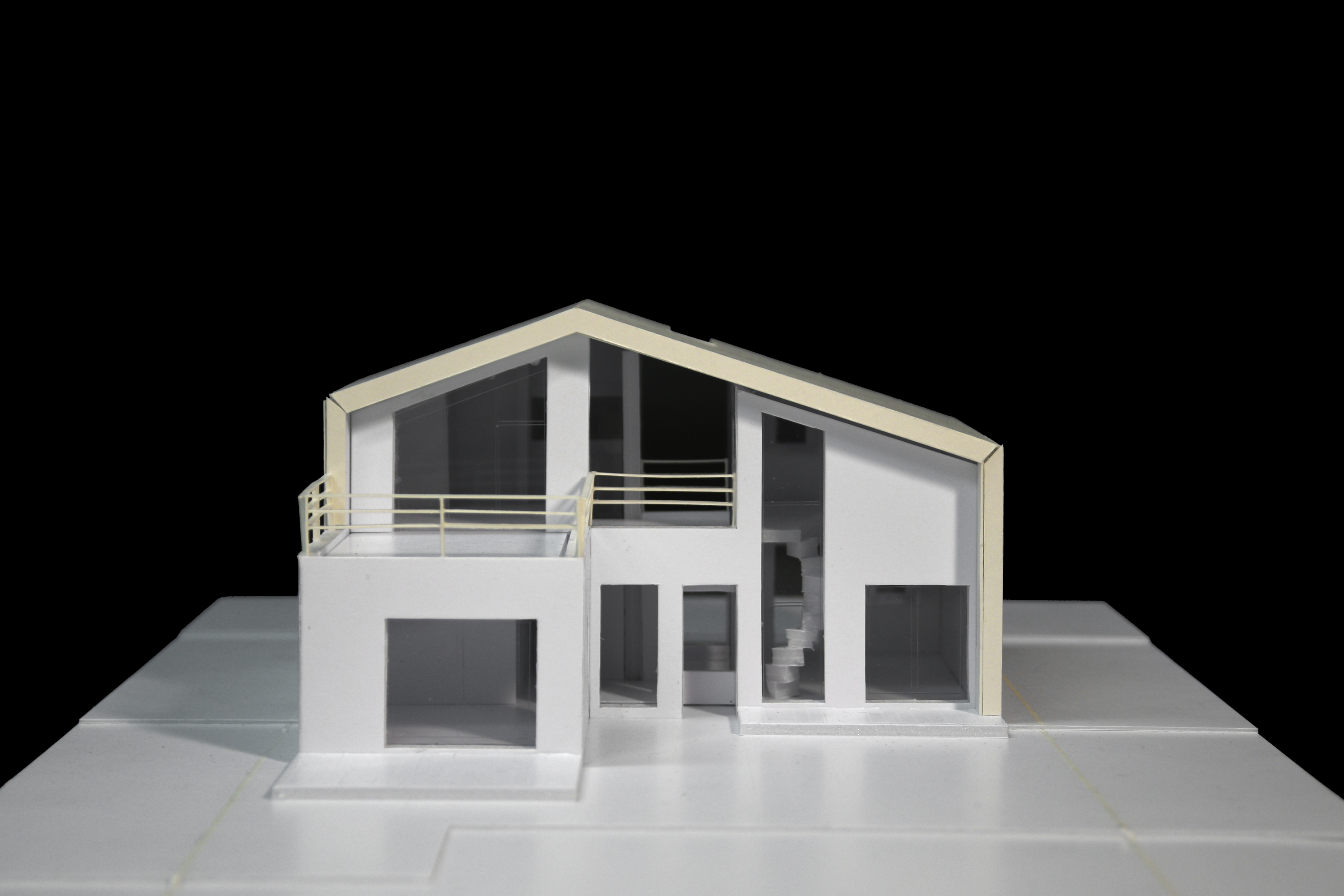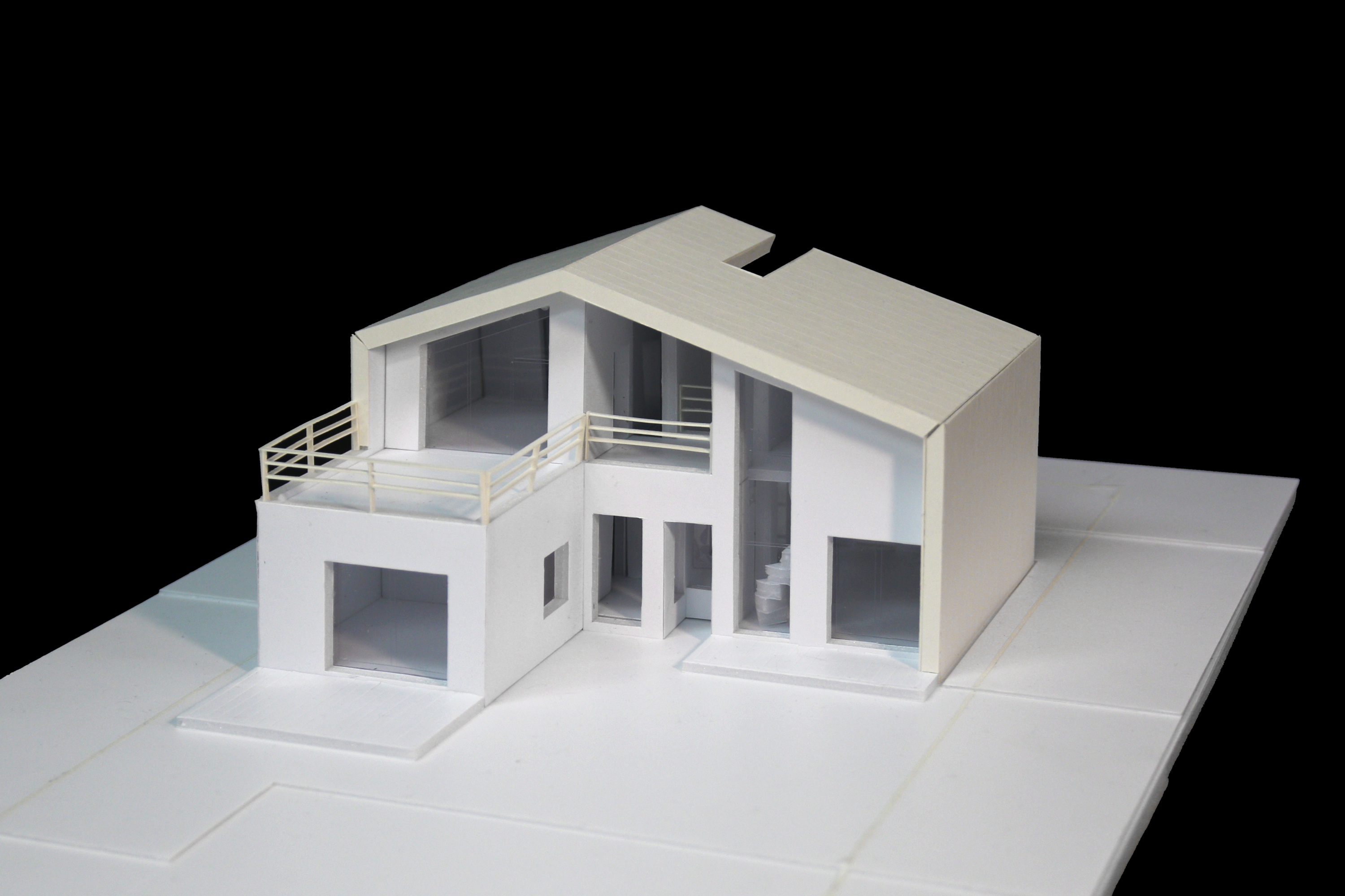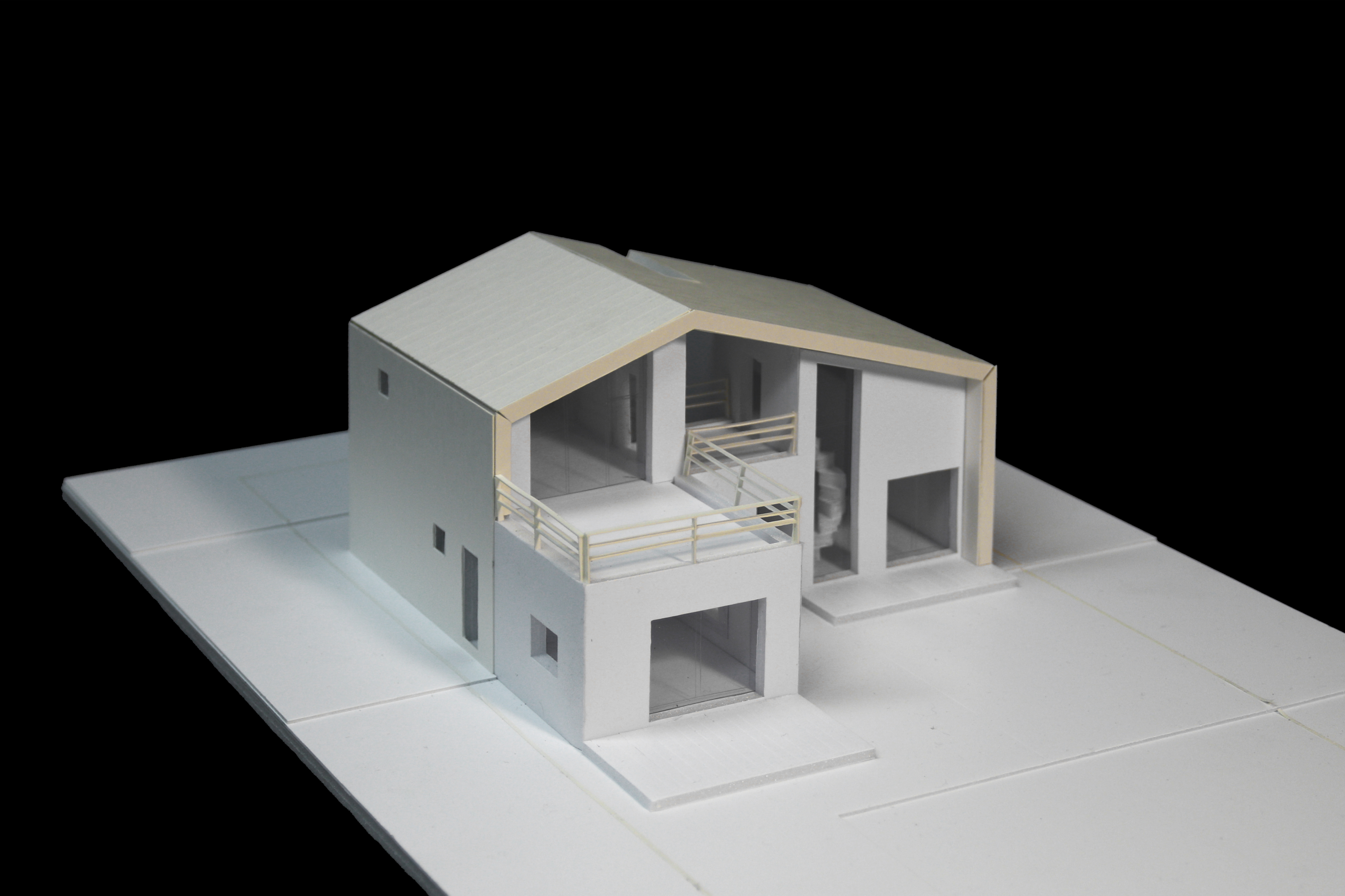 주거공간과 작업실 공간을 평면적으로 분리하고, 하나의 지붕으로 층고가 다른 두 공간을 감싸는 형태이다.