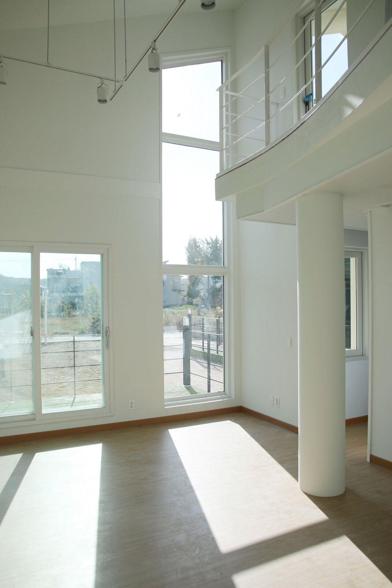 두 공간의 비워진 공간으로 빛과 바람이 통하는 테라스를 구성하였다.