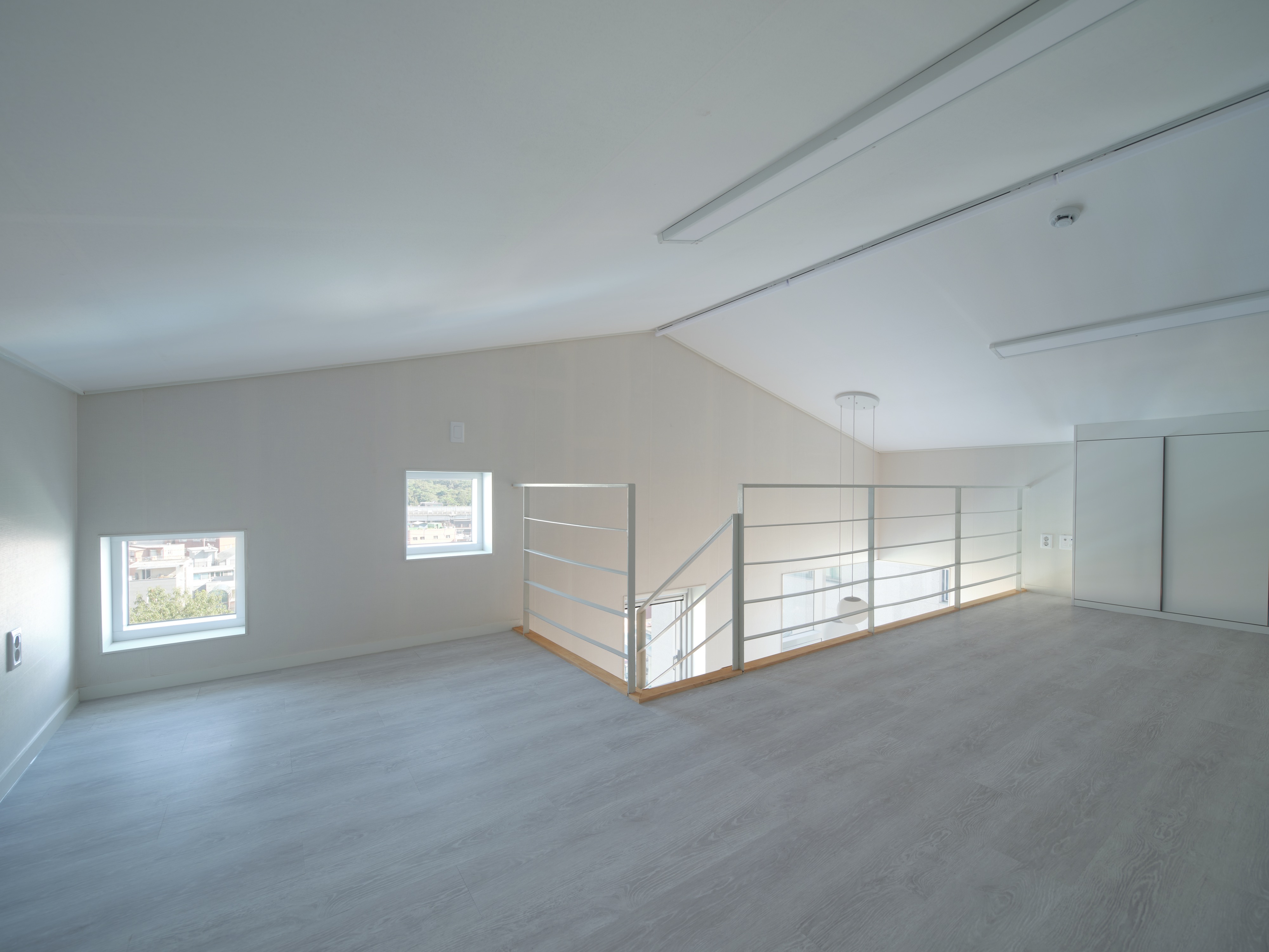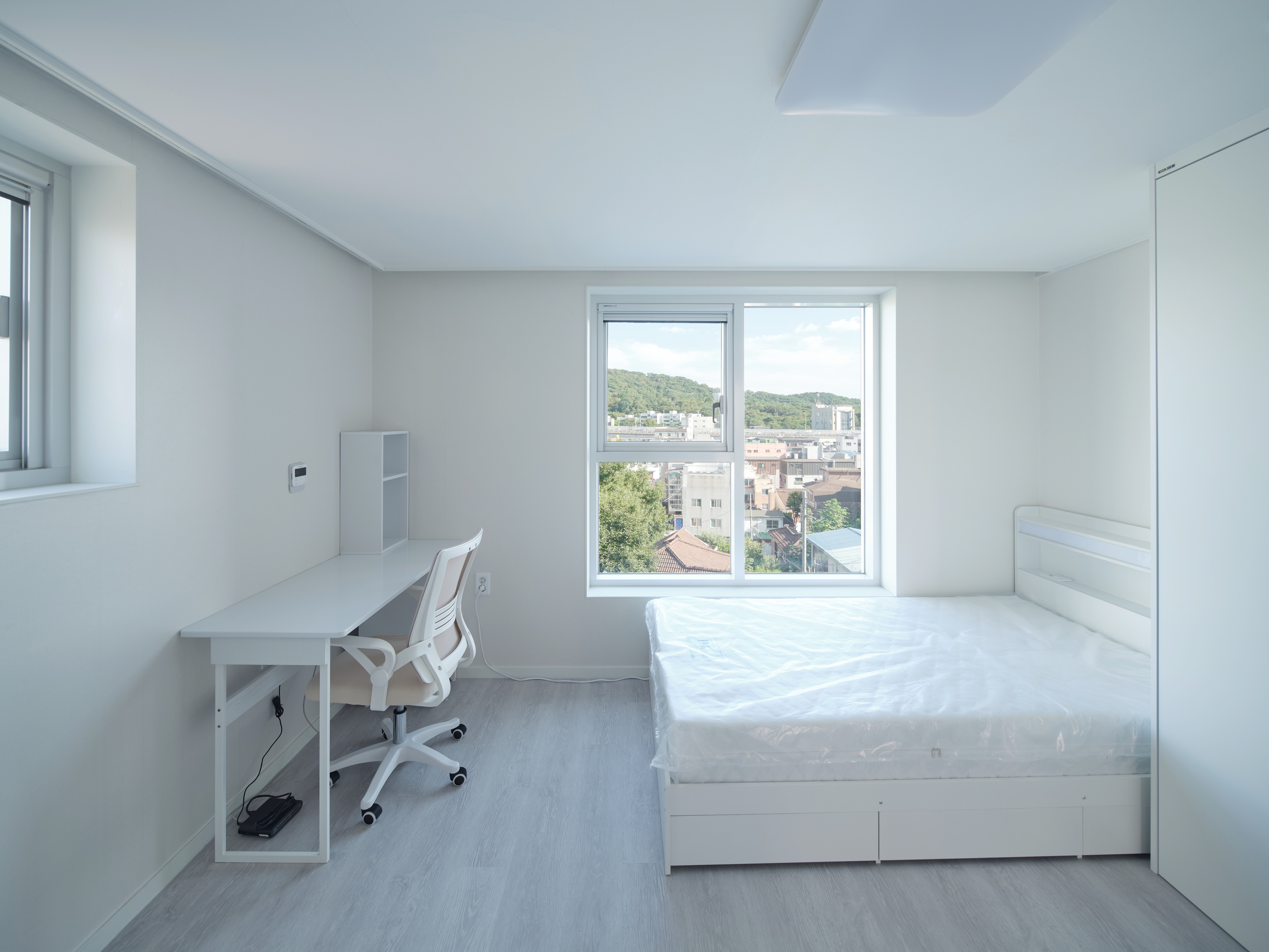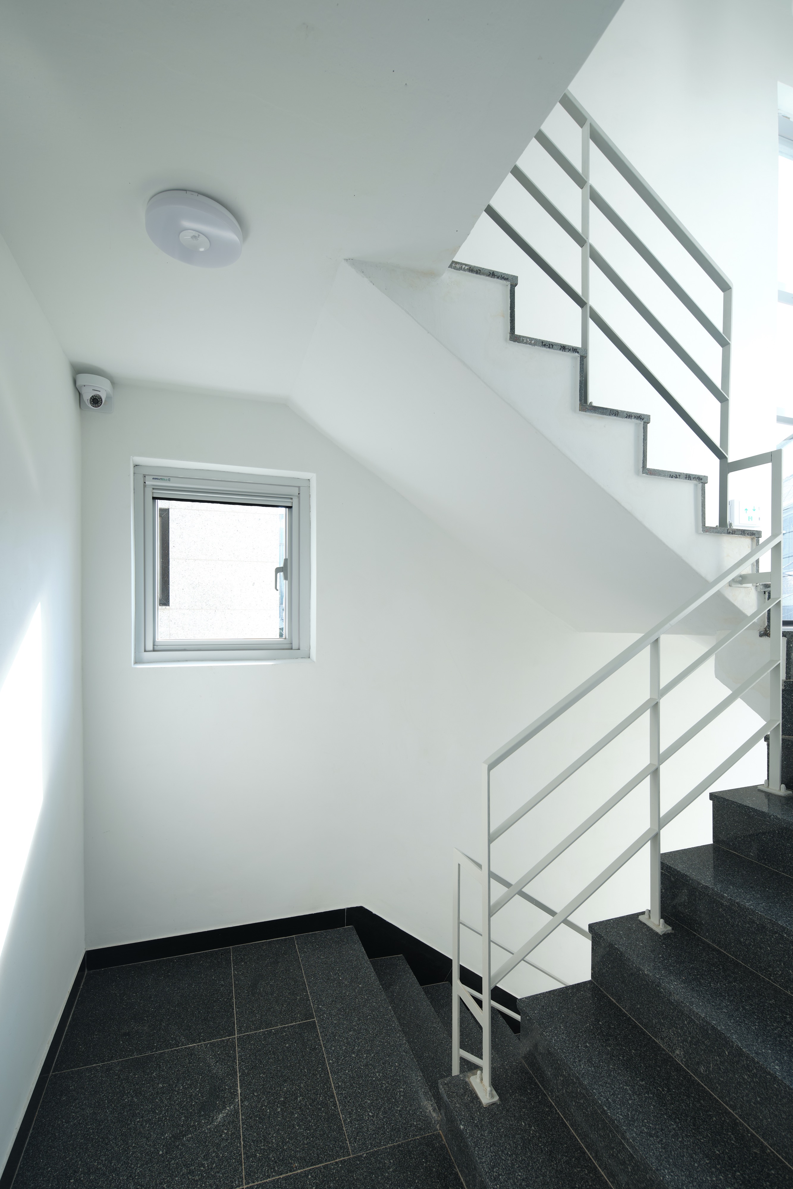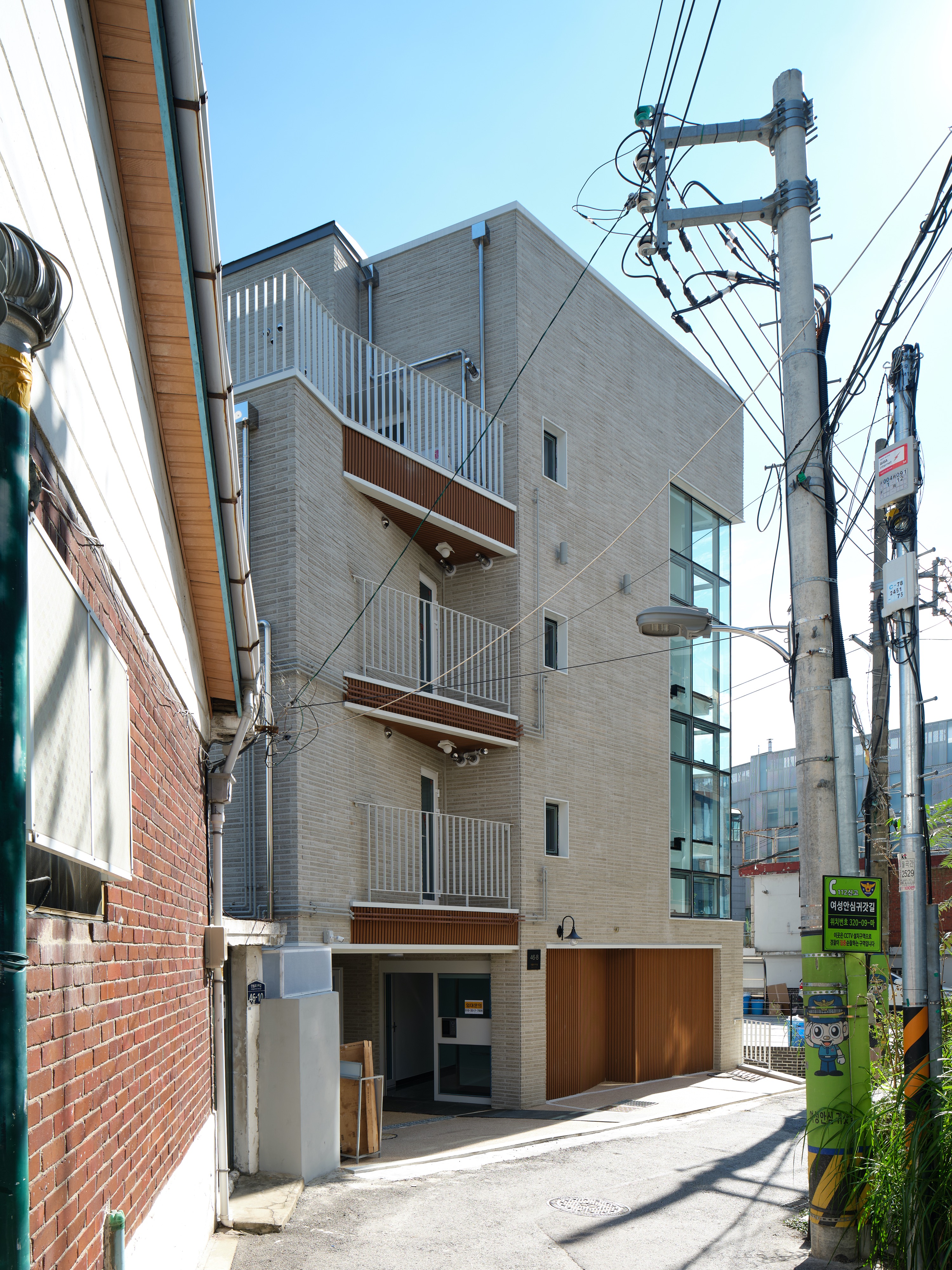 향과 조망을 고려하여 남쪽과 골목 쪽으로 집중하여 창을 내고, 북서측 모퉁이를 활용하여 계단실을 배치했다.