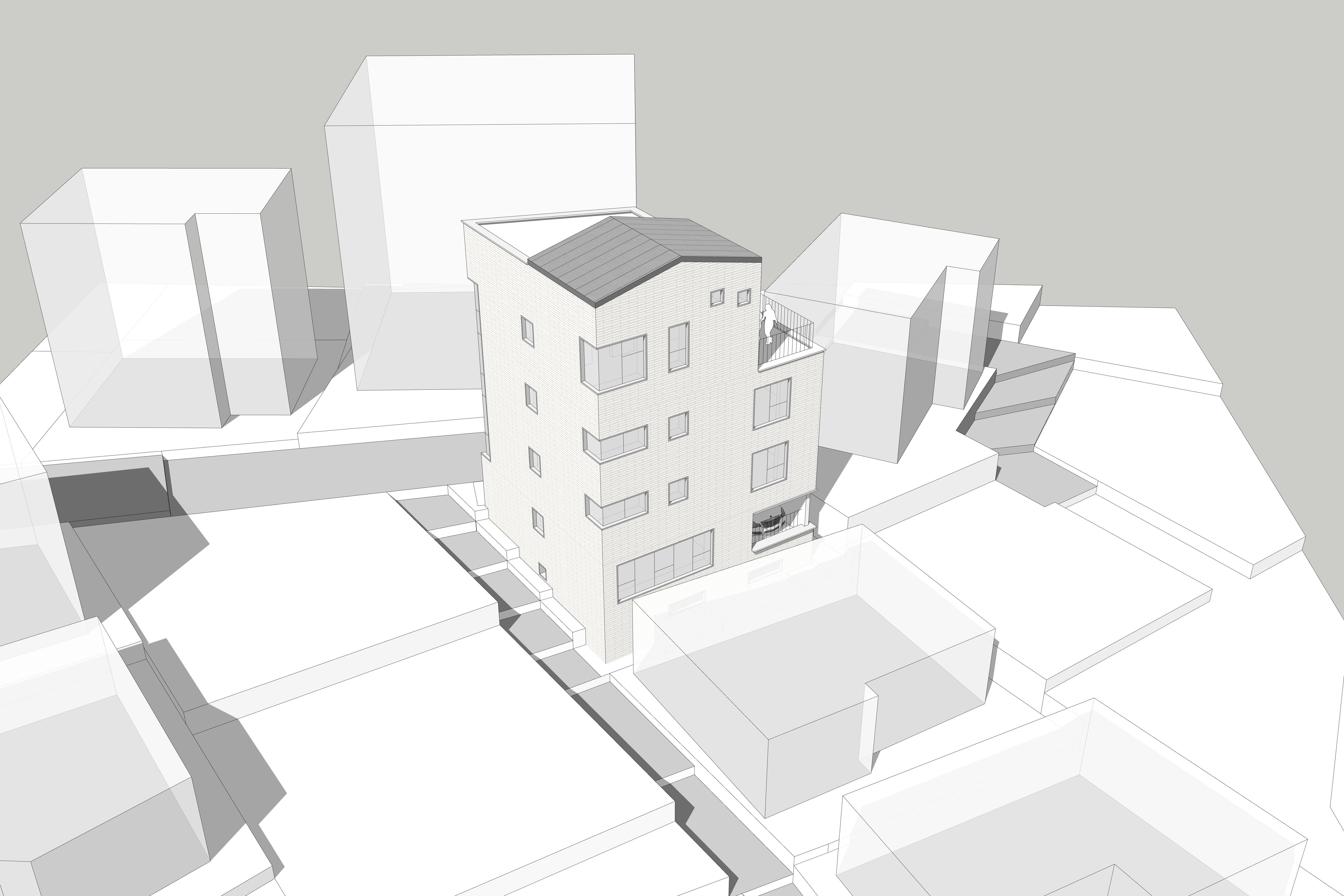대지 북쪽에 접해 있는 도로 덕분에 일조권의 영향이 상대적으로 작았고, 1층에 작은 근린생활시설이 있는 지상4층의 다중주택을 계획하기로 했다.