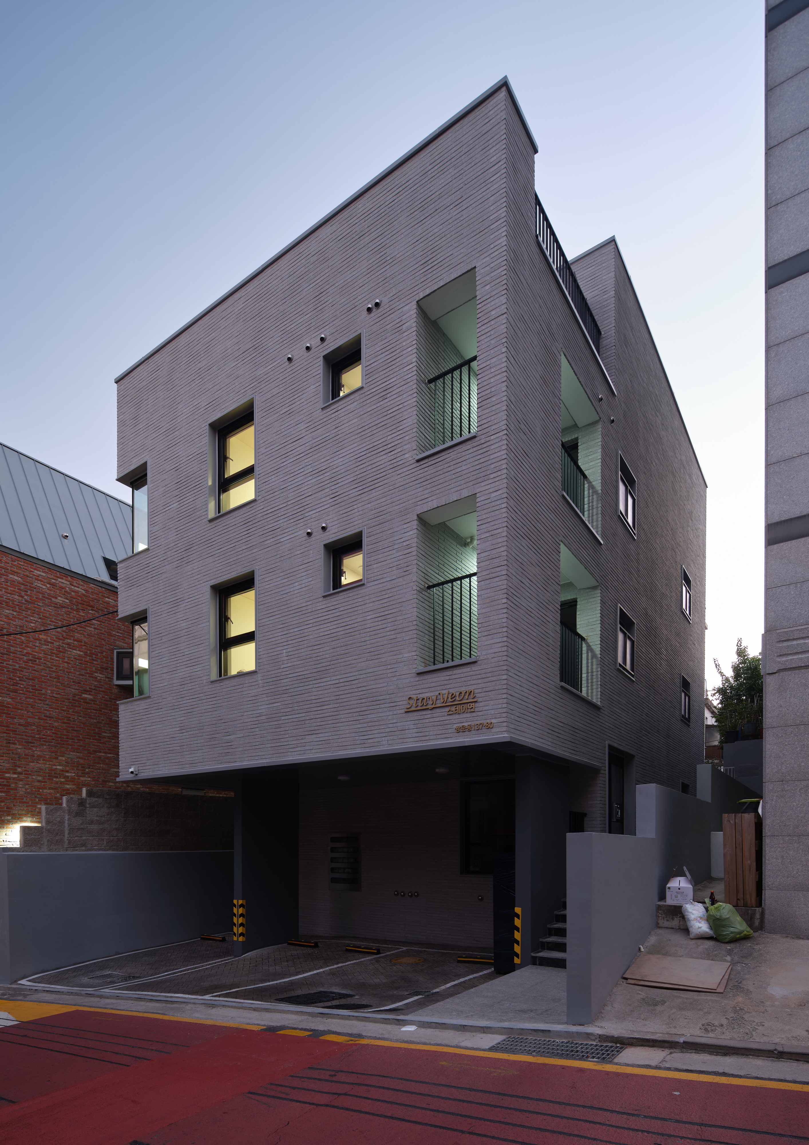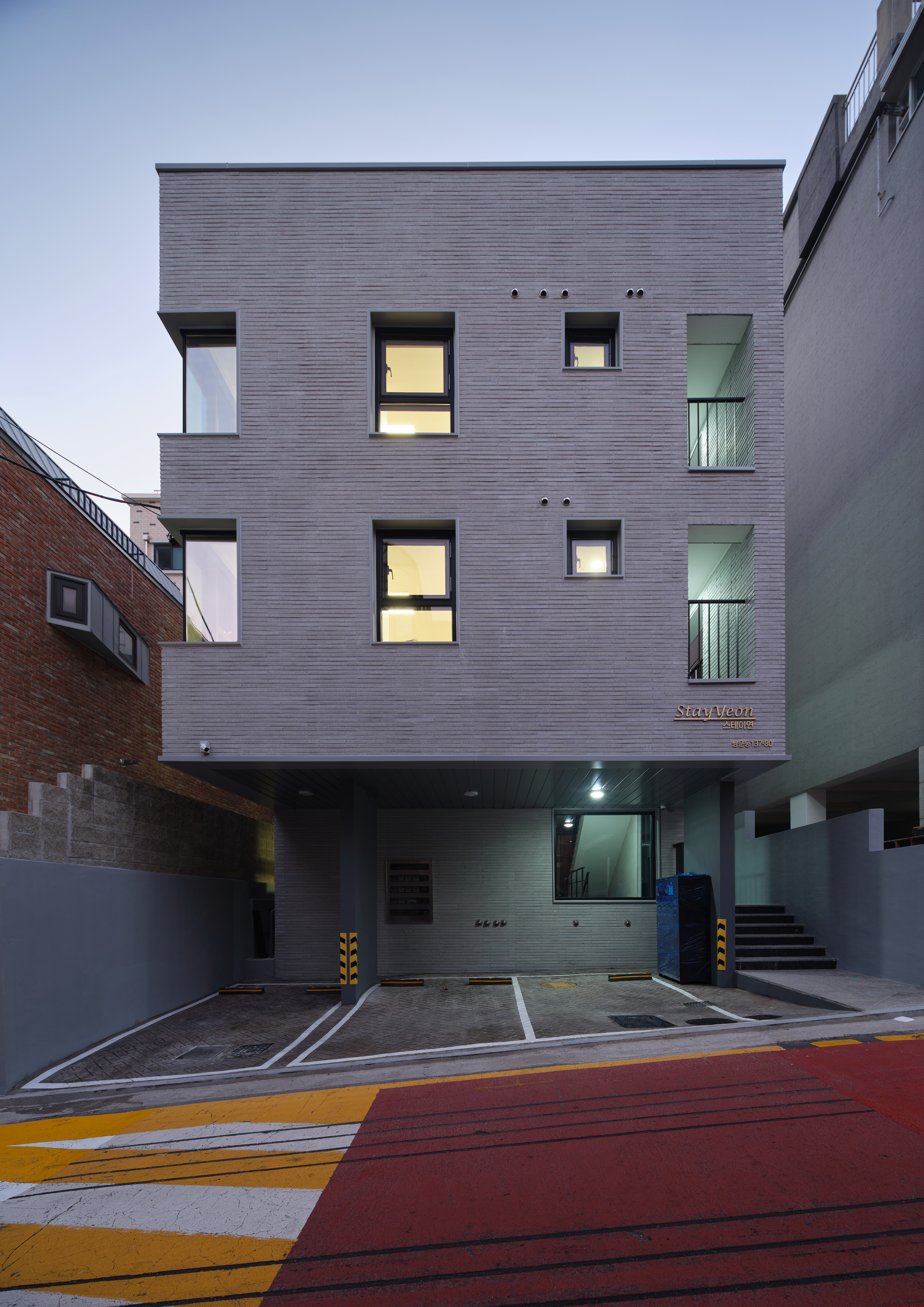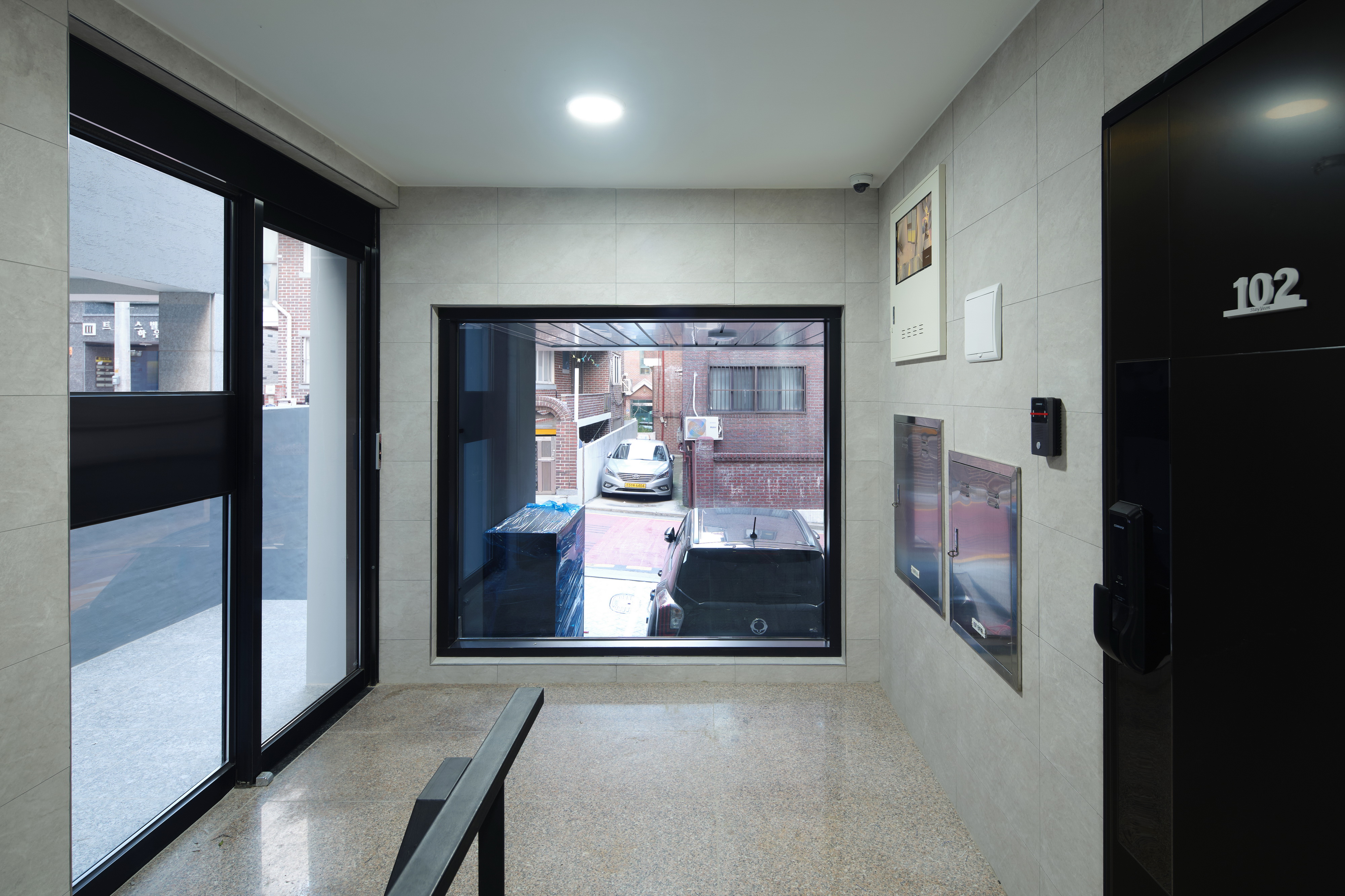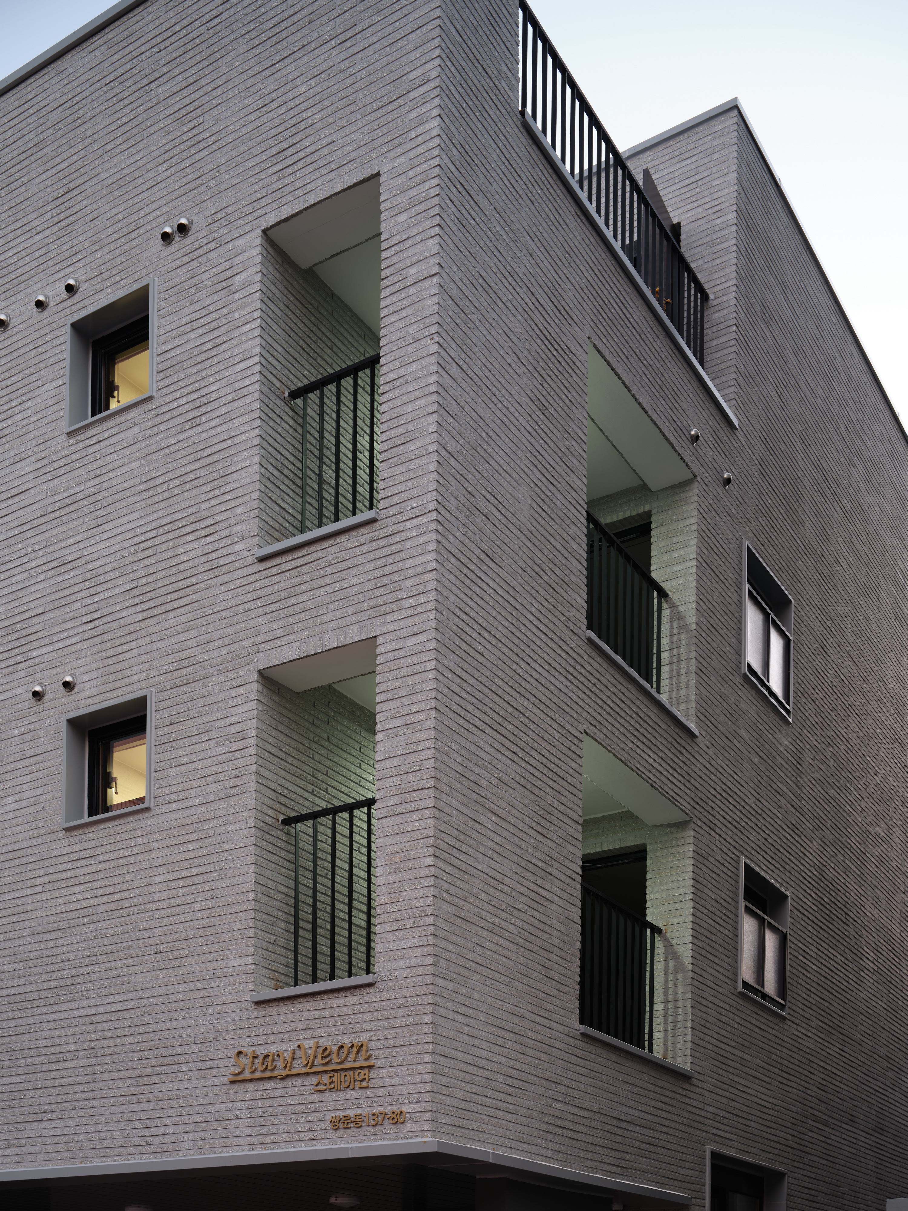 지상 2,3 층은 복도와 연결된 작은 발코니를 도로변과 연결되도록 구성하여 틈틈이 외부공간을 만날 수 있도록 했다.