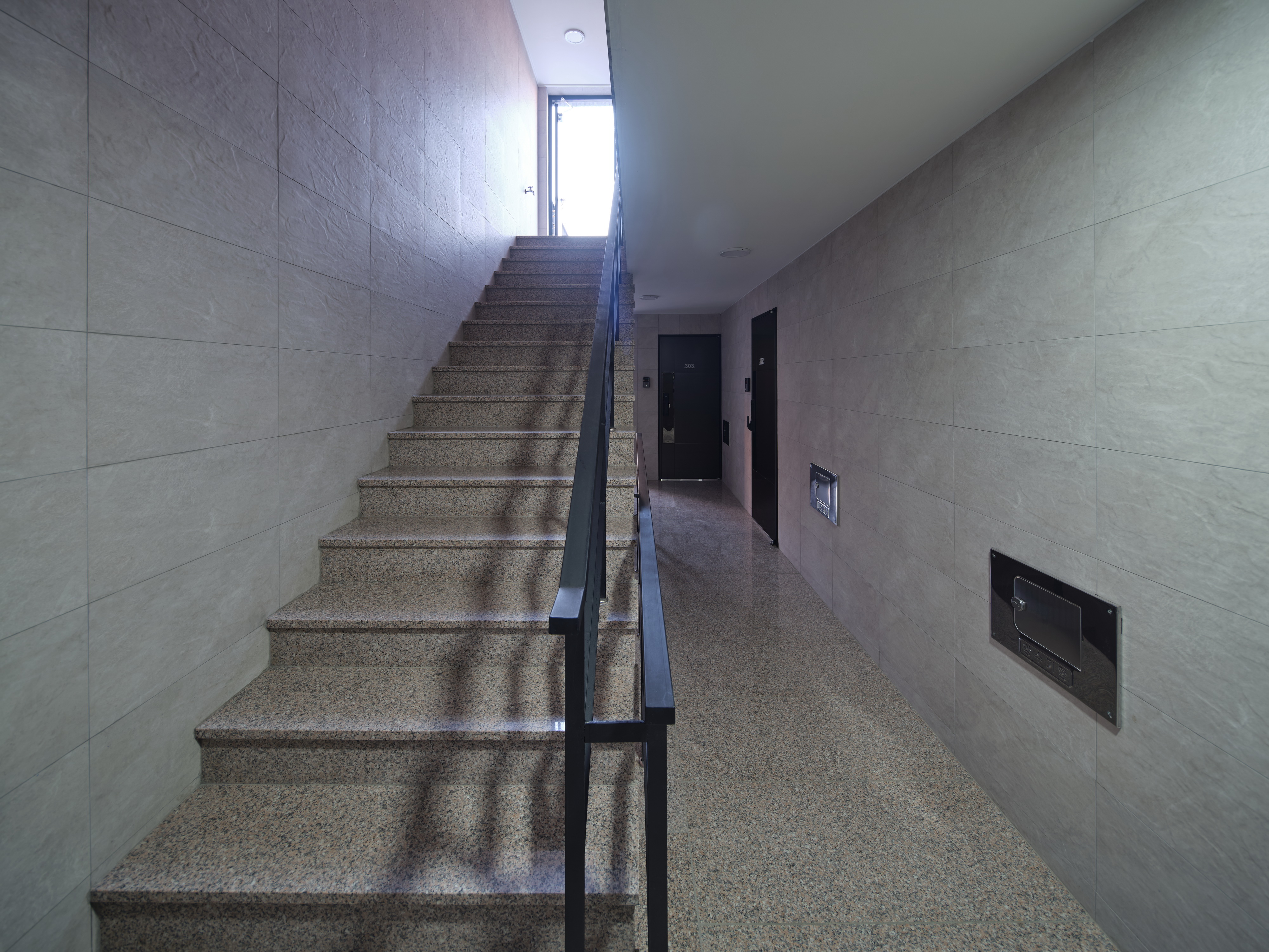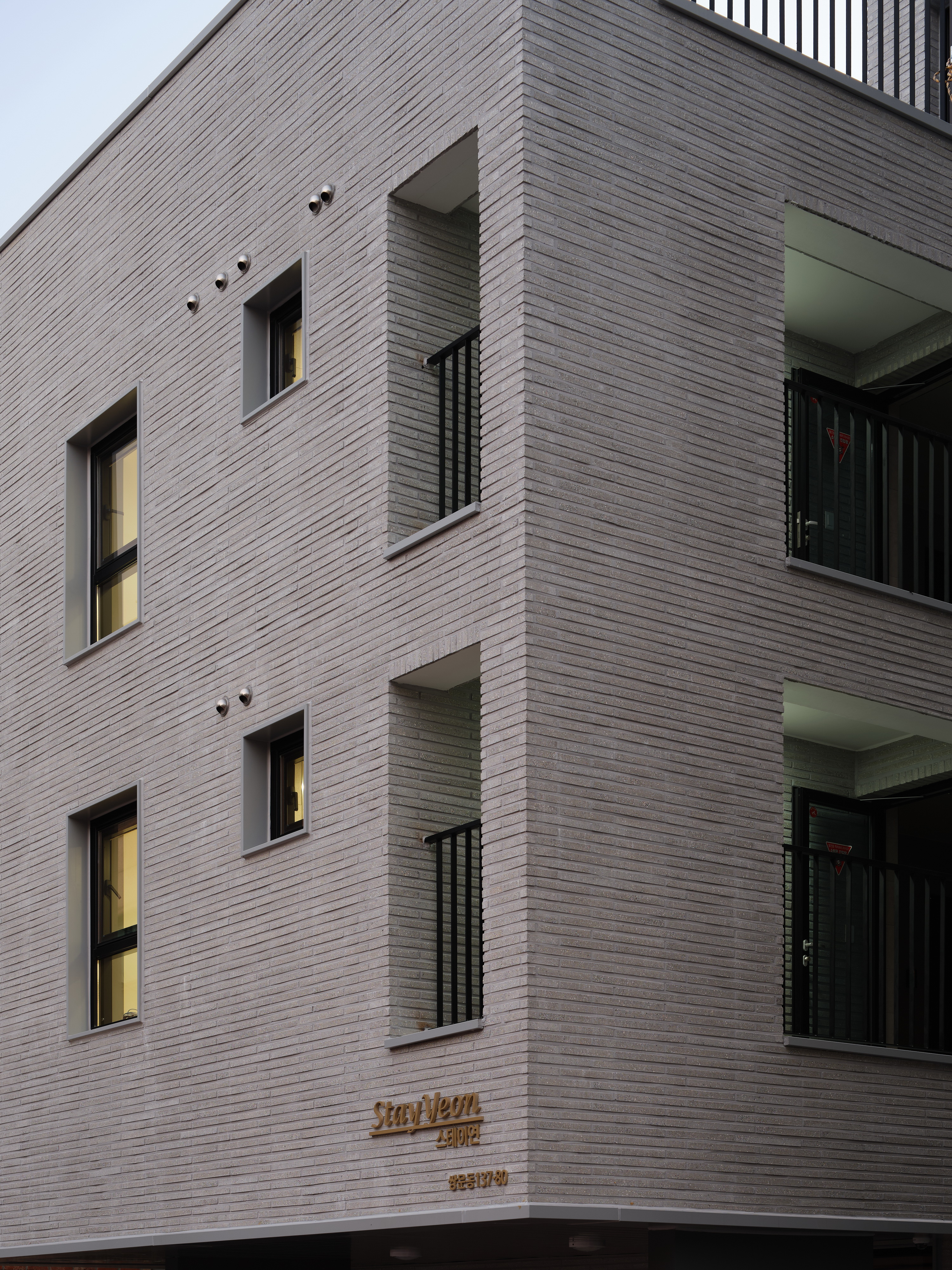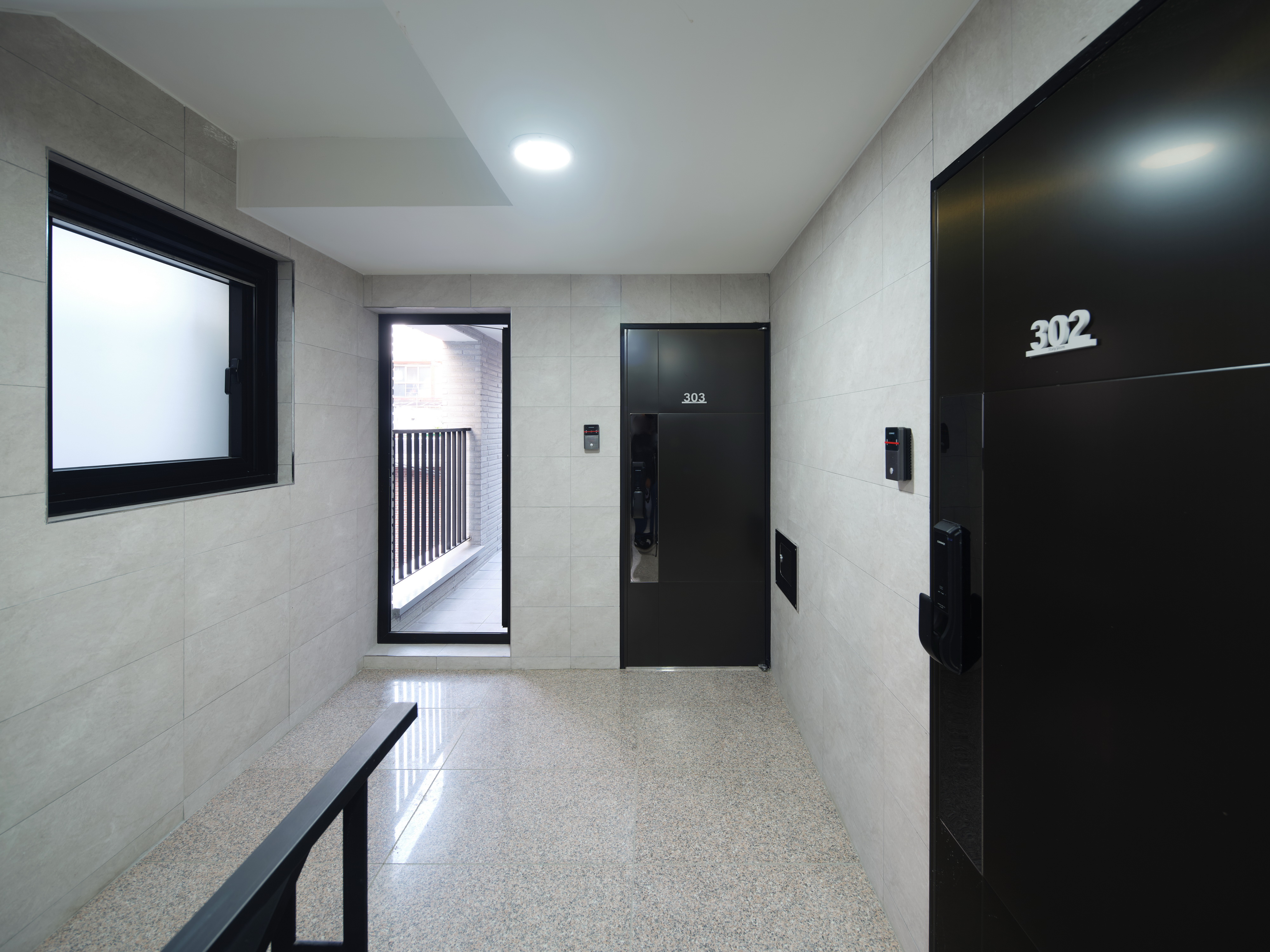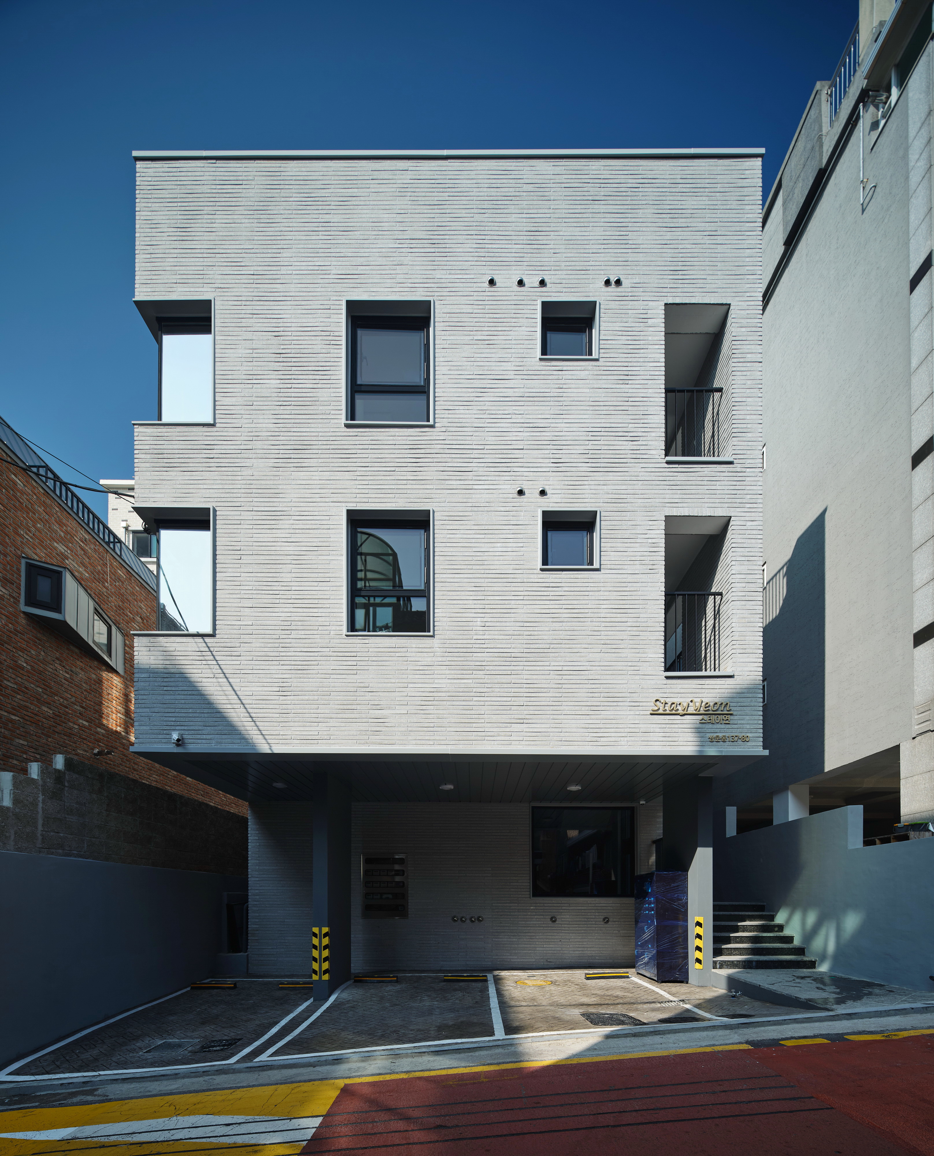 지상 2,3 층은 복도와 연결된 작은 발코니를 도로변과 연결되도록 구성하여 틈틈이 외부공간을 만날 수 있도록 했다.