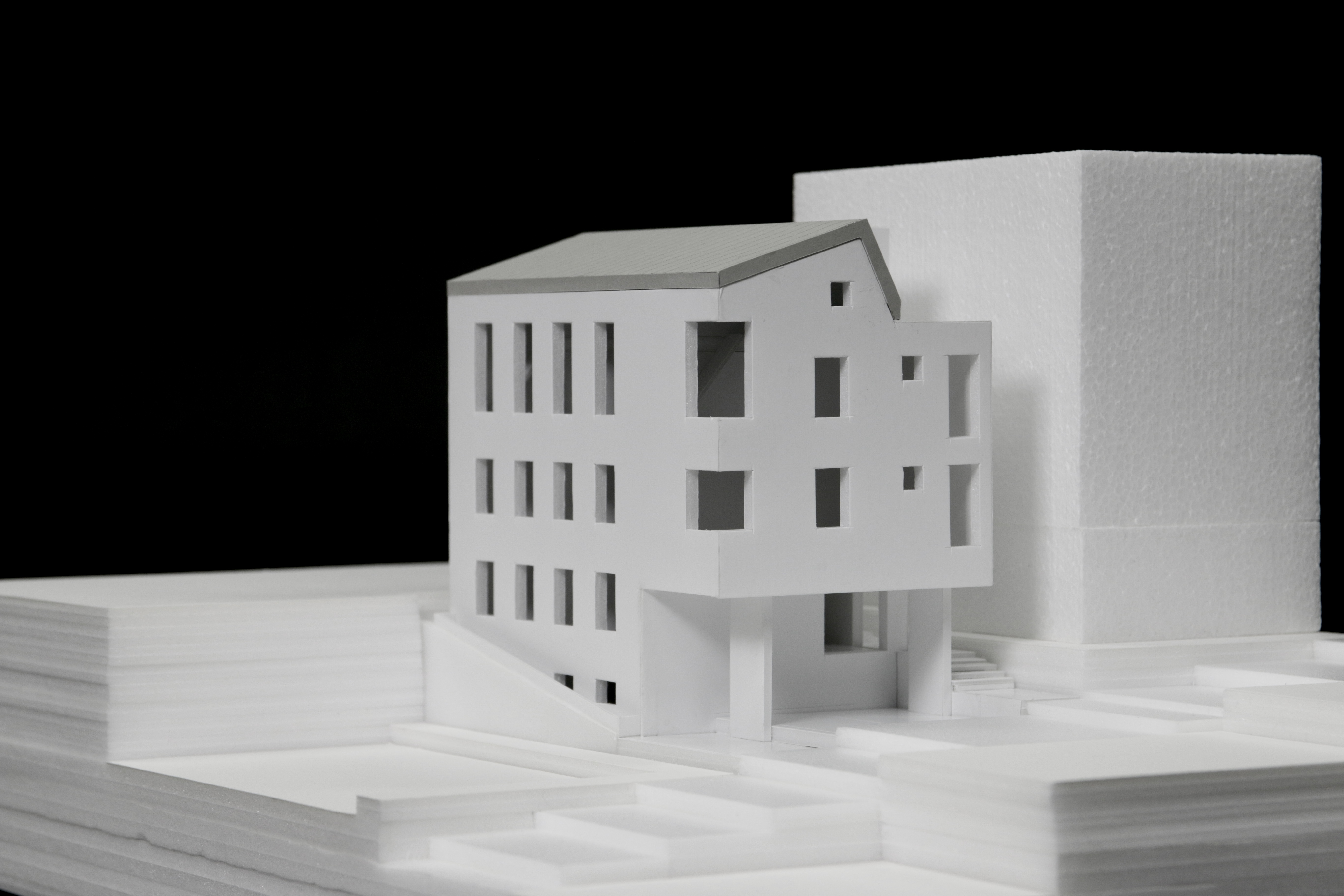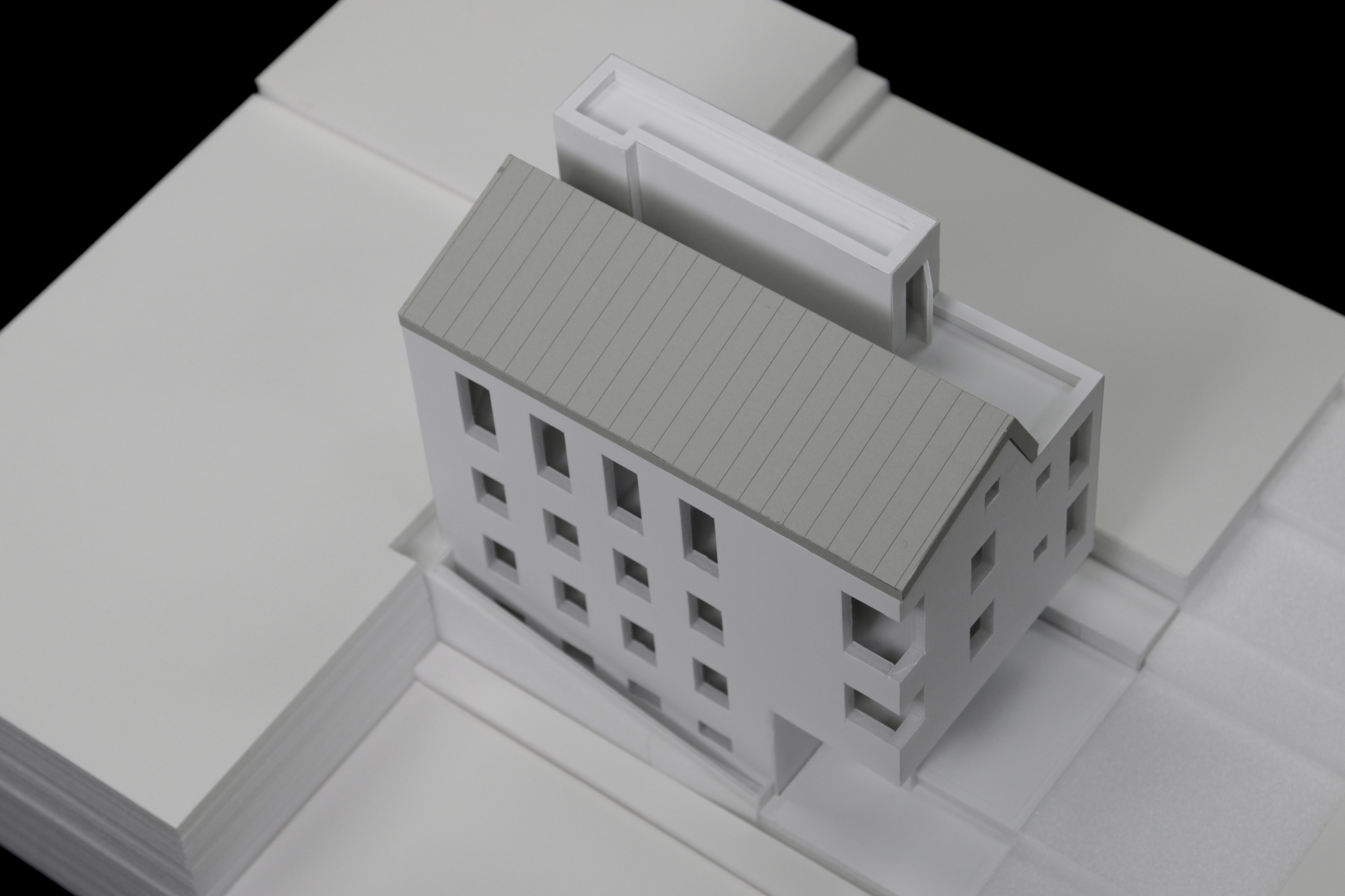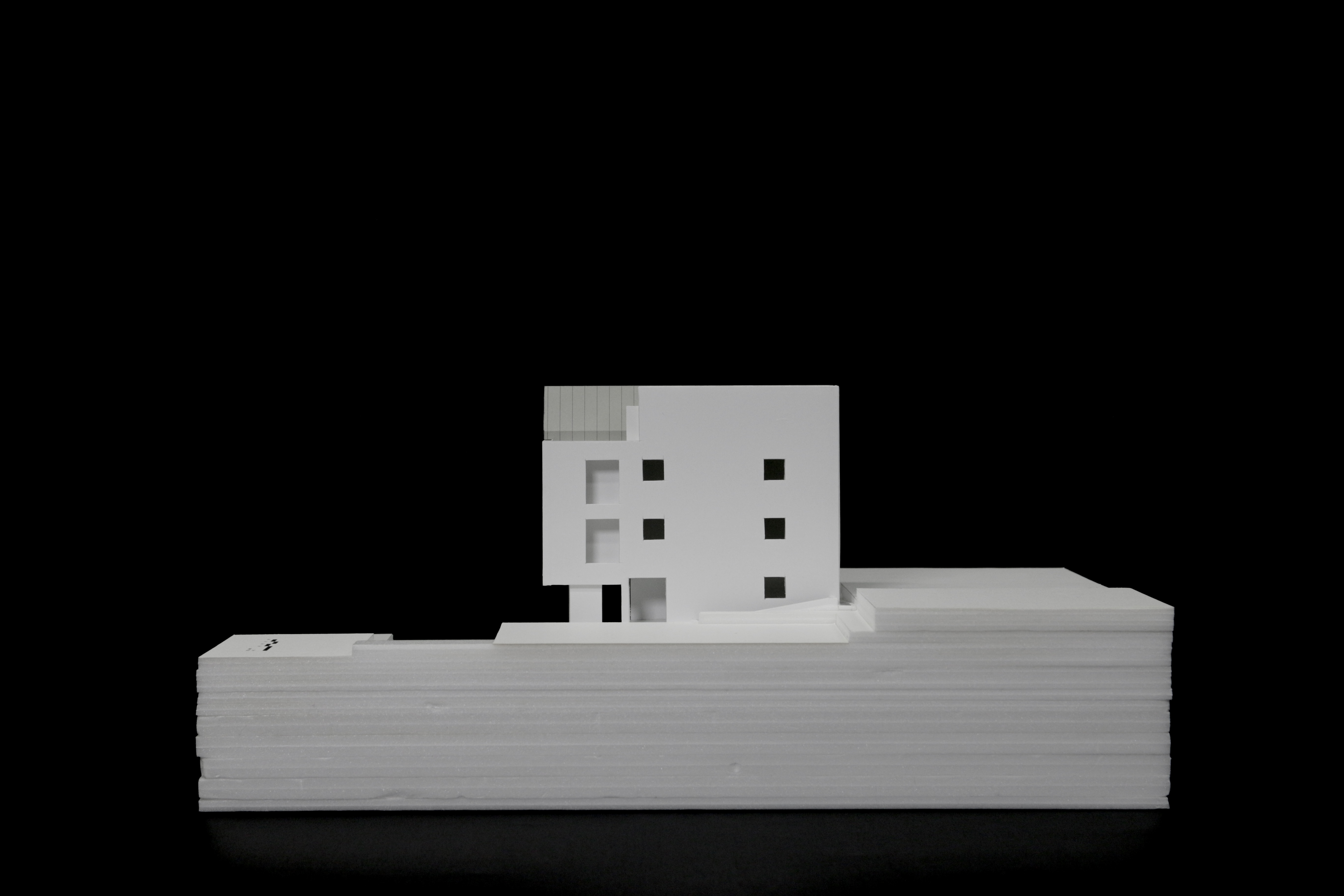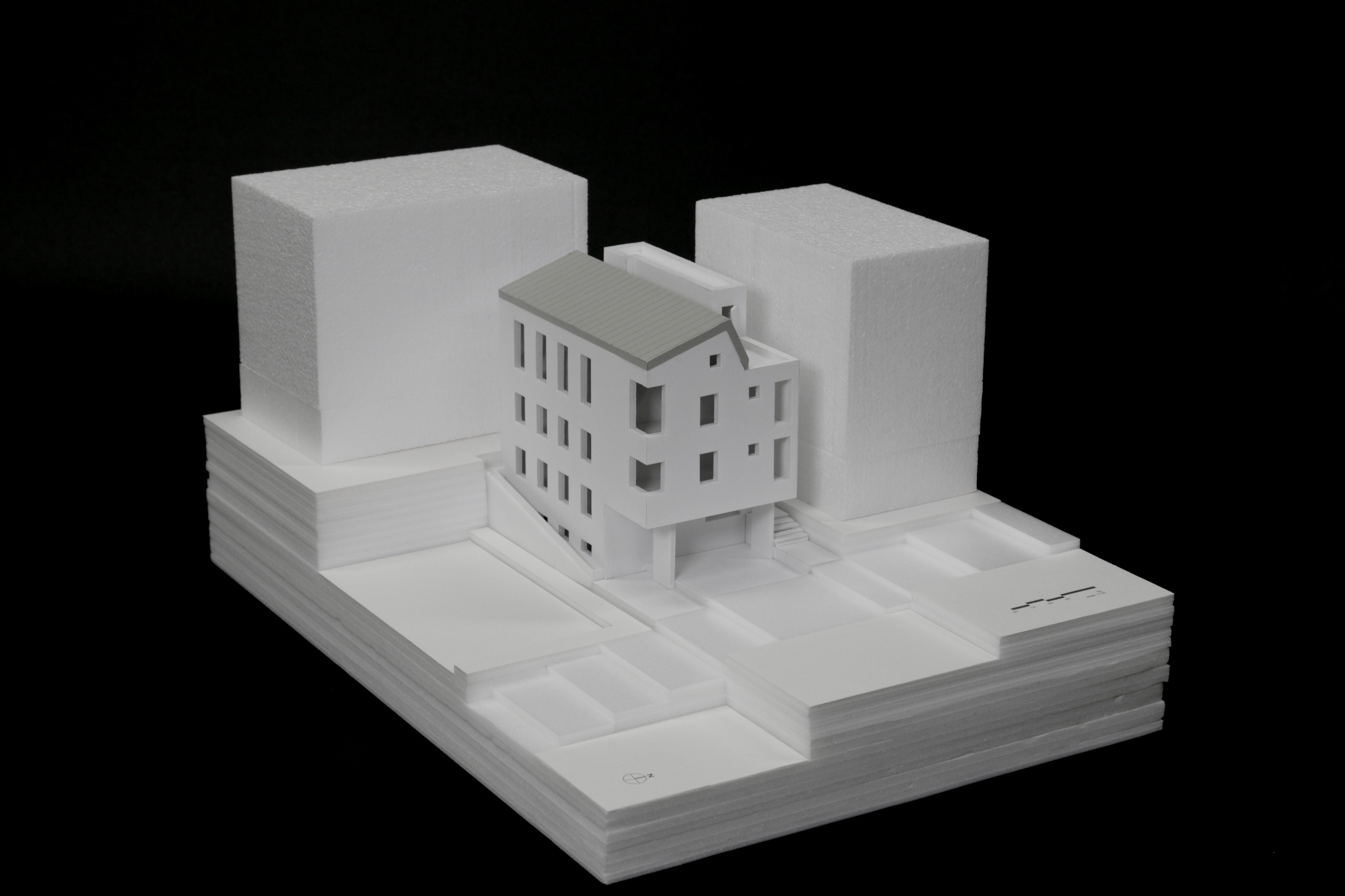 도로변을 제외한 모든 면이 인접 대지 건축물로 둘러싸여 있는 상황이라, 그중 채광과 조망이 양호한 남향으로 실들을 배치하고, 북쪽으로 계단실과 엘리베이터를 길쭉하게 구성했다.