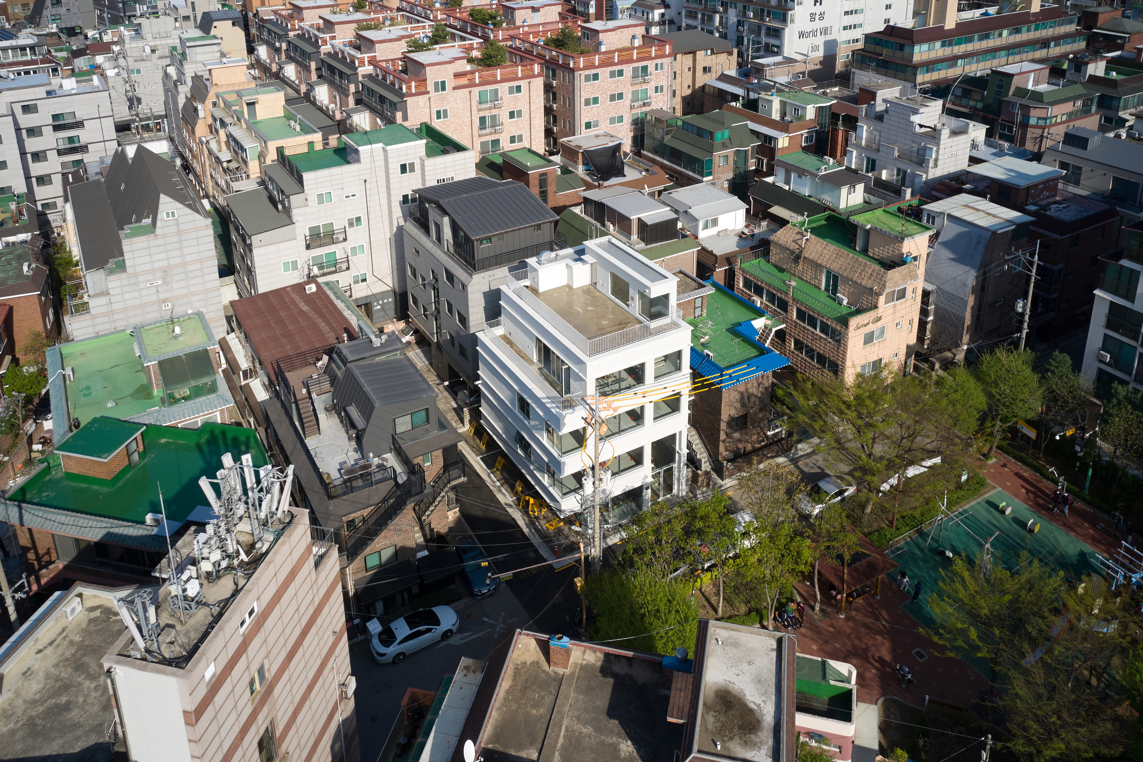 일조사선의 제한은 있지만 지상층의 용적률을 모두 확보하며 지상4층으로 구성하여 각층의 전용면적을 최대로 확보했다.