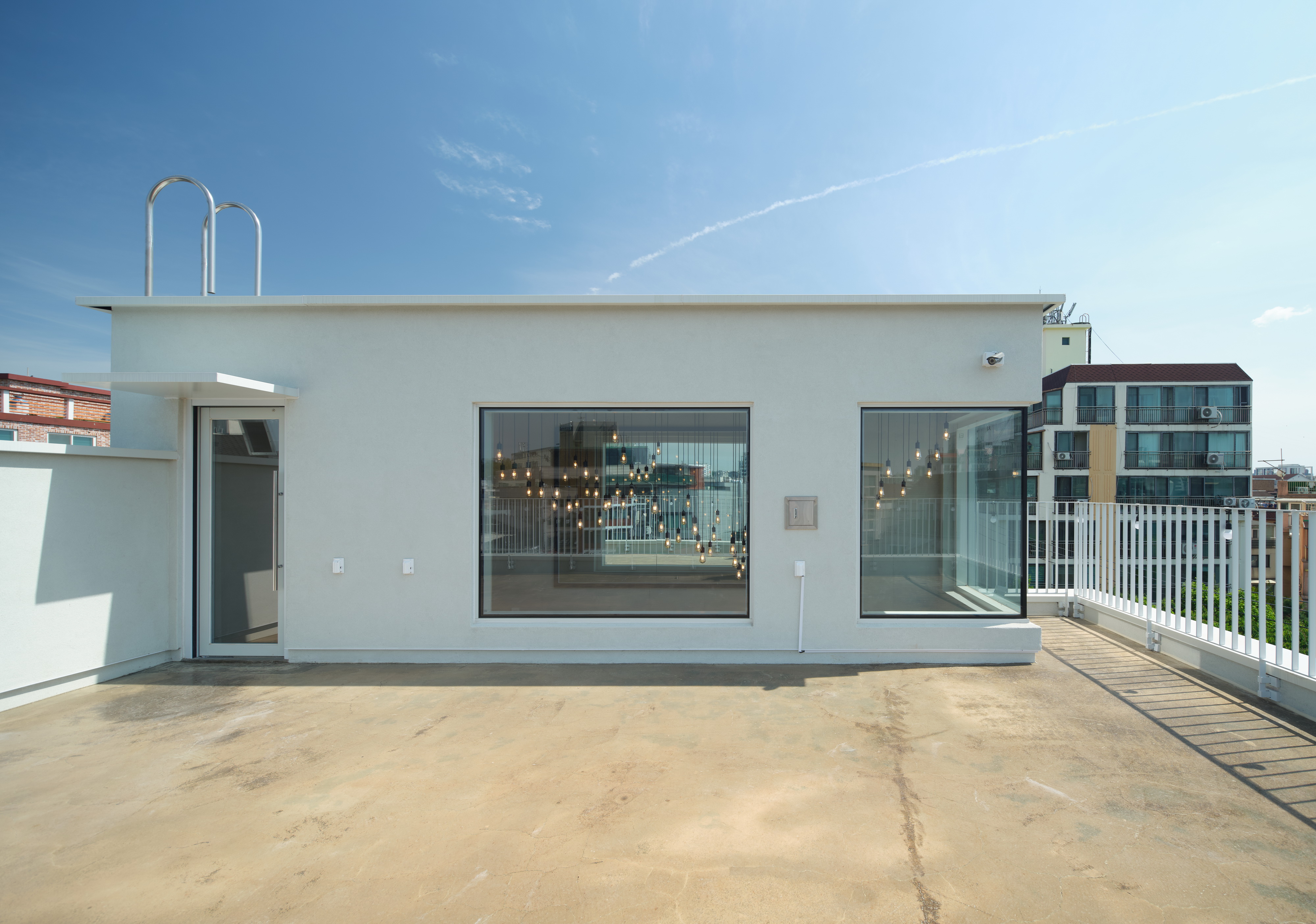 지상4층은 외부 테라스에 접하는 창을 폴딩도어로 계획하고, 옥상으로 연결되는 전용 계단을 설치하여, 전용부분의 확장이 가능한 외부공간을 만들었다.