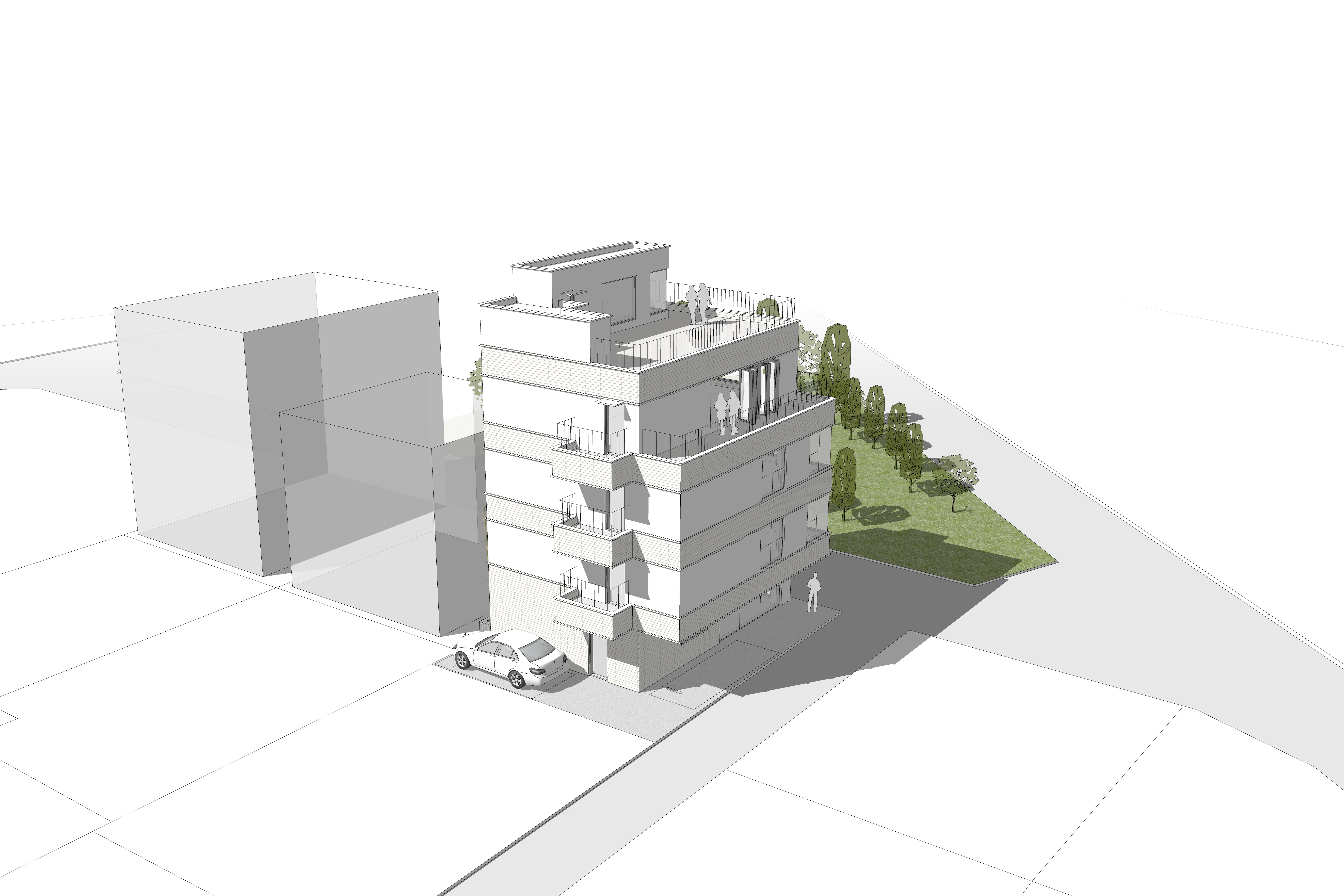 지상5층 대안에 비해 건물의 규모가 작아 보일 수 있으나, 지상5층의 공용면적을 줄인 만큼 지상 2~3층의 전용면적을 크게 가져갈 수 있어 실질적인 임대 효율을 높일 수 있는 계획이다.