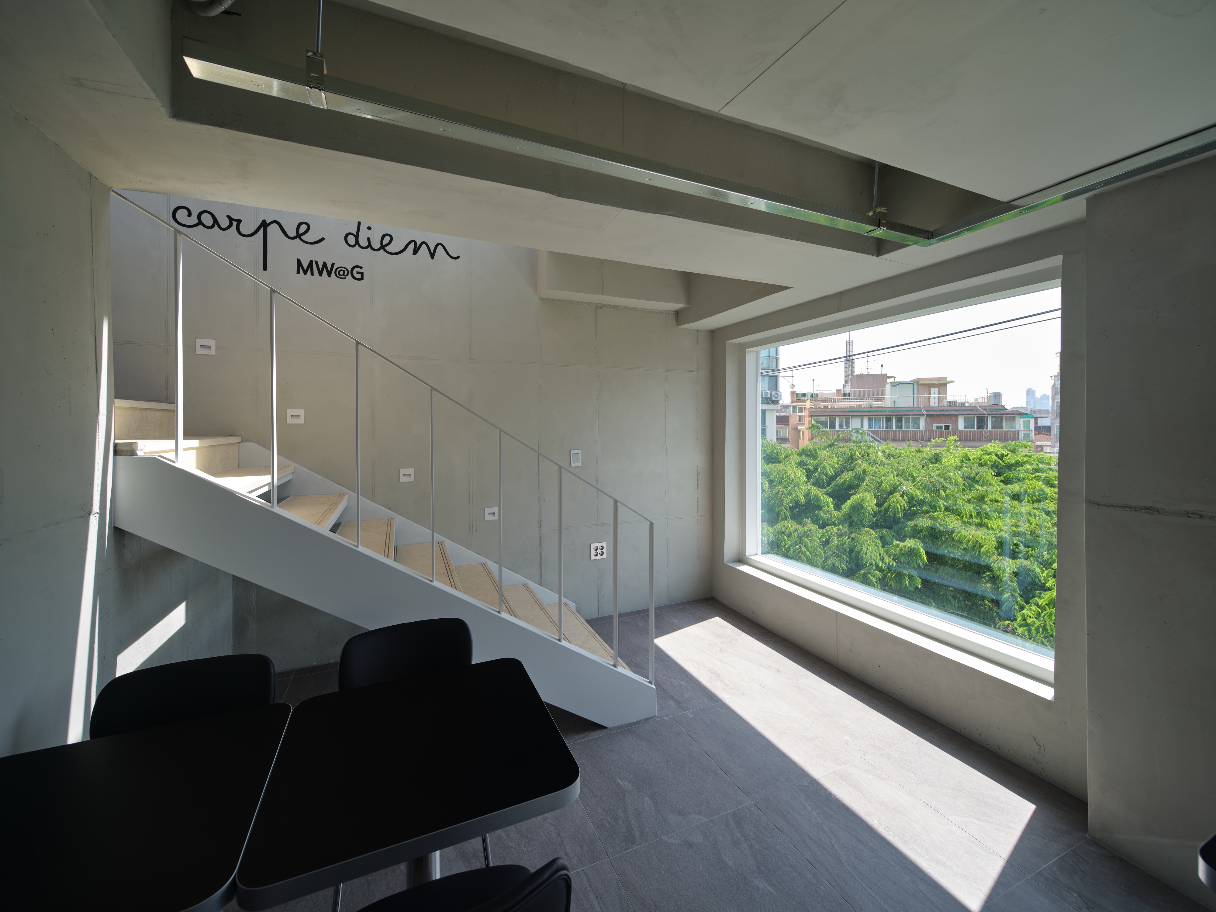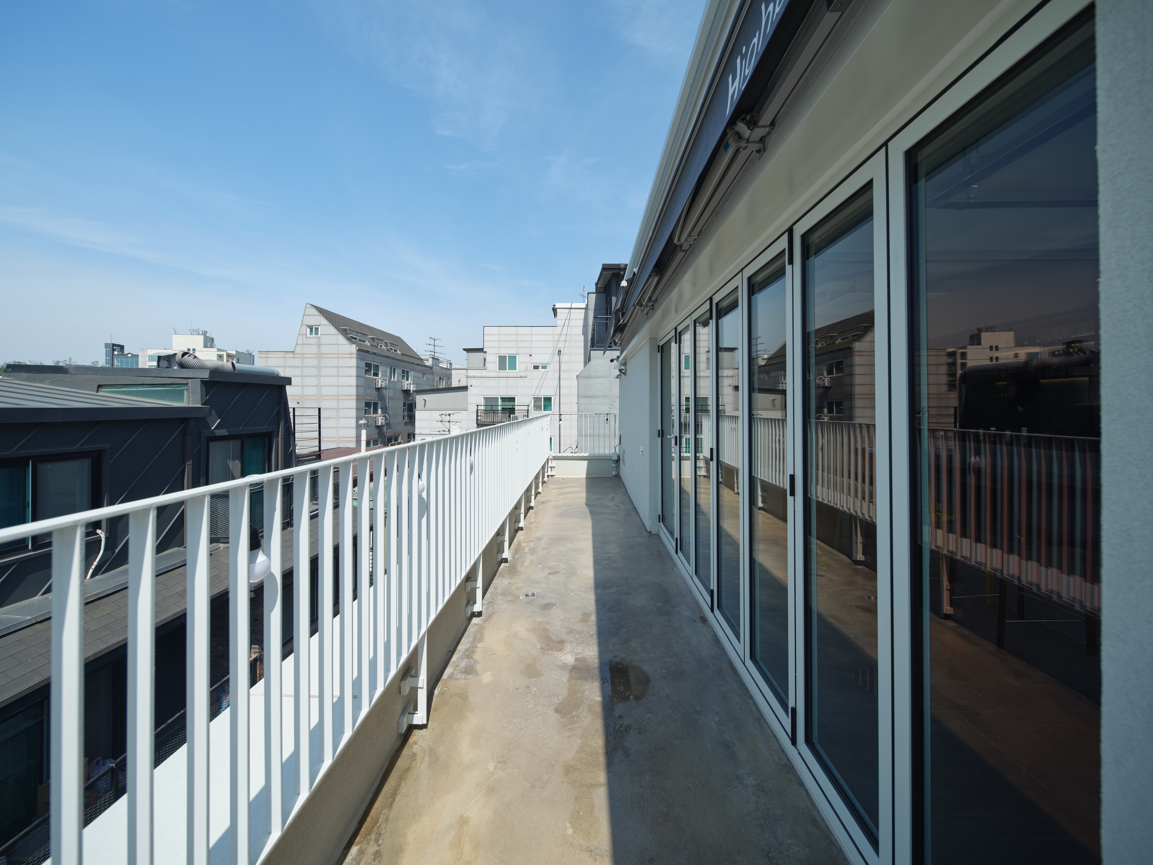지상4층은 외부 테라스에 접하는 창을 폴딩도어로 계획하고, 옥상으로 연결되는 전용 계단을 설치하여, 전용부분의 확장이 가능한 외부공간을 만들었다.