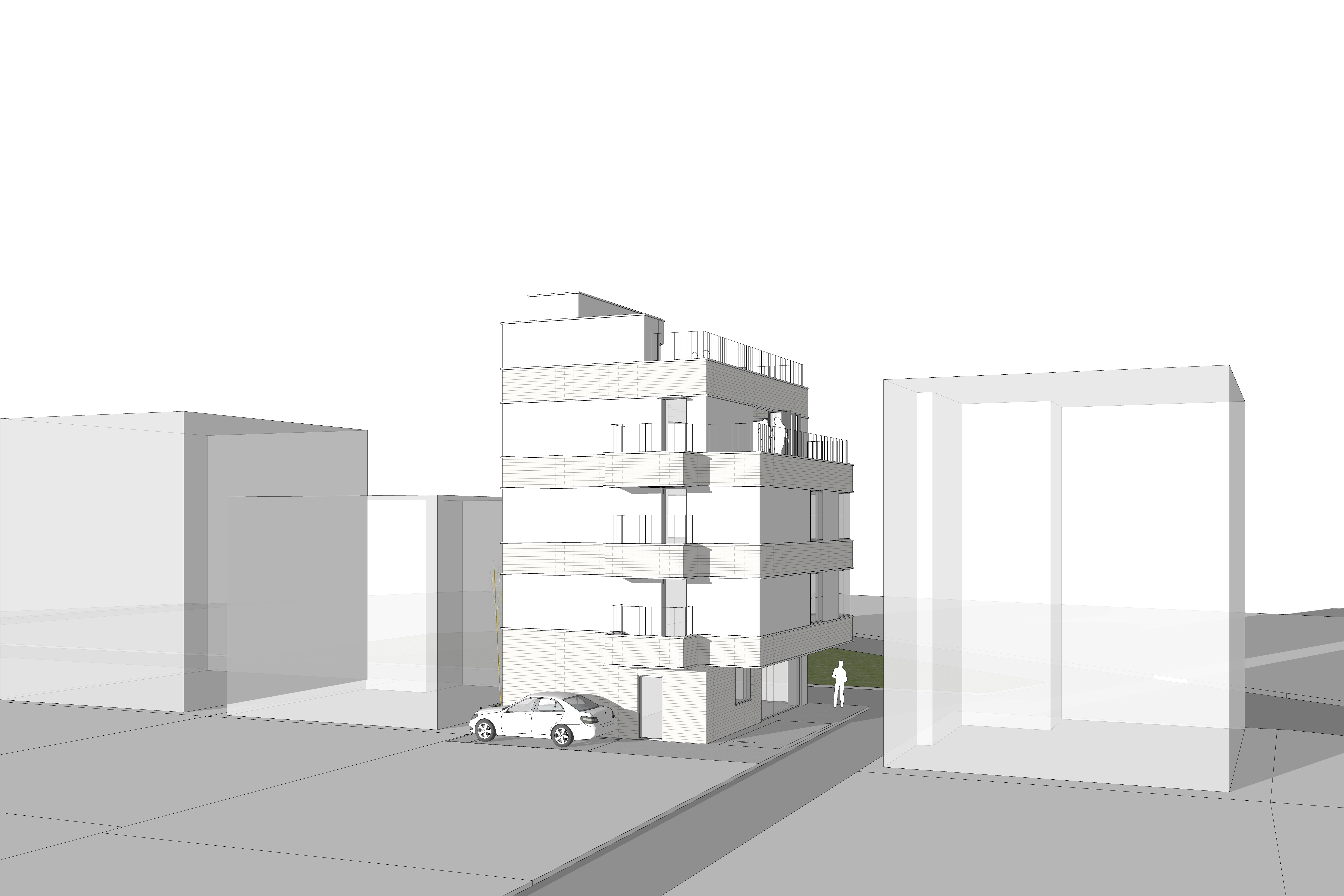 일조사선의 제한은 있지만 지상층의 용적률을 모두 확보하며 지상4층으로 구성하여 각층의 전용면적을 최대로 확보했다.
