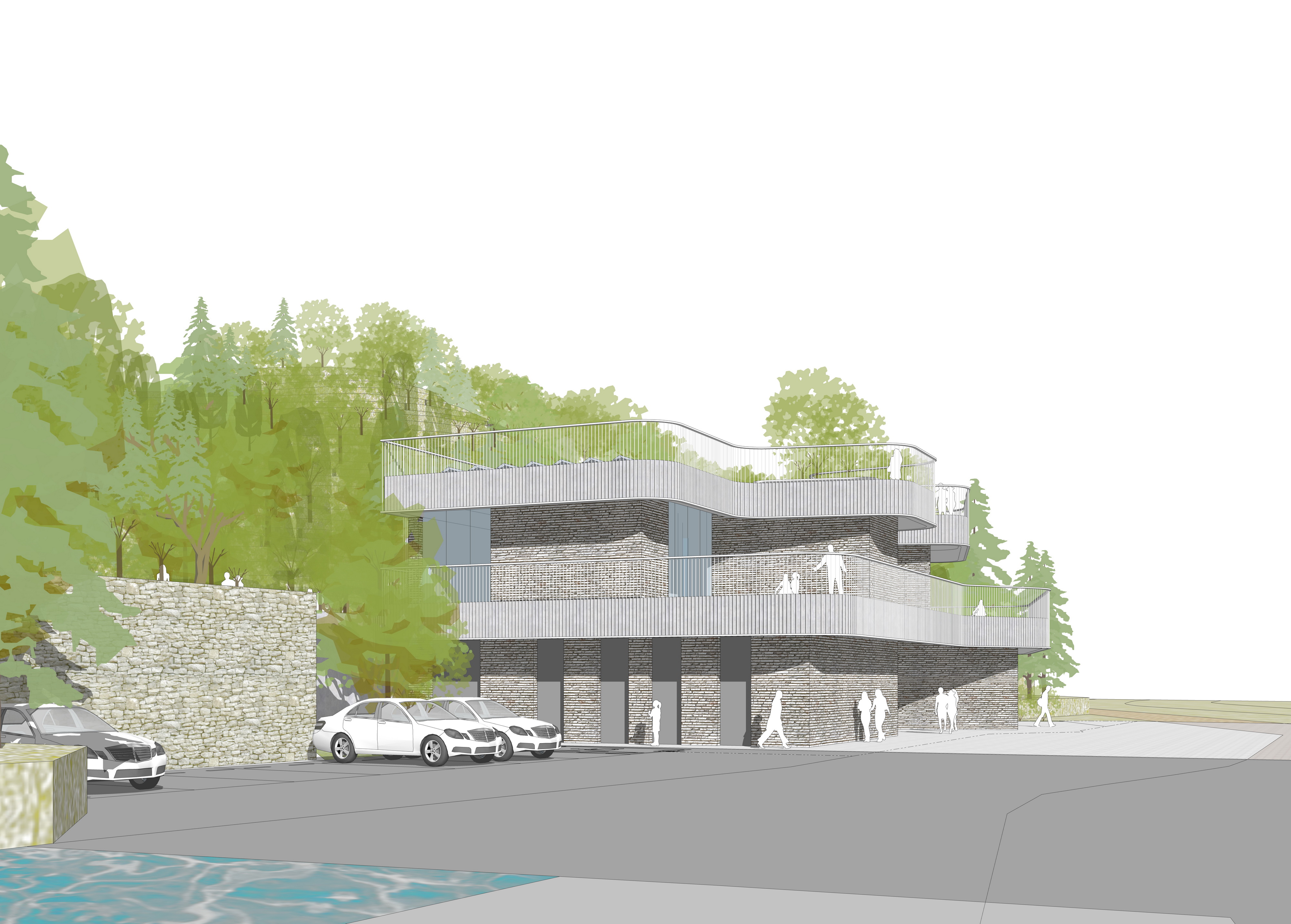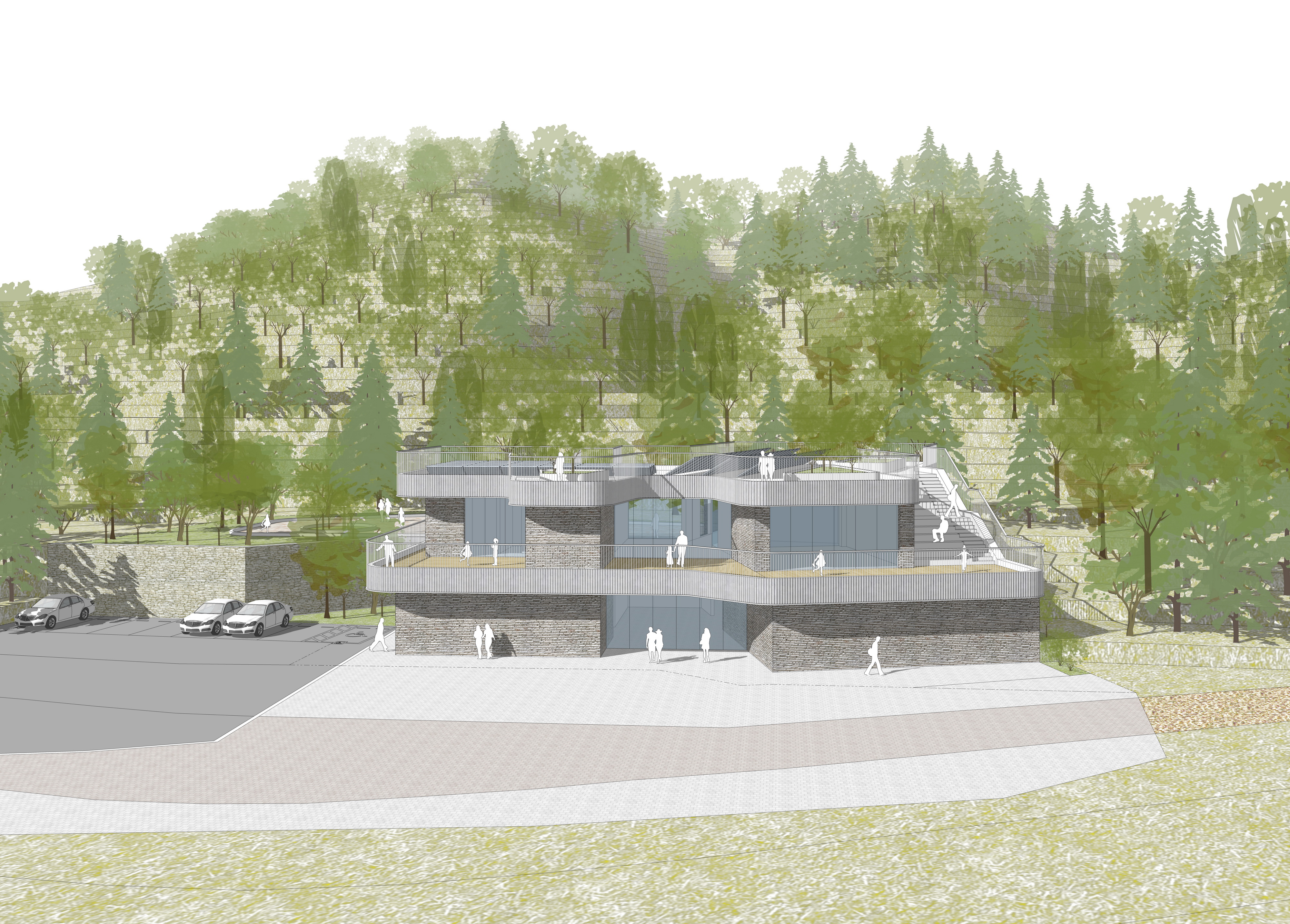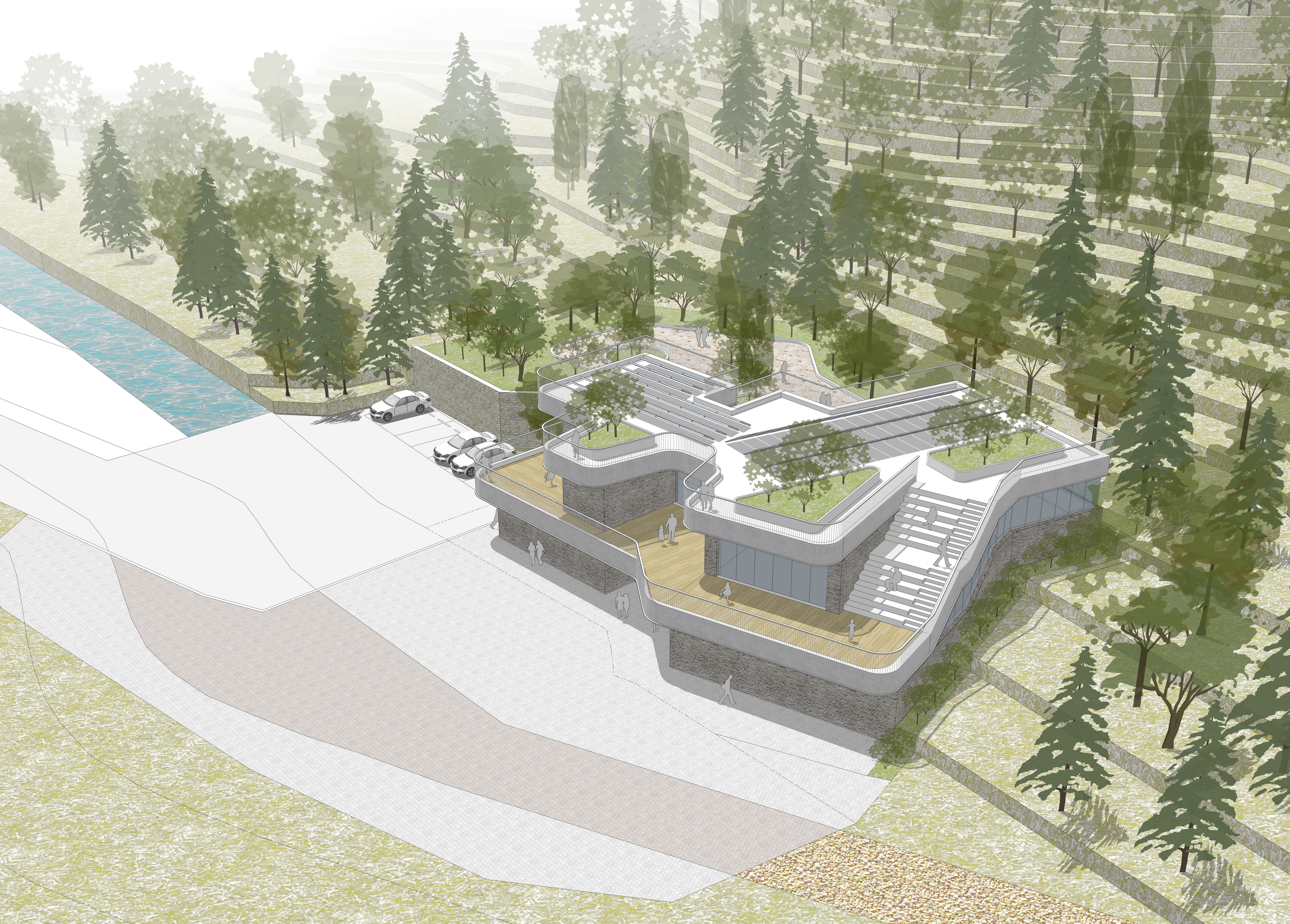북한산이란 자연을 알리고 잘 보존하기 위한 건축물이기에, 건축물 자체의 형태가 선명하게 드러나기 보다는 원래 경사지형에 순응하며 차분하고 희미하게 드러나 보이길 원했다.