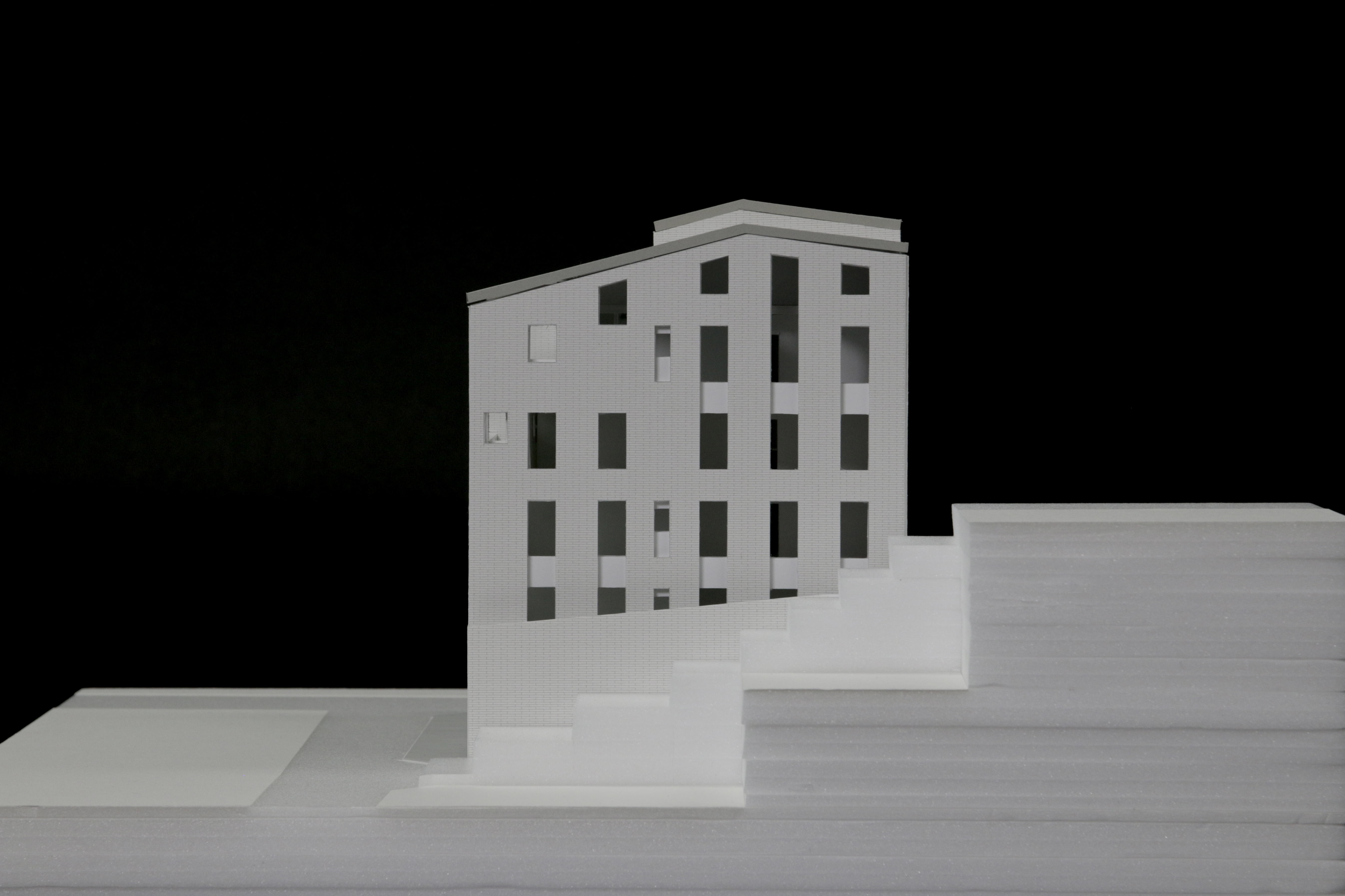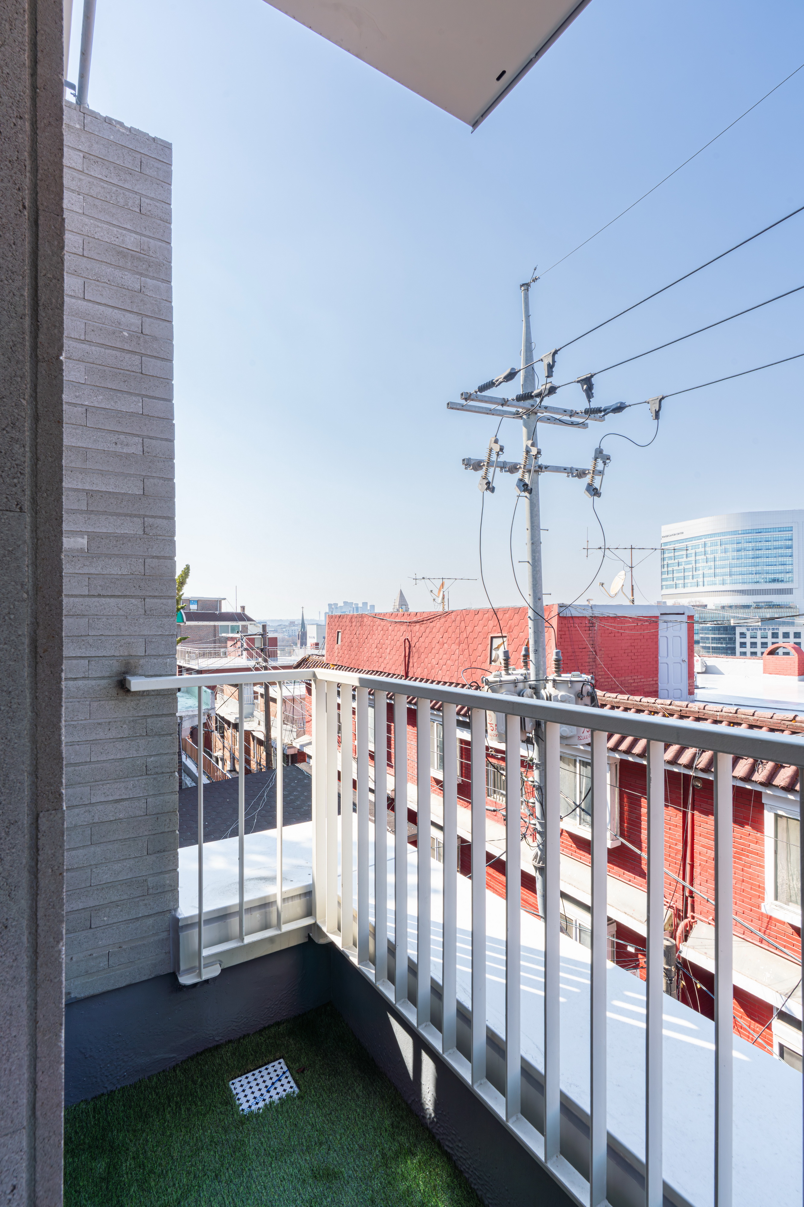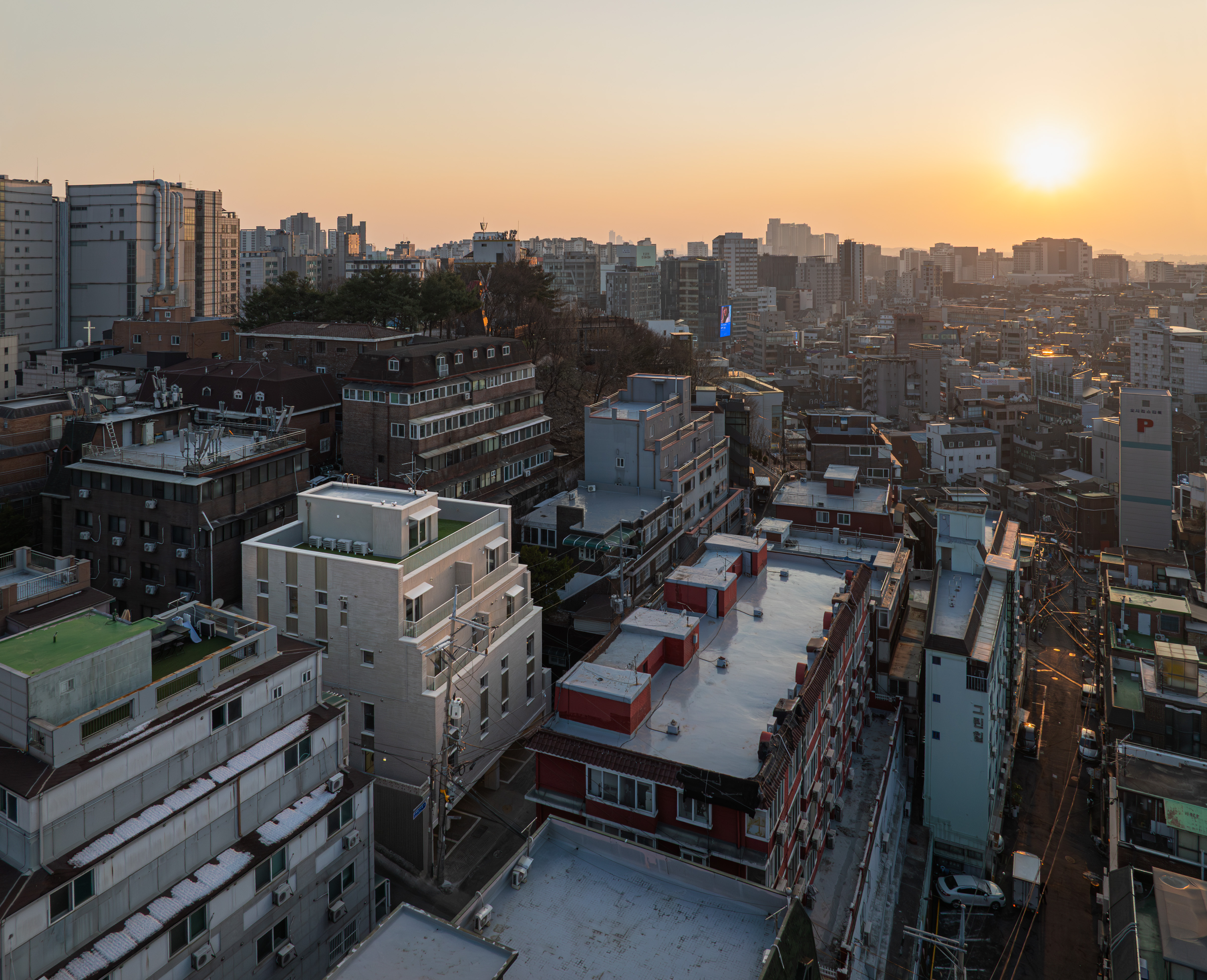 지하층 슬래브 및 일조권으로 인한 후퇴 부분을 활용하여 각층에 독립적인 외부 발코니 공간을 만들고, 옥상에도 작은 외부 테라스를 만들어 이용자를 고려했다.