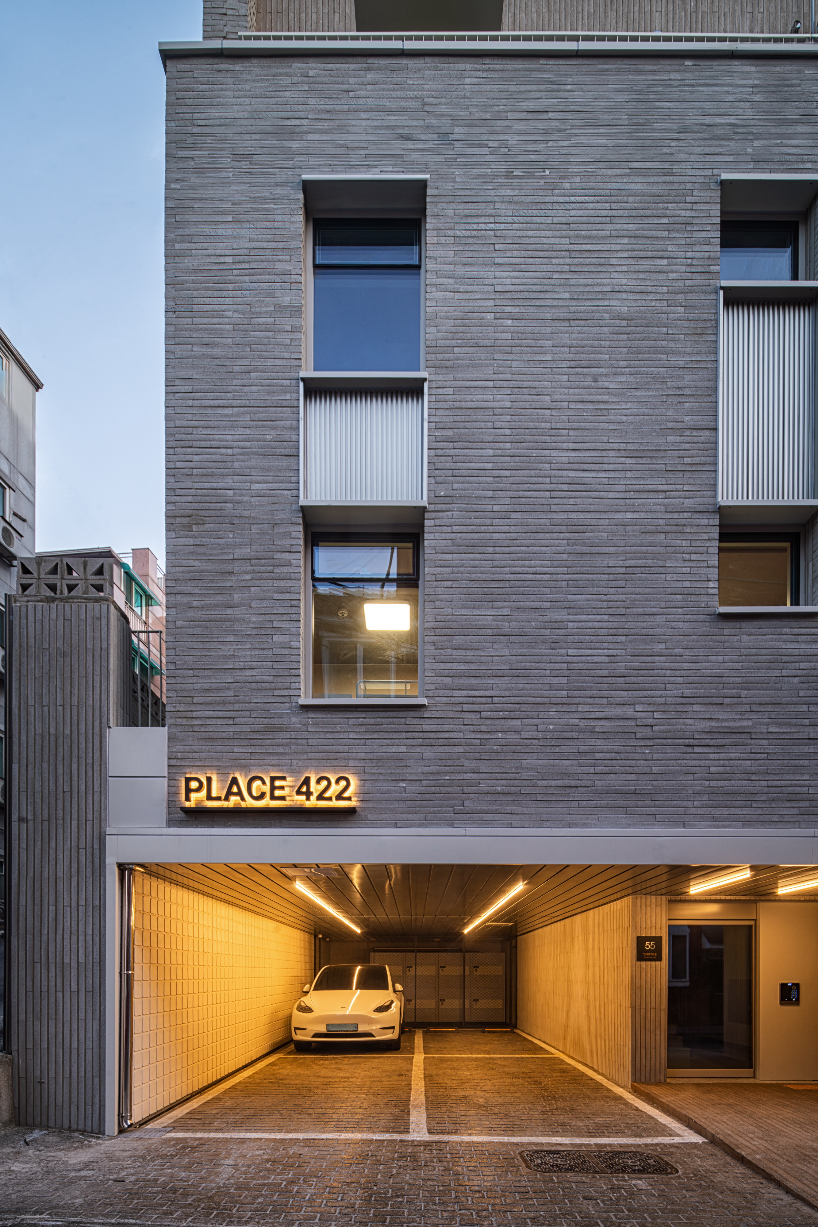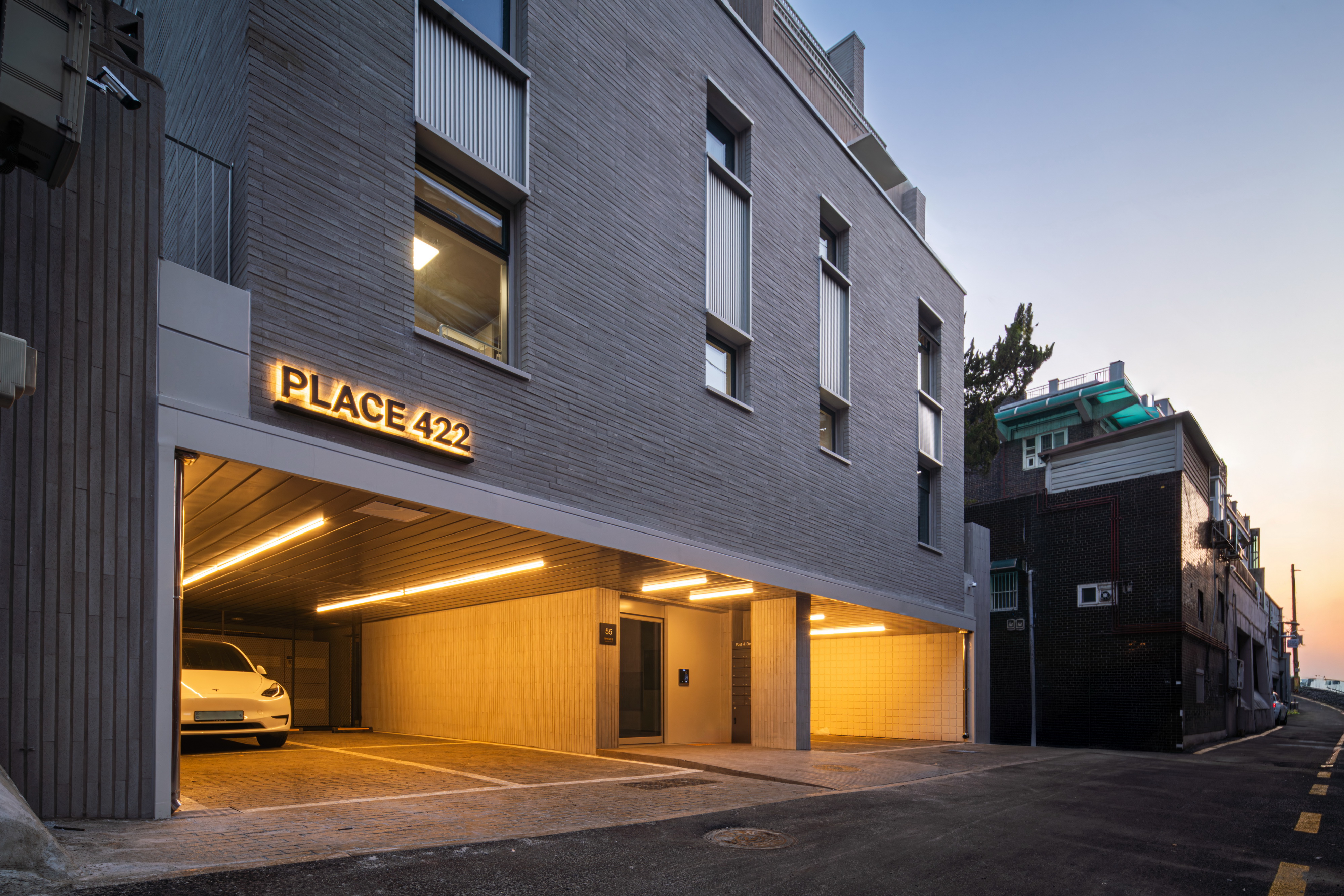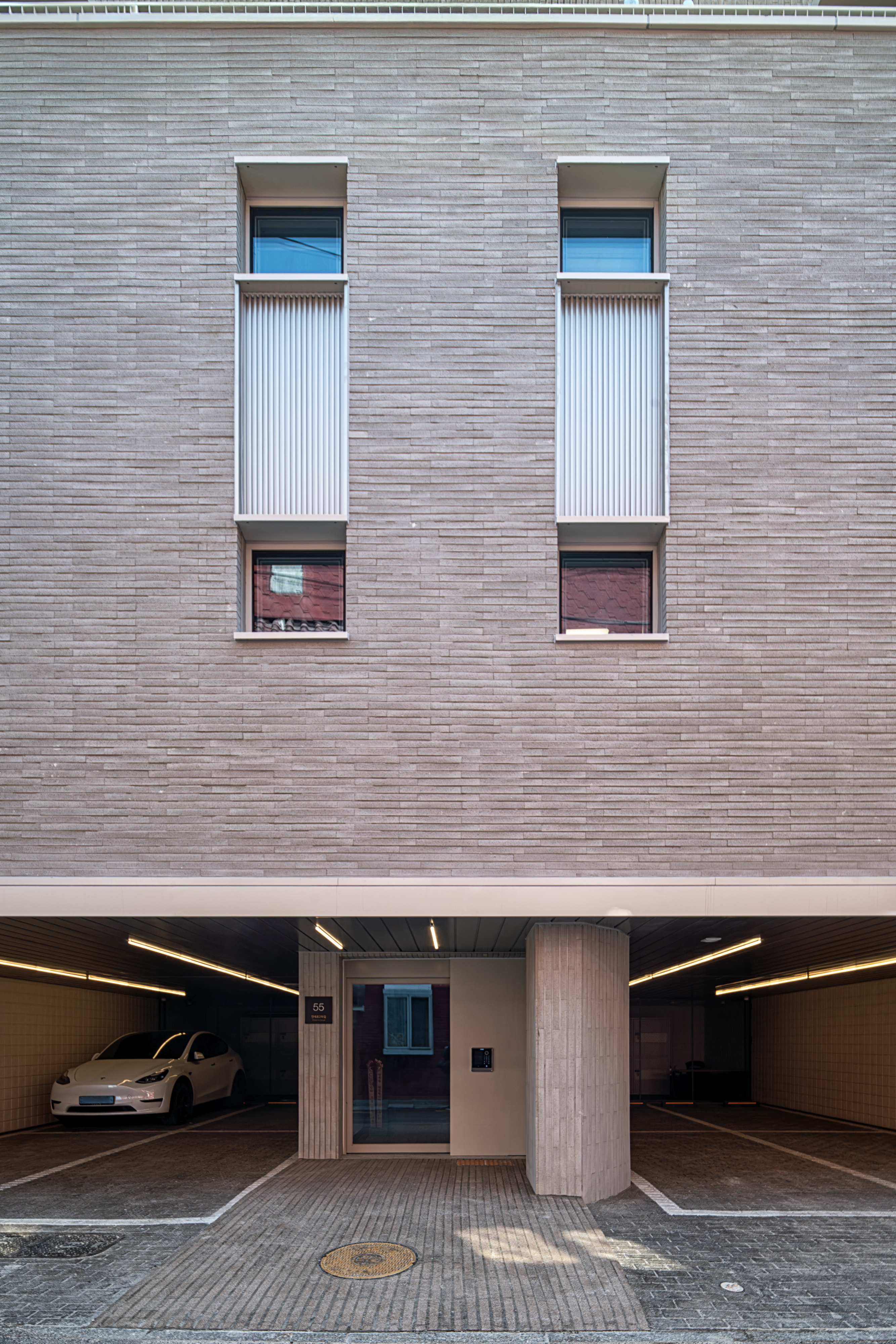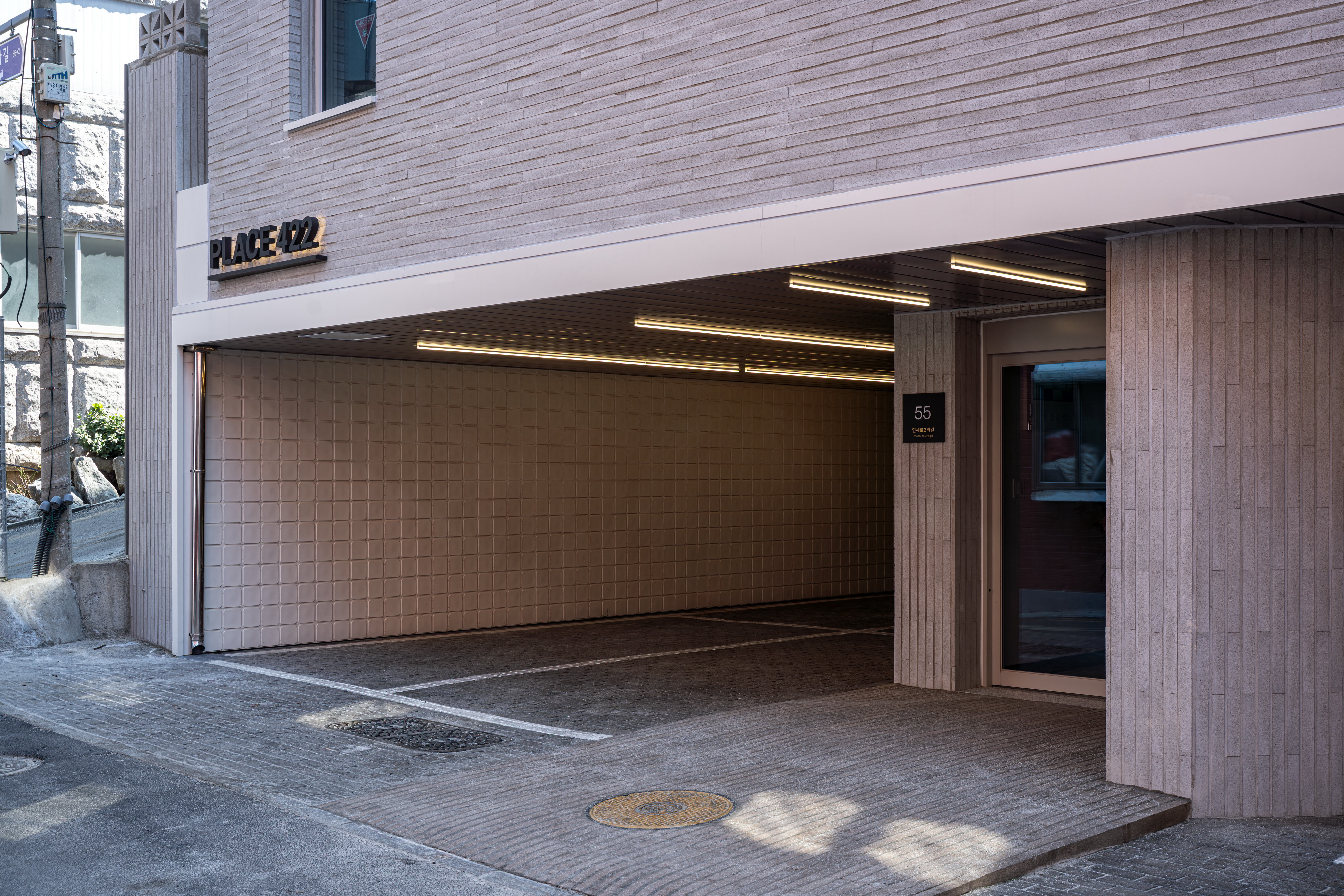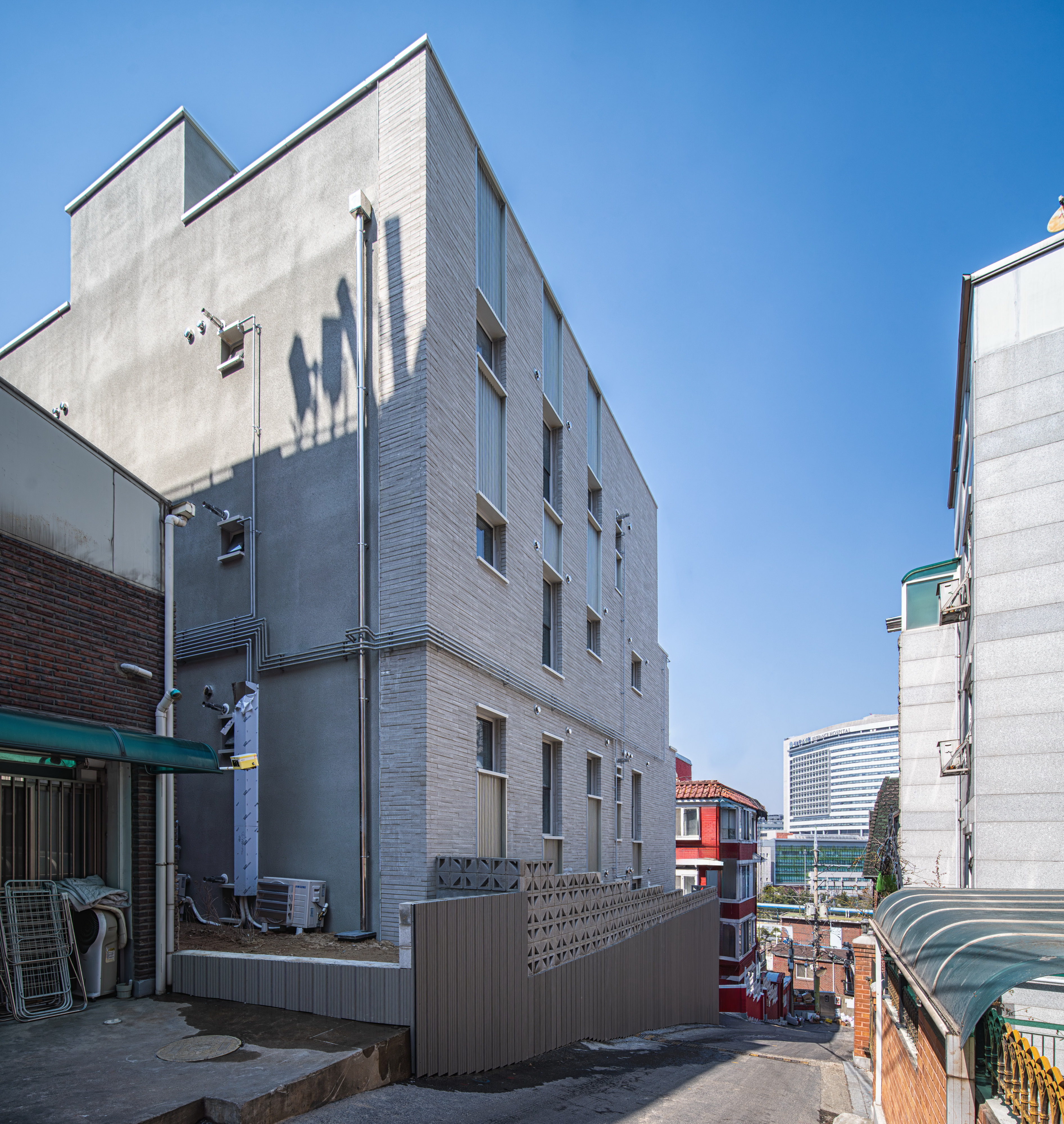 대지는 전면도로와 후면의 레벨차가 굉장히 심한데, 전면도로에 자연스럽게 형성되는 지상층 같은 지하1층을 주차장으로 활용하고 나머지 지상1~4층을 주거용으로 계획할 수 있었다.