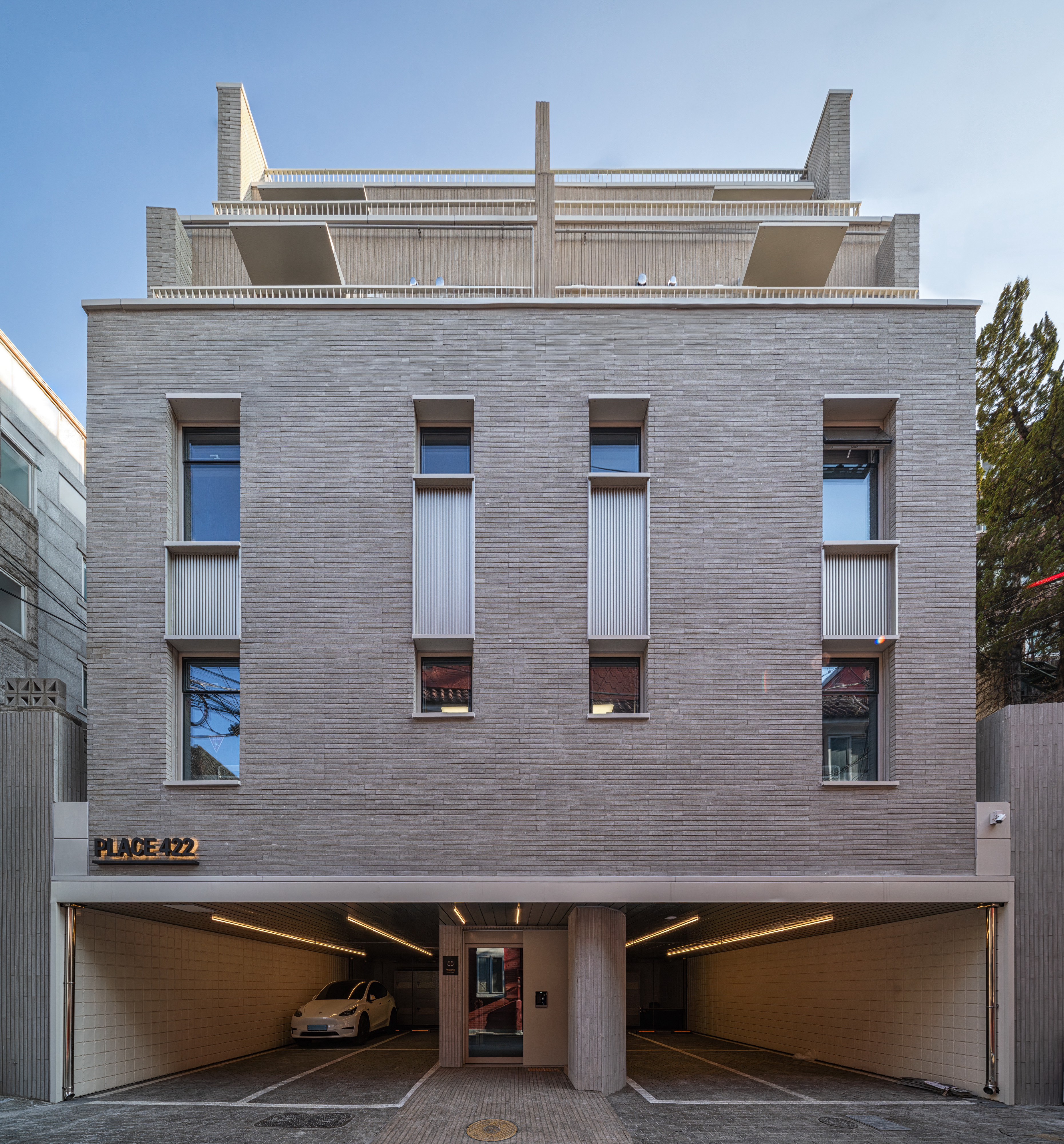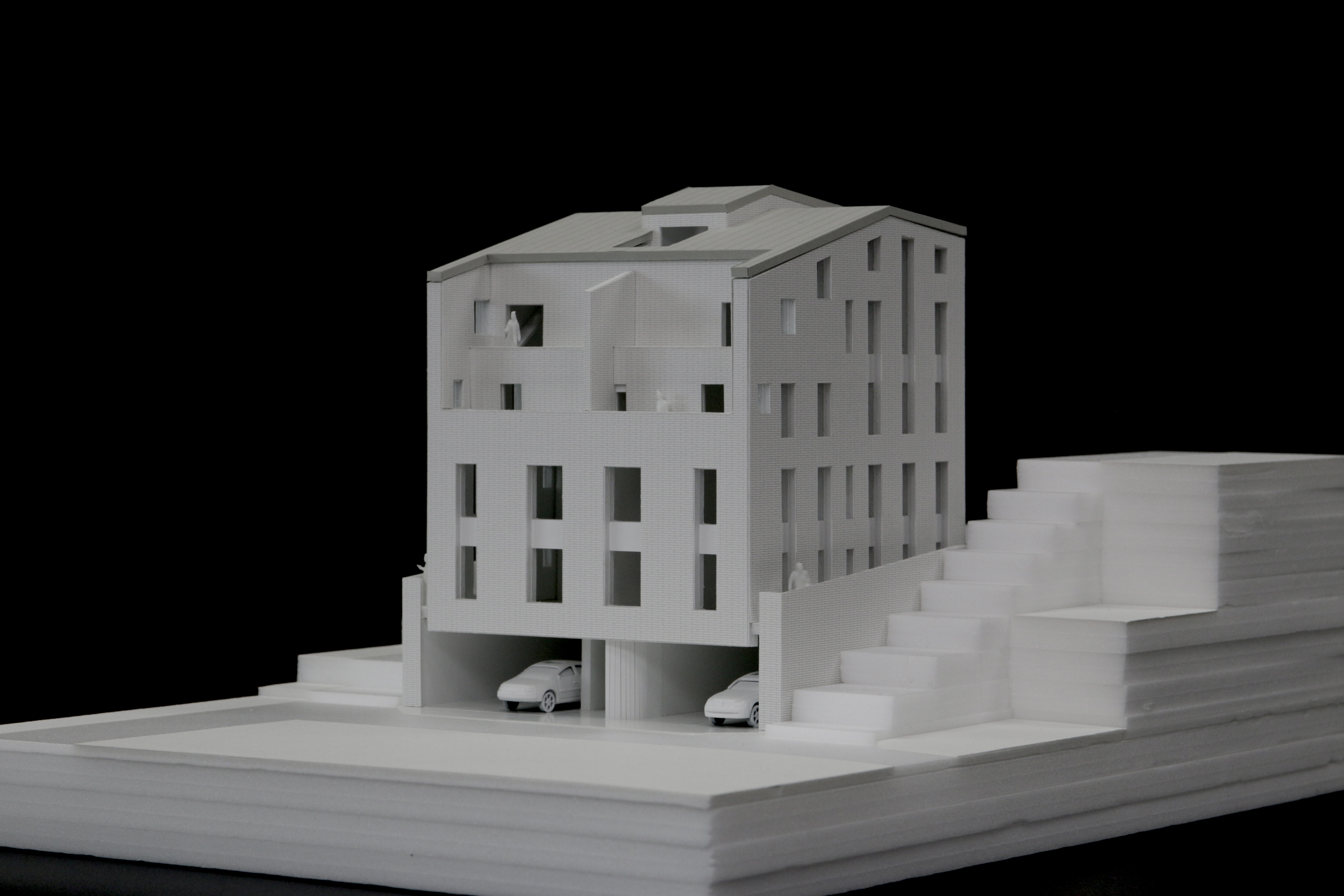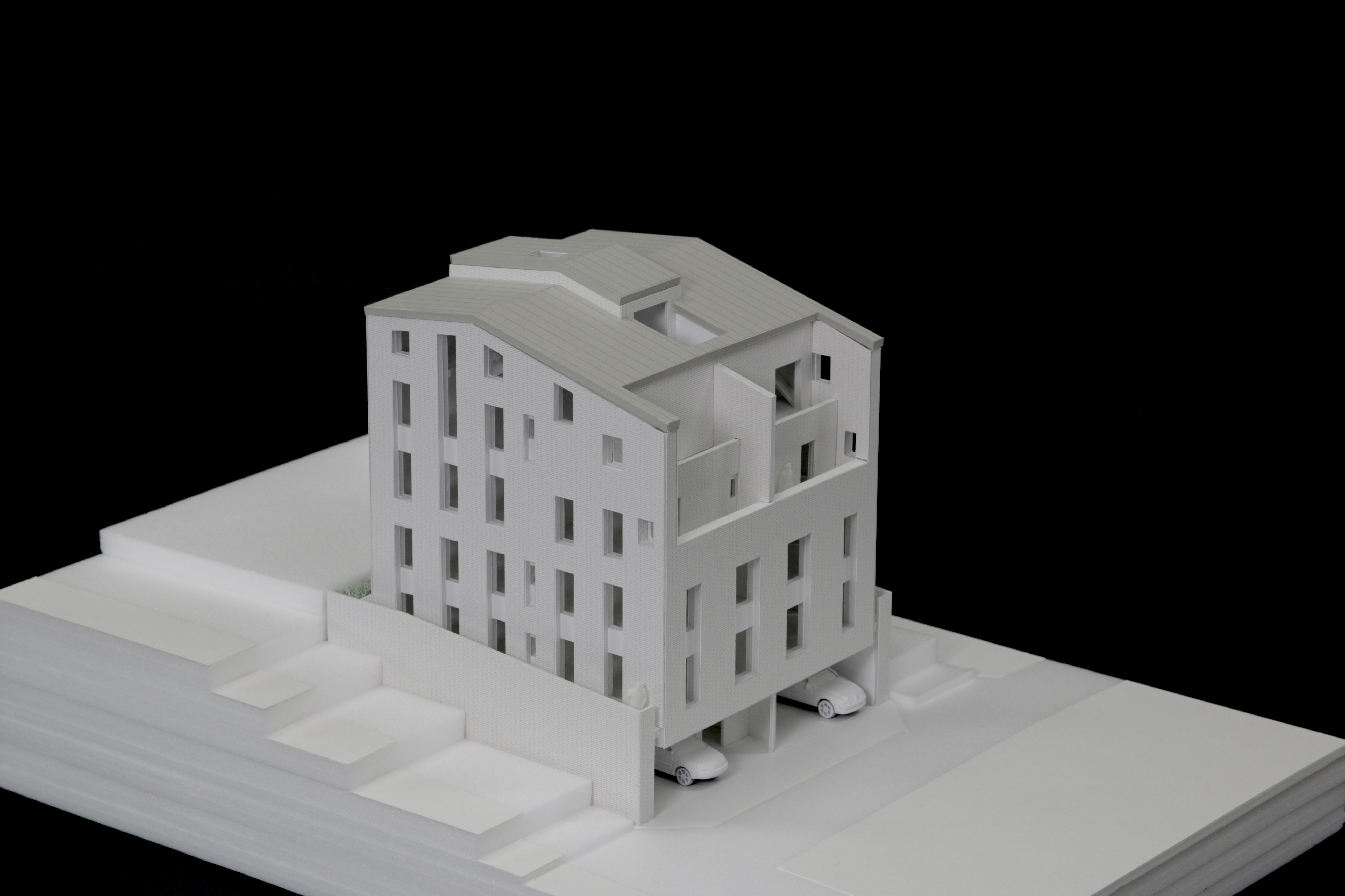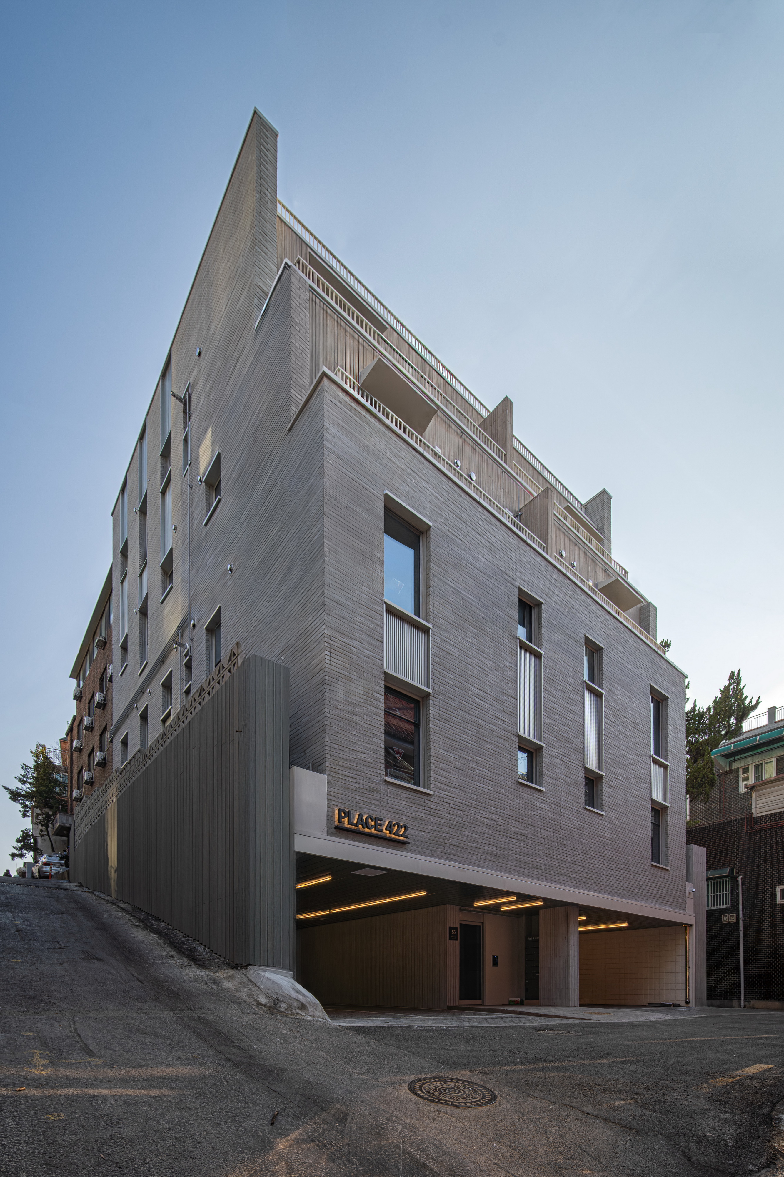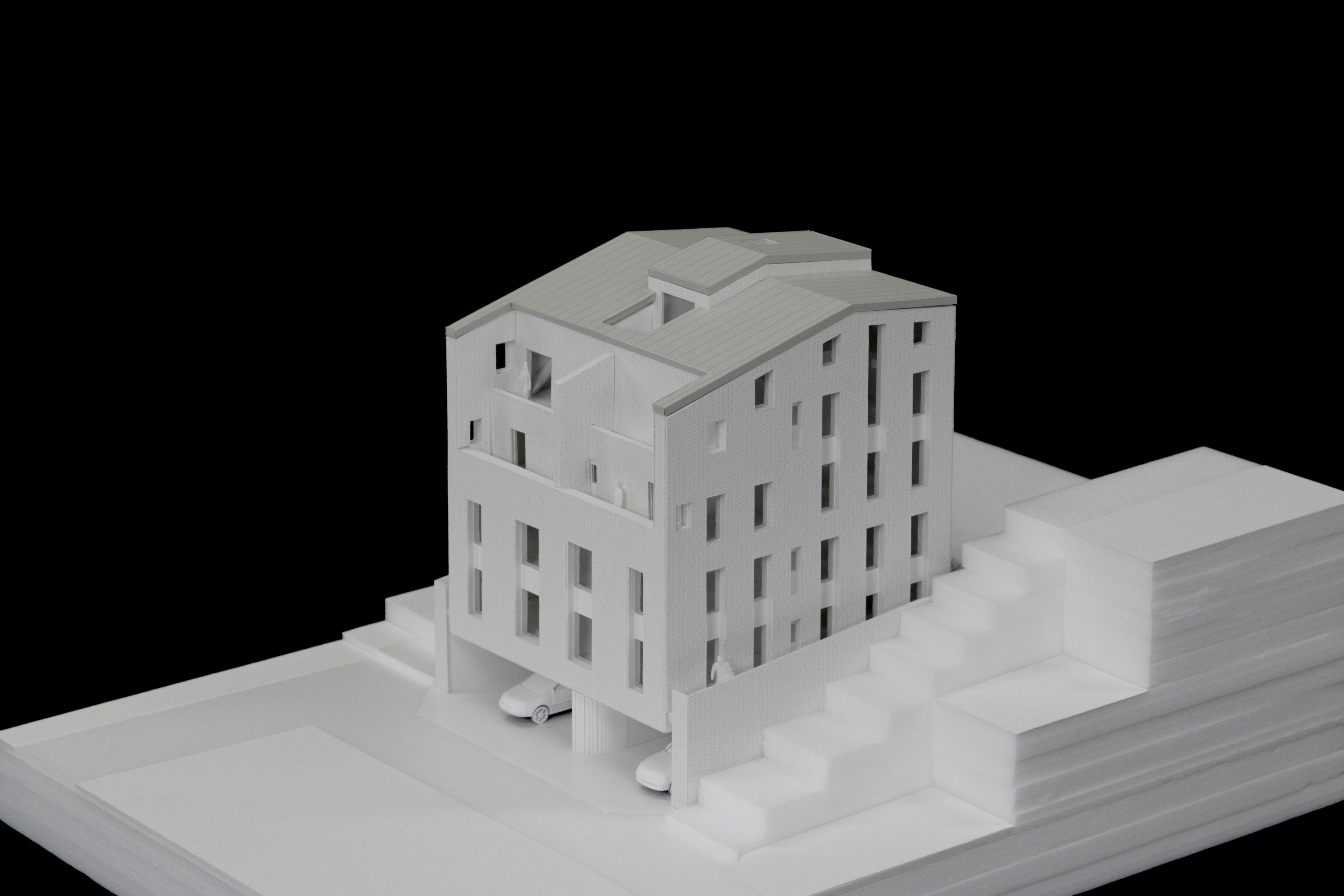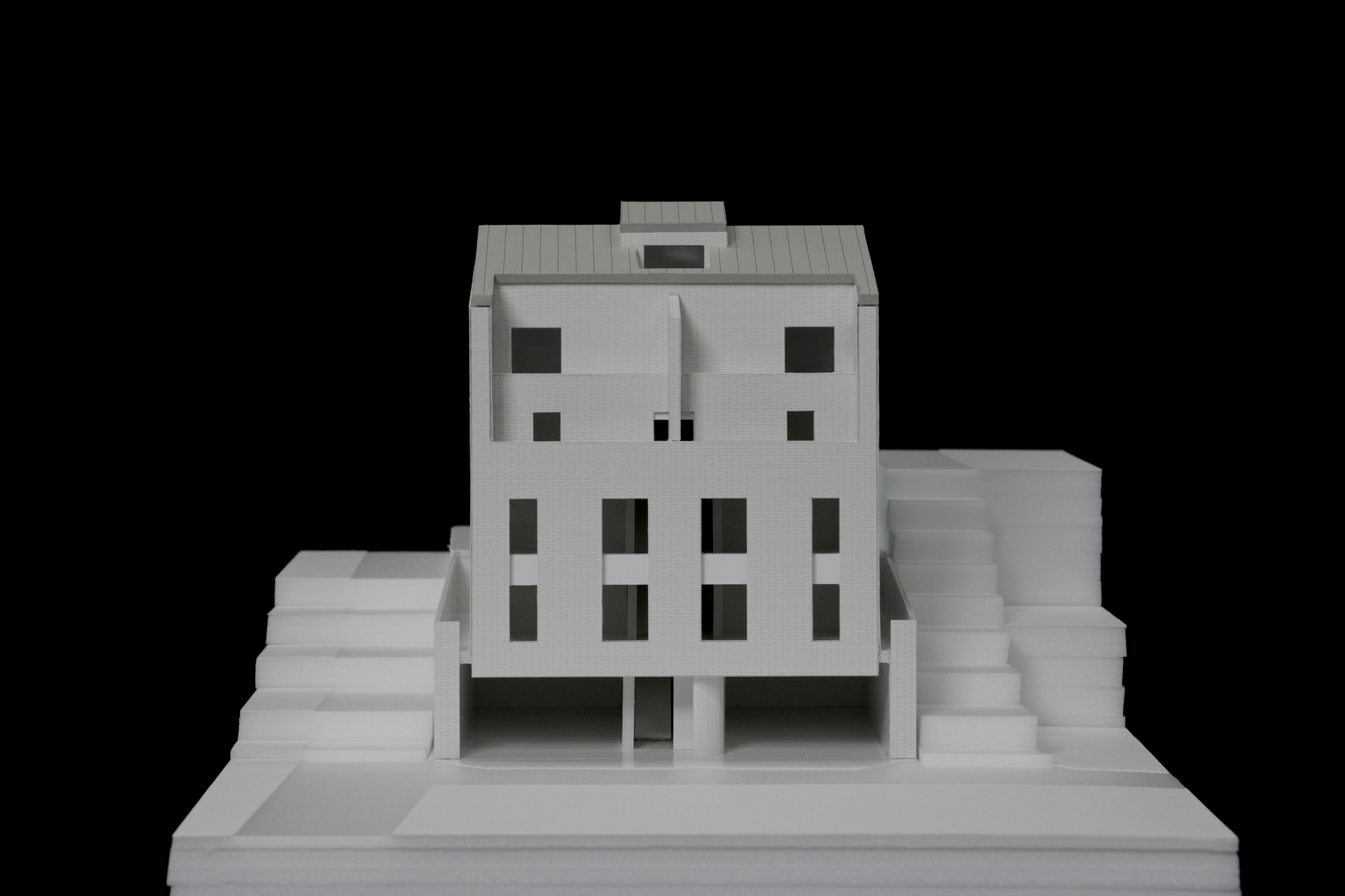 대지는 전면도로와 후면의 레벨차가 굉장히 심한데, 전면도로에 자연스럽게 형성되는 지상층 같은 지하1층을 주차장으로 활용하고 나머지 지상1~4층을 주거용으로 계획할 수 있었다.