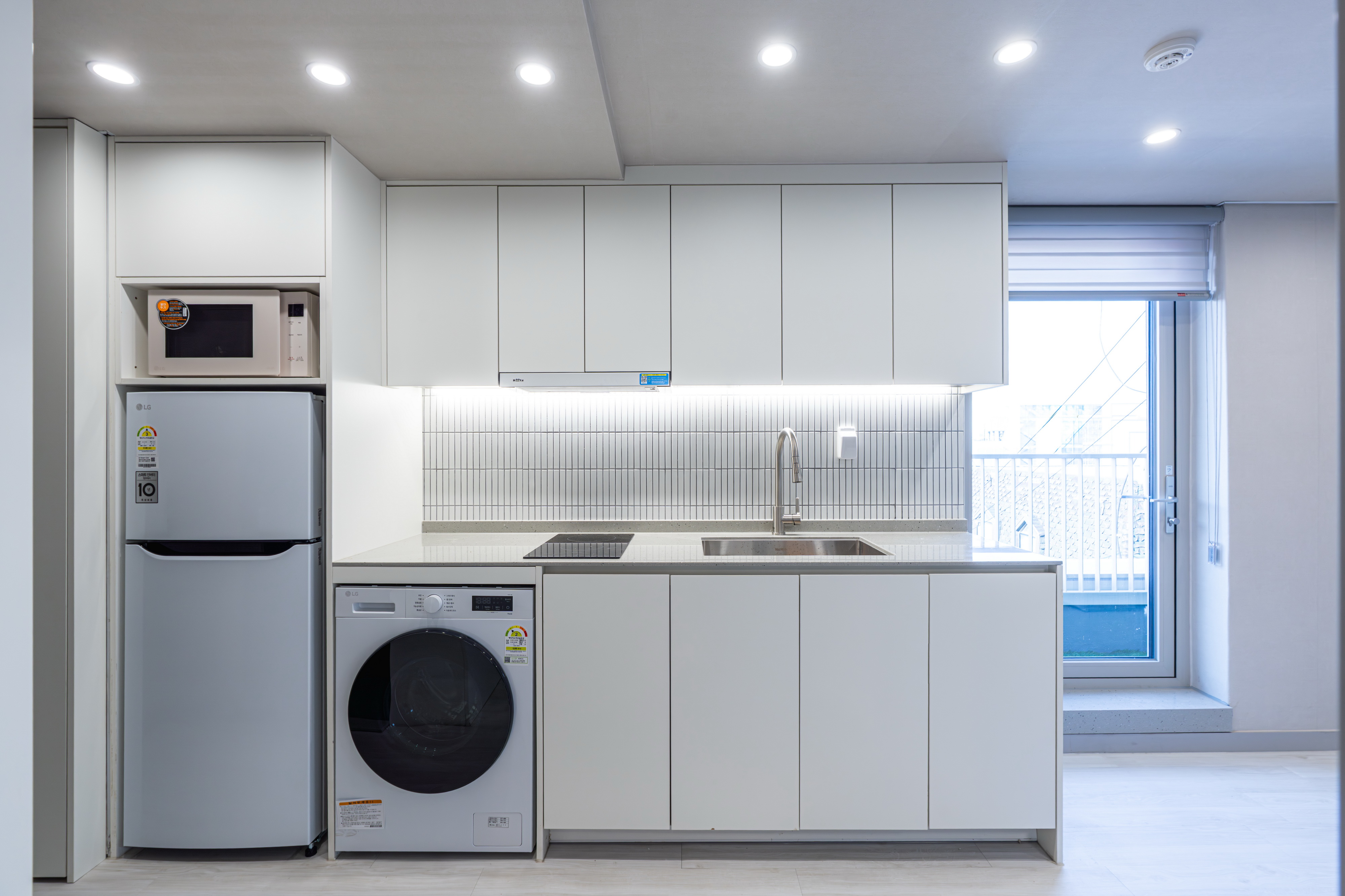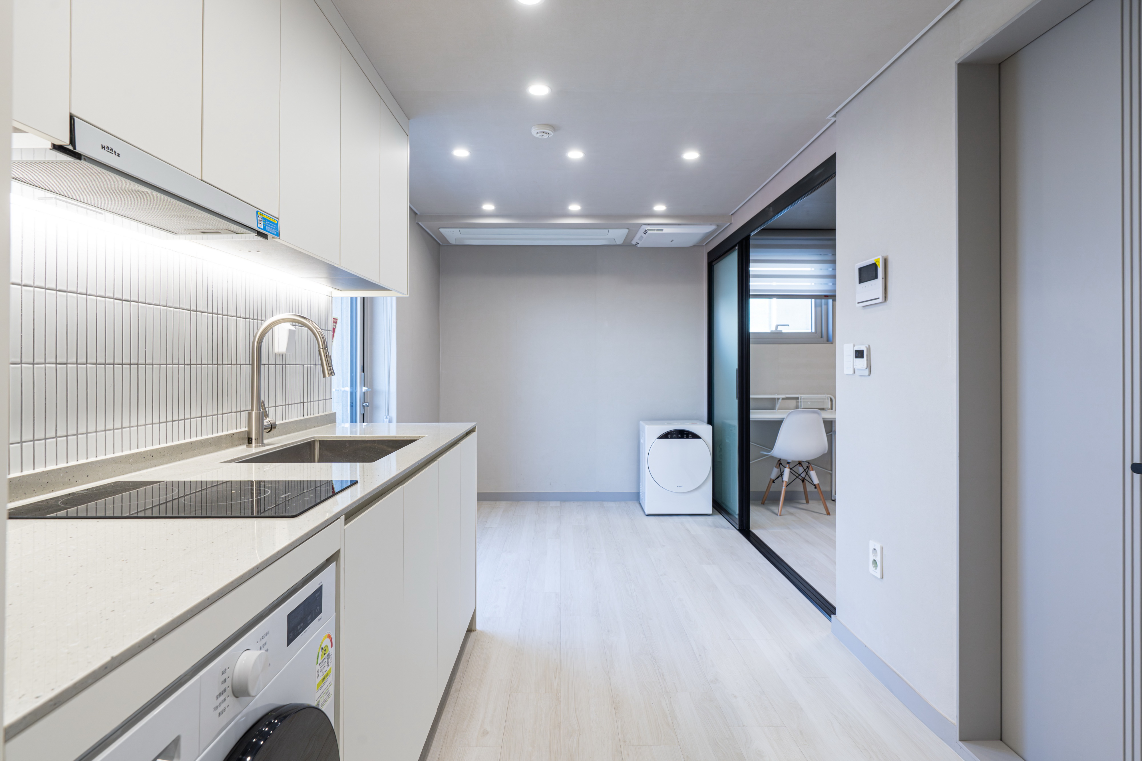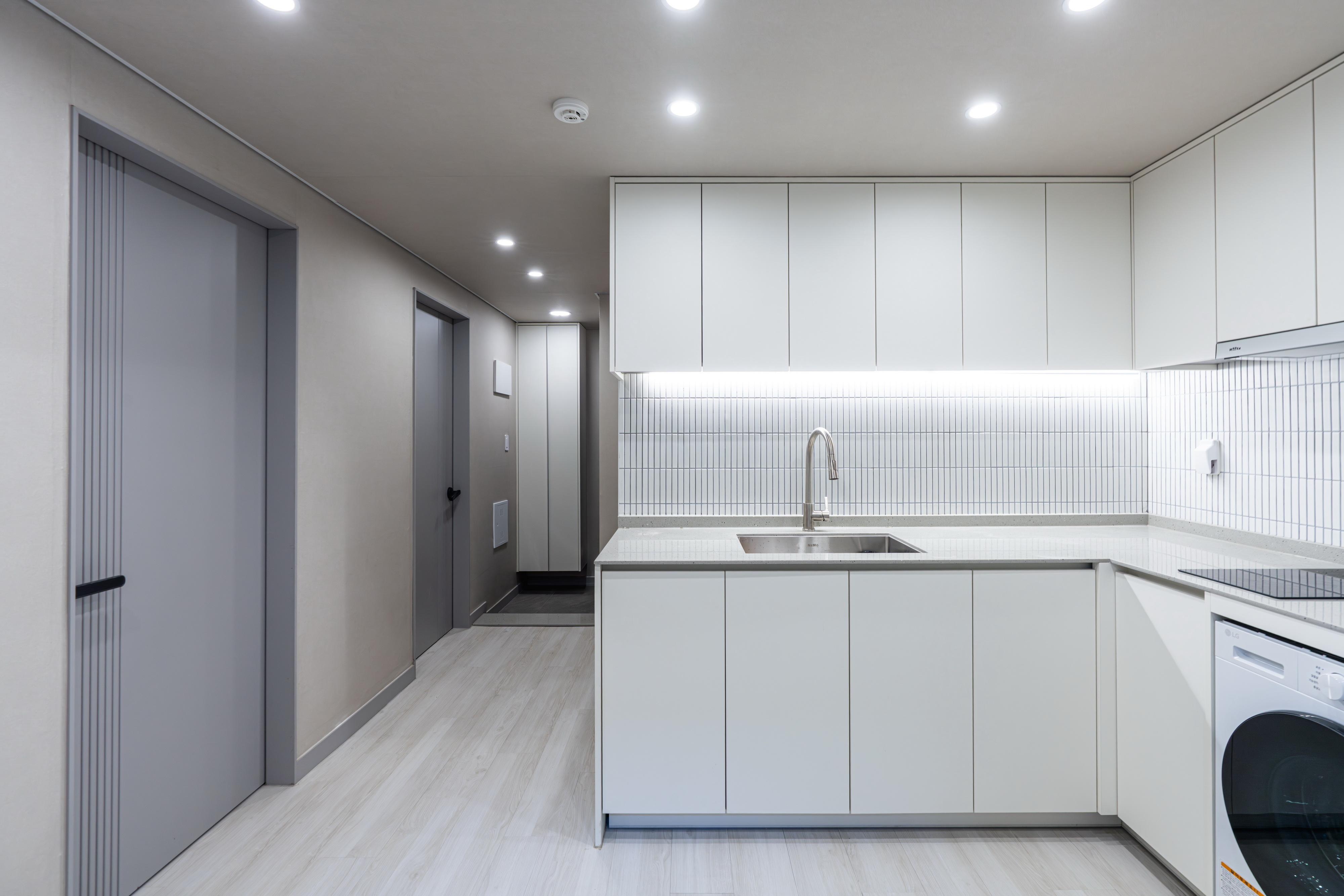 3면으로 둘러쌓인 도로변으로 모든 실들을 배치하여 채광, 조망, 환기 등 주거공간의 필수요소들을 빠짐없이 담았다.