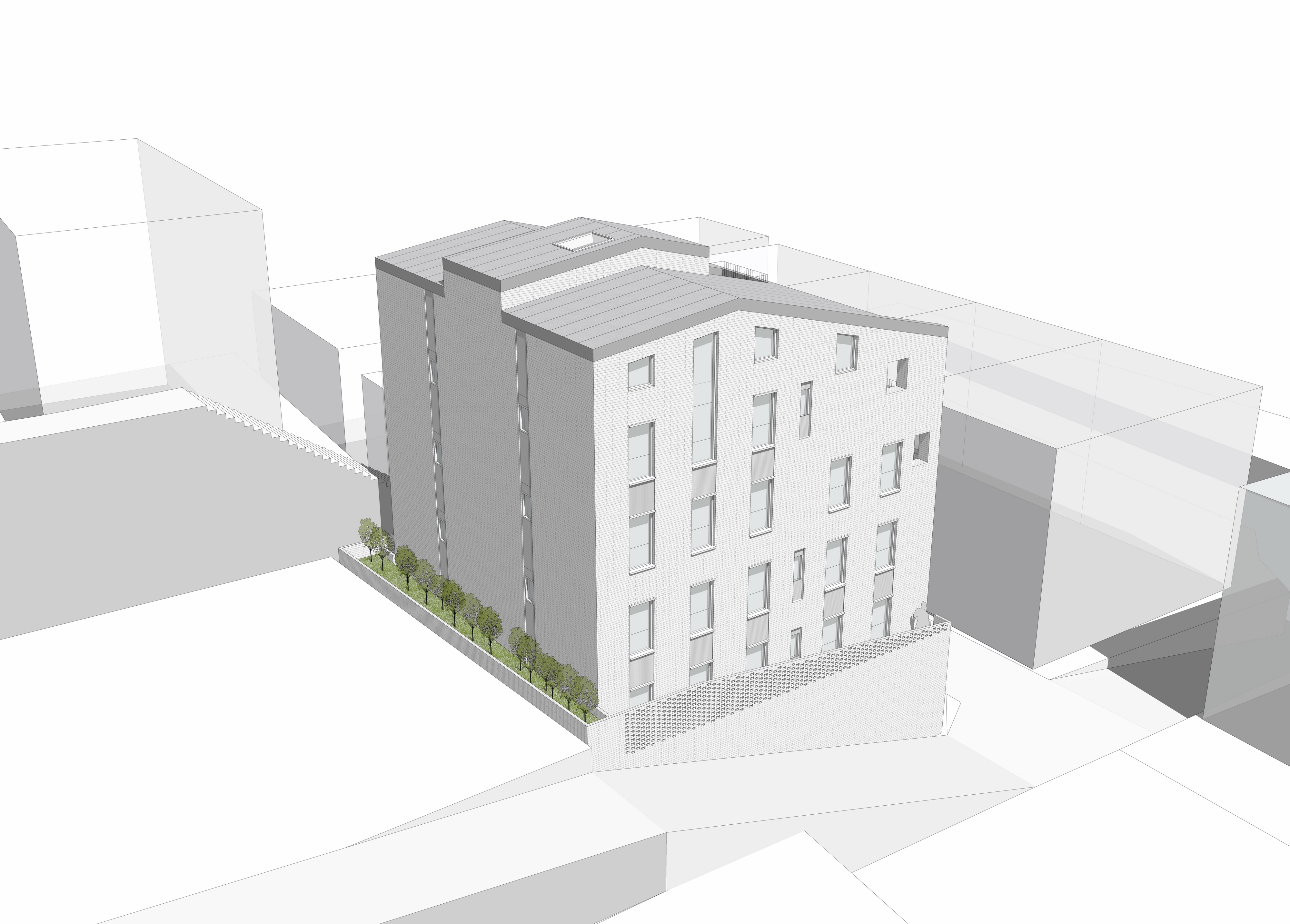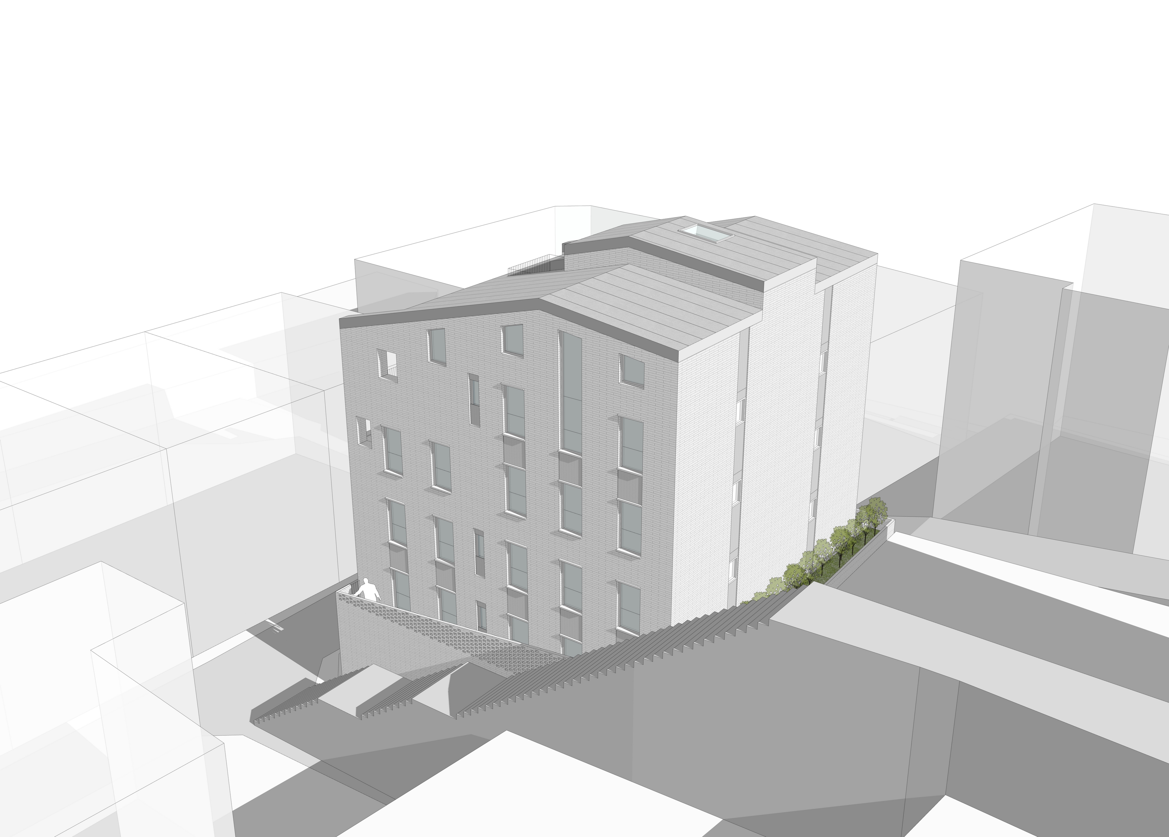 그 결과 2룸형 유닛 2가지 타입과, 1룸형 유닛 3가지 타입, 총 5가지 유형의 주거공간을 계획했고, 2룸형 10개실, 1룸형 6개실, 총 16세대의 공동주택을 제안했다.