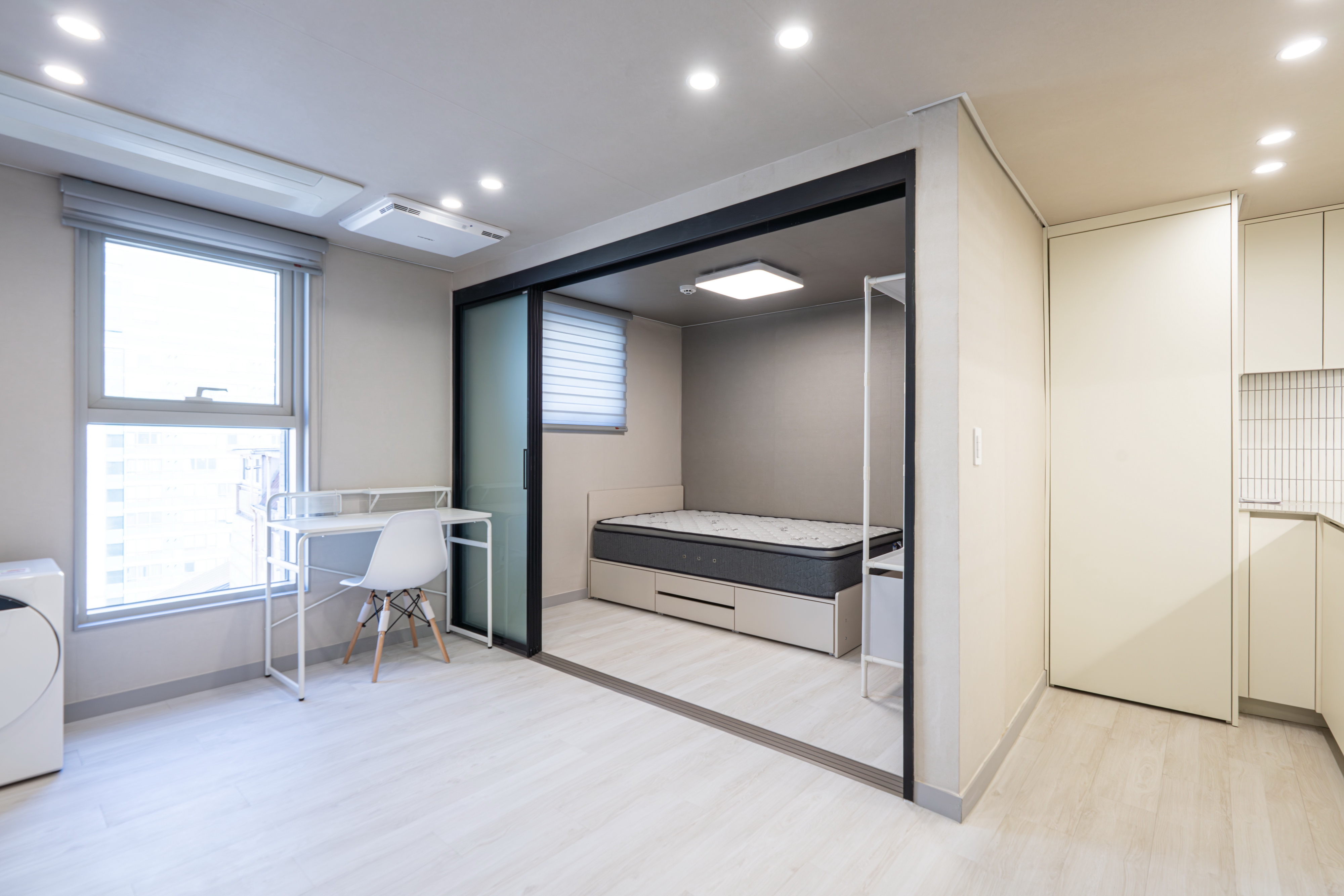 우리는 학생들의 특성을 고려하여, 2인이 함께 거주하더라도 거실/주방을 공유하며 각자의 독립된 방을 쓸 수 있도록 2룸형 유닛을 중심으로 계획을 진행했다.