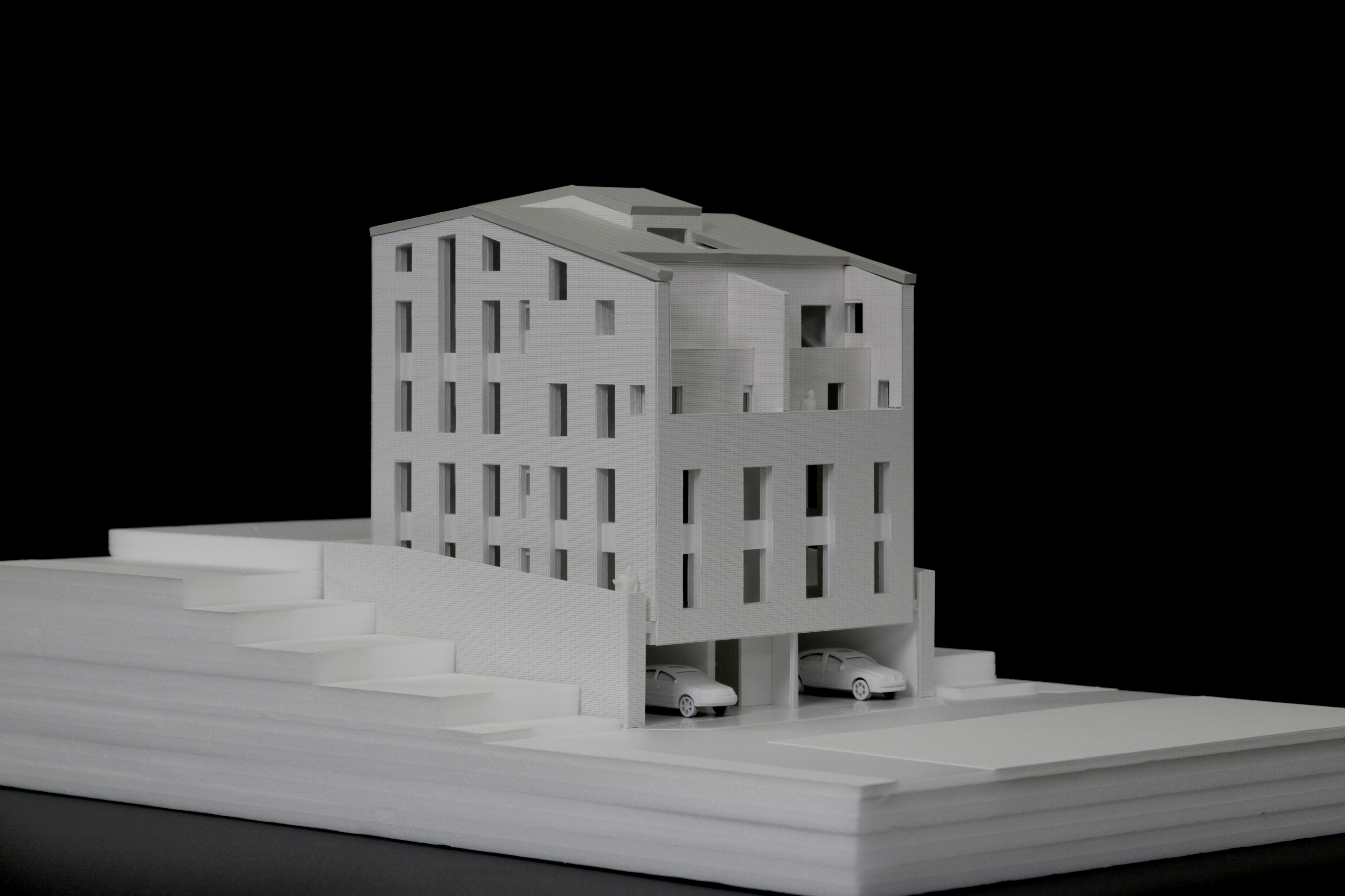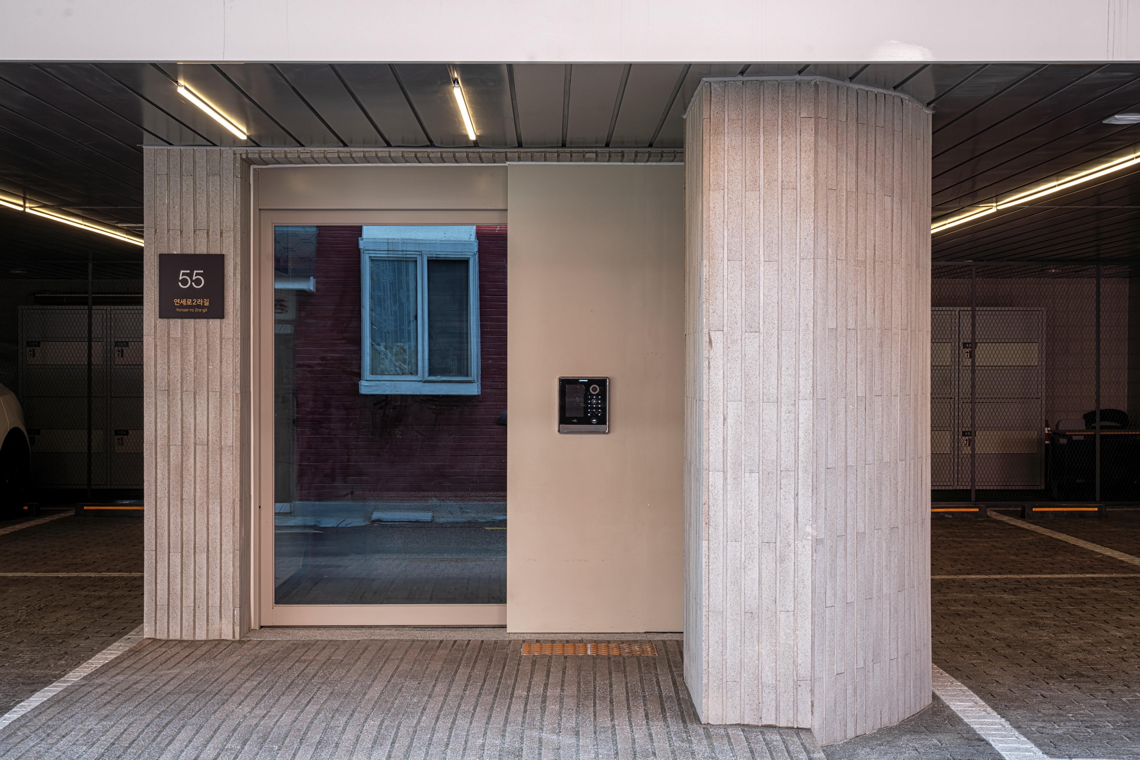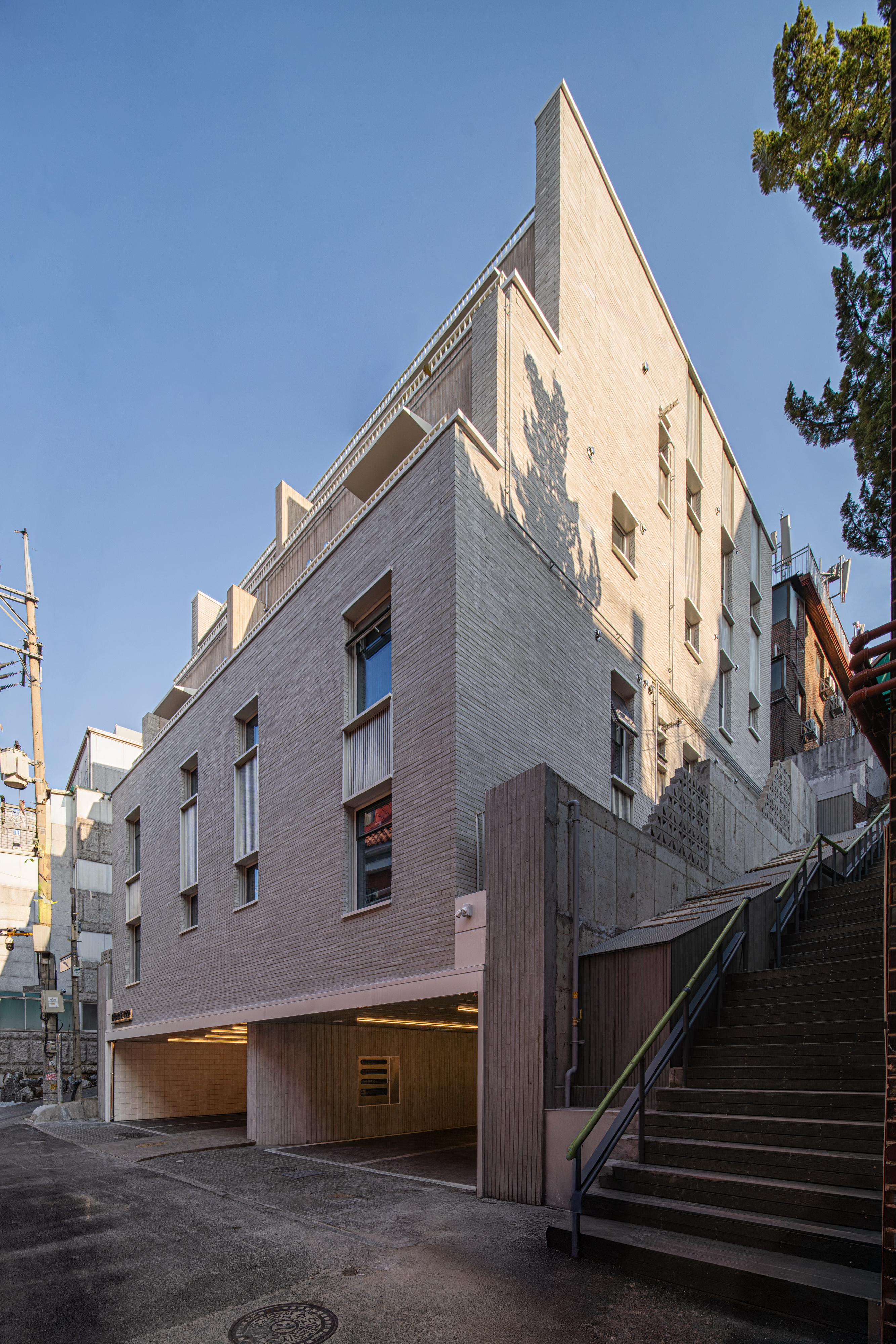 대지는 전면도로와 후면의 레벨차가 굉장히 심한데, 전면도로에 자연스럽게 형성되는 지상층 같은 지하1층을 주차장으로 활용하고 나머지 지상1~4층을 주거용으로 계획할 수 있었다.