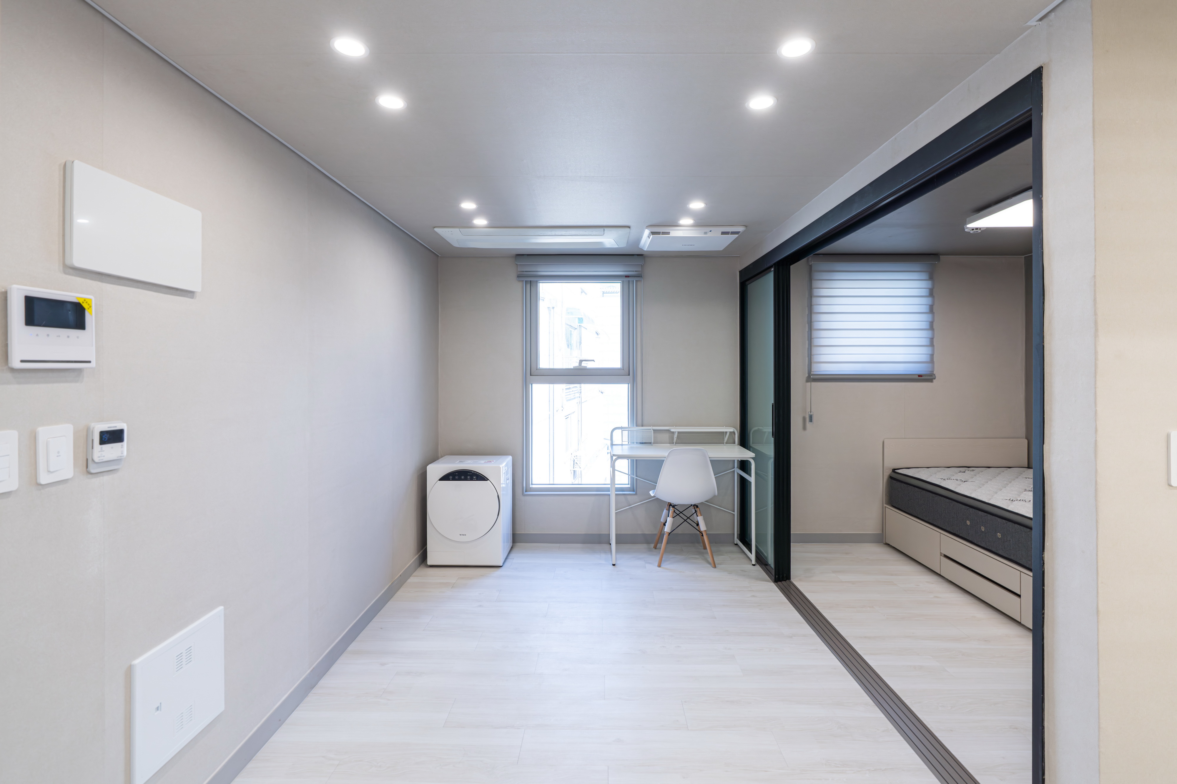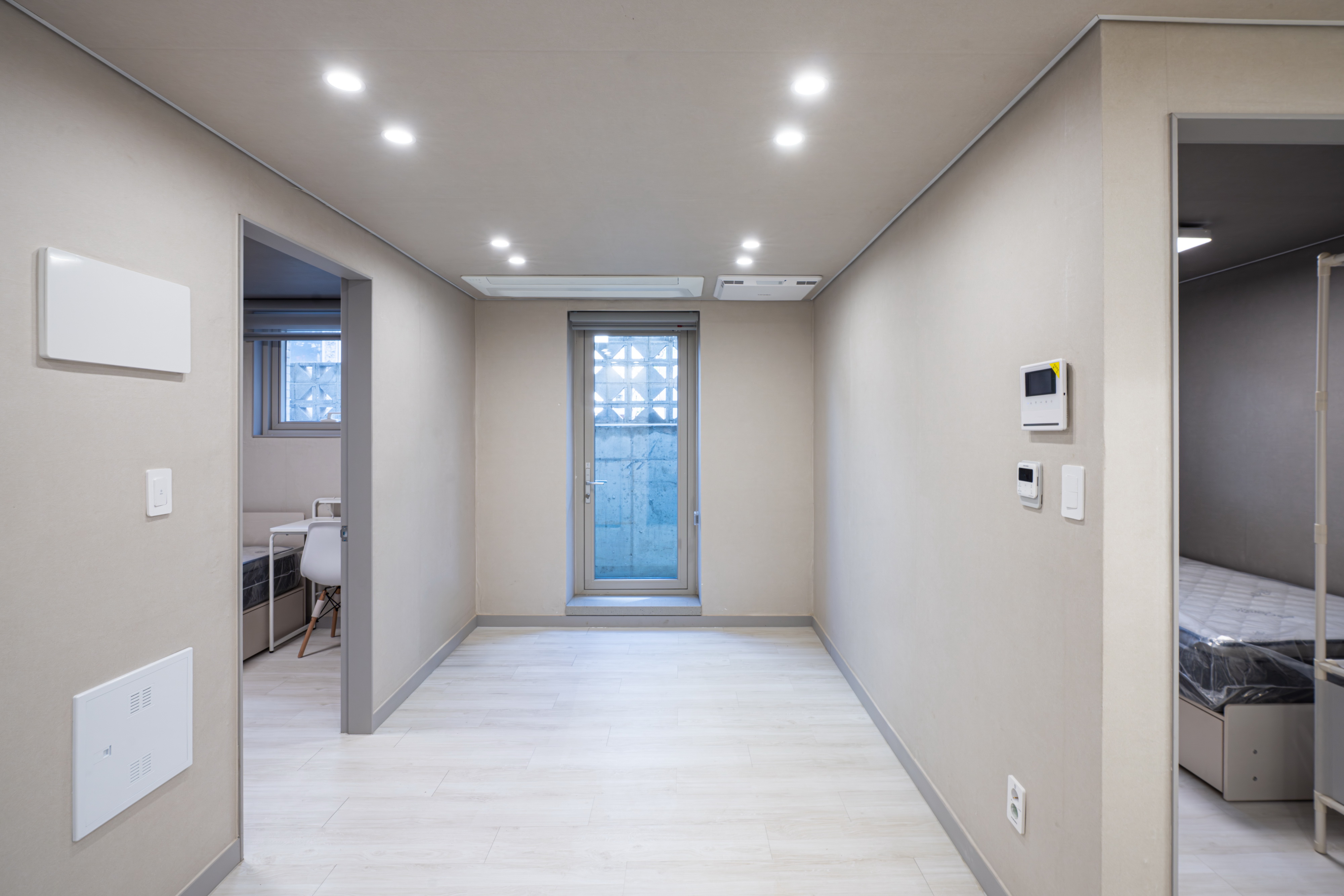 그 결과 2룸형 유닛 2가지 타입과, 1룸형 유닛 3가지 타입, 총 5가지 유형의 주거공간을 계획했고, 2룸형 10개실, 1룸형 6개실, 총 16세대의 공동주택을 제안했다.