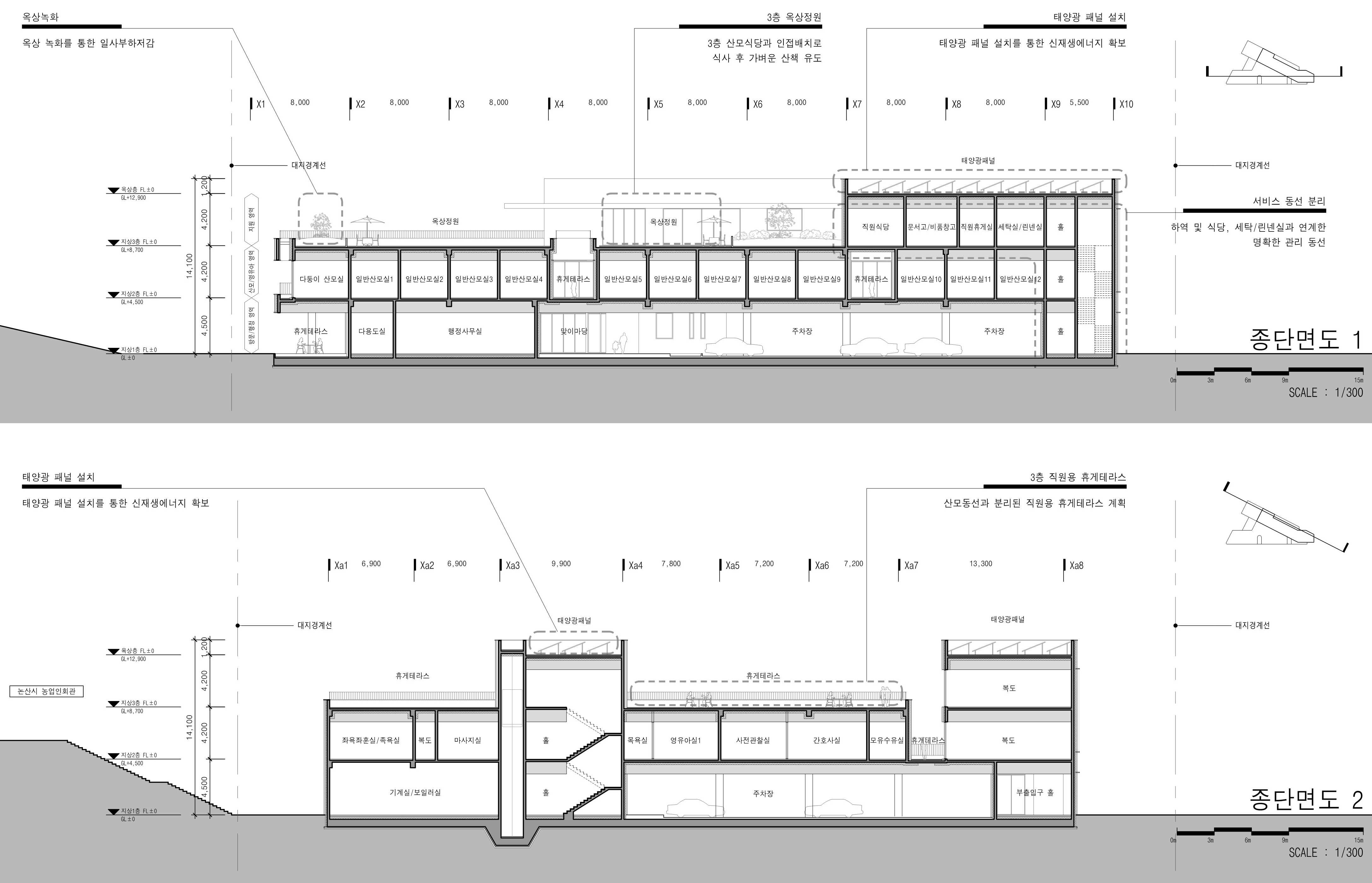 외부마감: 테라코타패널, 외단열미장마감, 합성목재패널, 로이삼중유리
