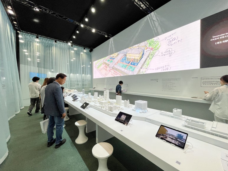 새로운 건축 자재 샘플들을 눈으로 확인해 보고, 대형 설계사들의 관심 분야와 전시 공간 구성도 엿볼 수 있었습니다.