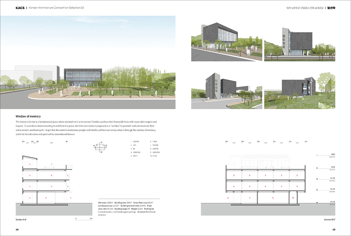 2021.06 KACS 한국 설계공모 작품집 03 / 당진보훈회관 게재 'KACS 한국 설계공모 작품집 03'에 당진보훈회관이 게재되었습니다. 공유하기 게시글 관리 스튜디오22 건축사사무소
